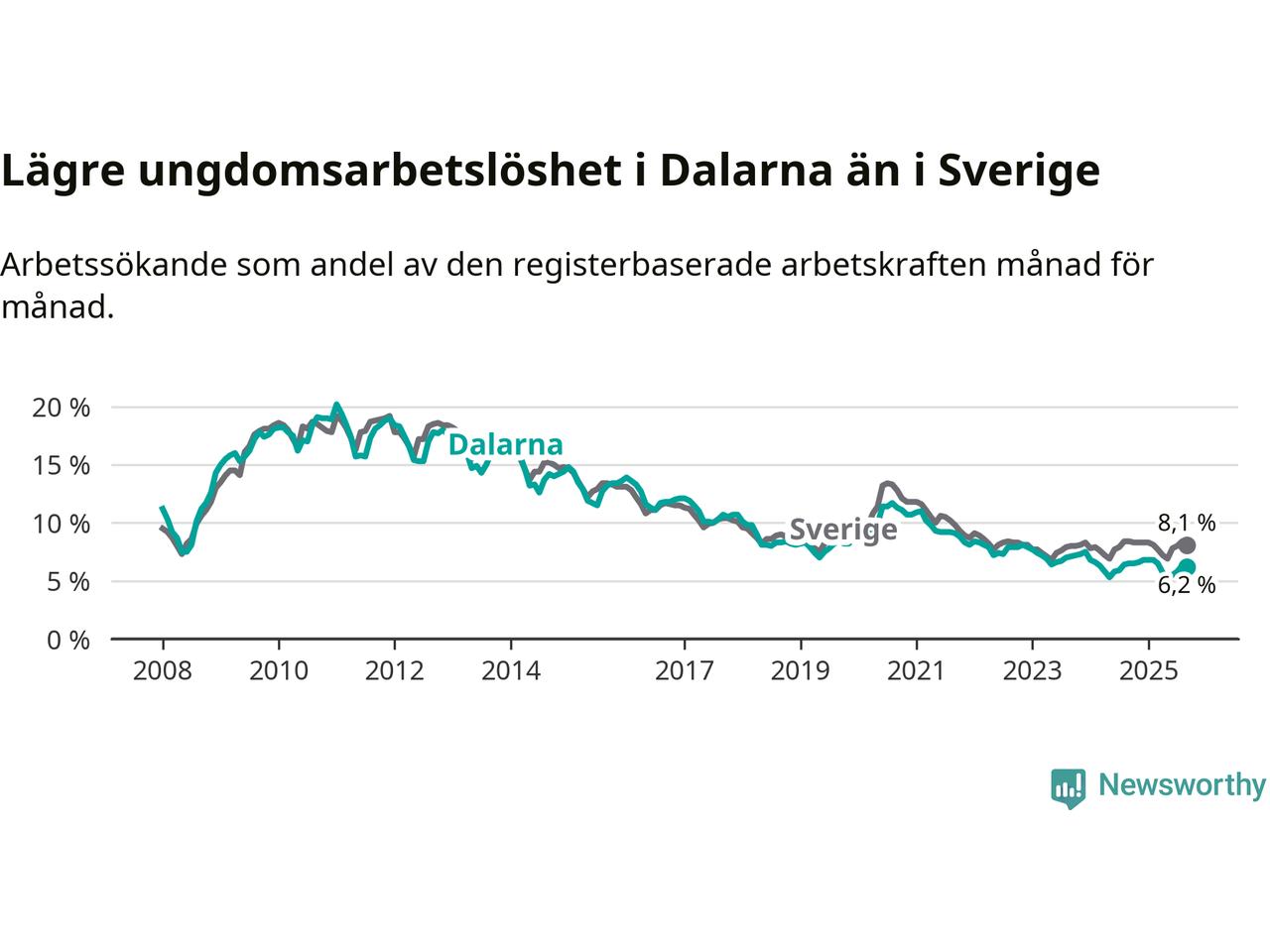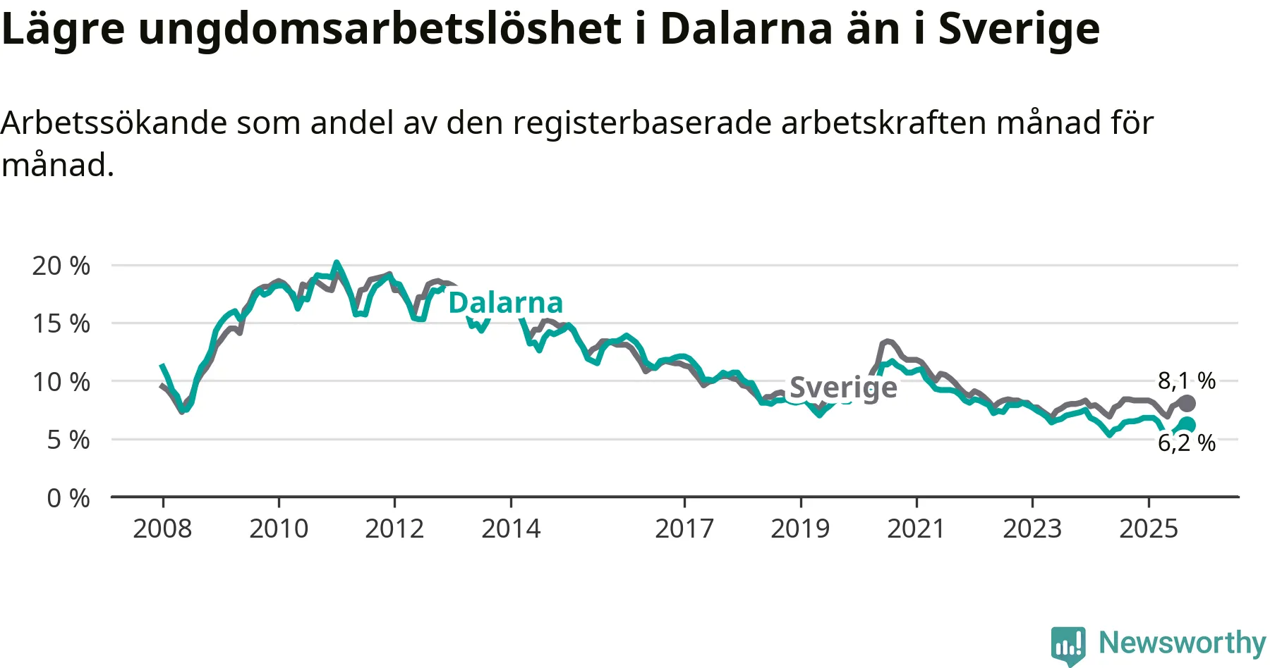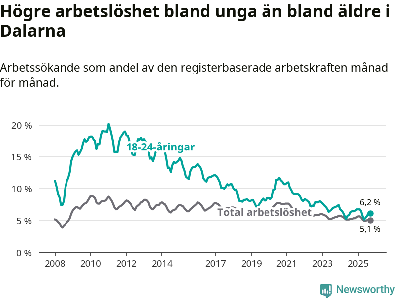 | Bland ungdomar | 6,2 % | −0,3 % ▼ | 8,1 % | −0,3 % ▼ |