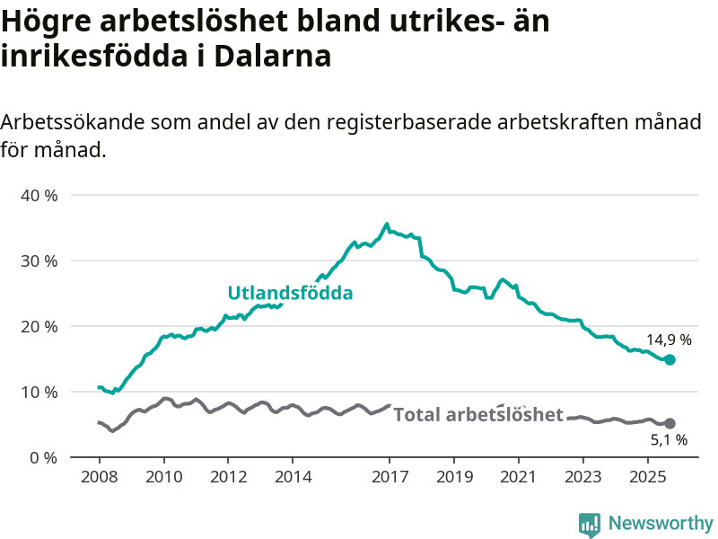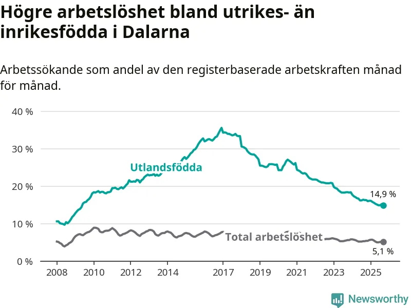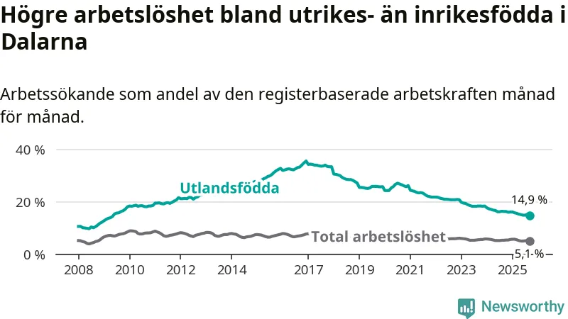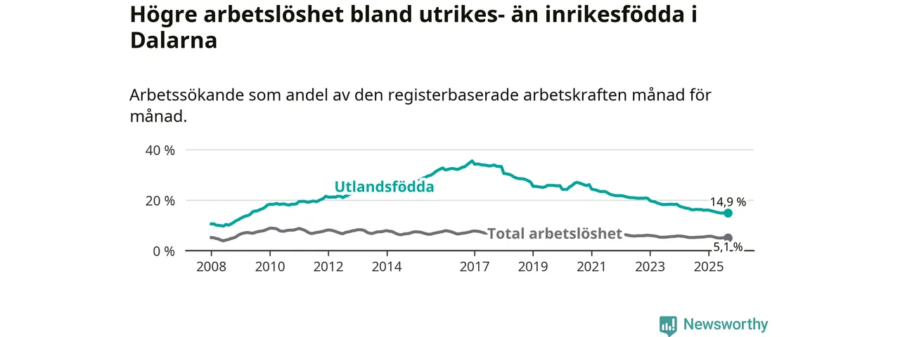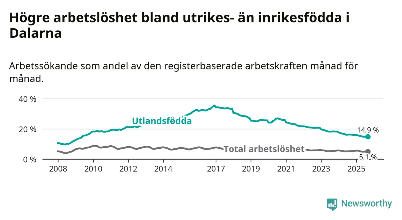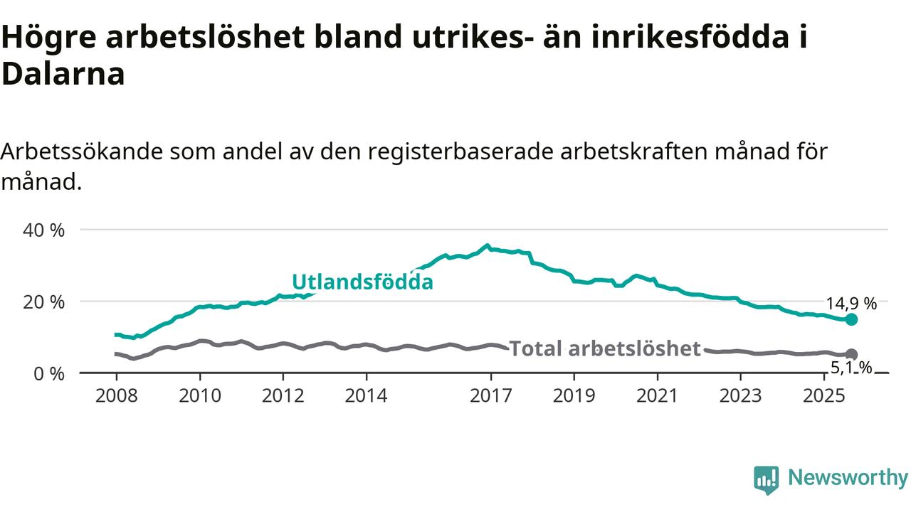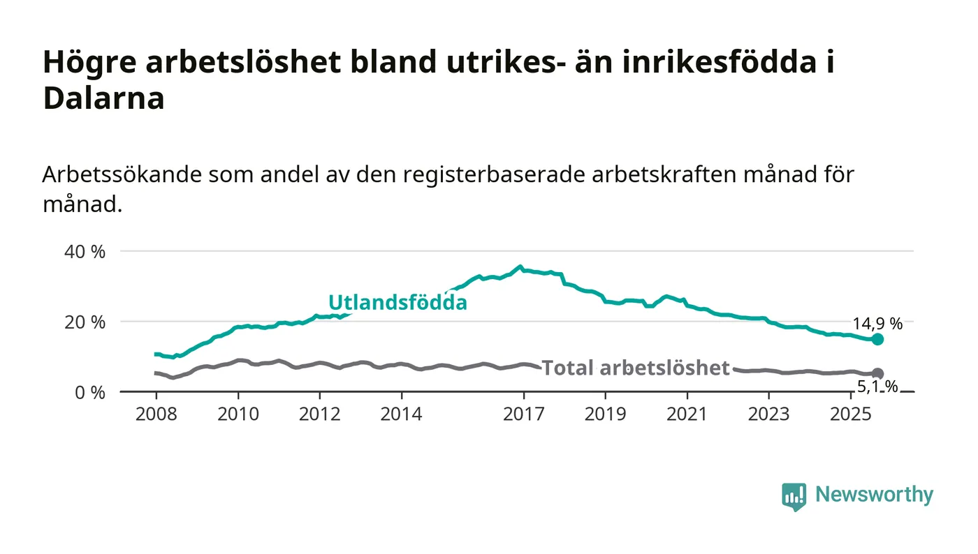 Läs mer om arbetslösheten bland utlandsfödda längre ner i den här texten.