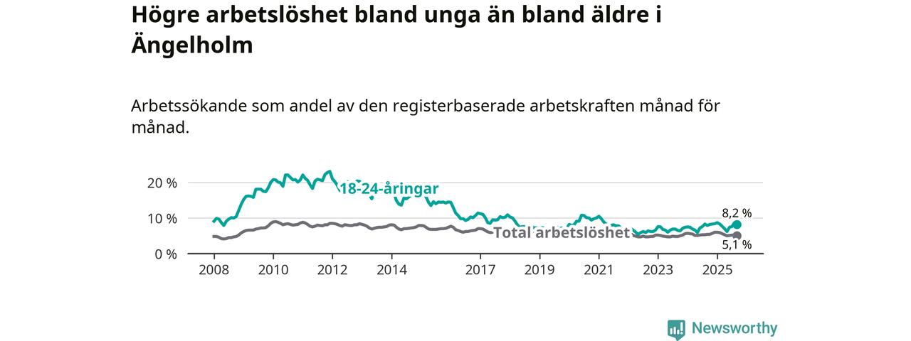 Graf: Arbetslöshet bland unga i Ängelholms kommun och Skåne län