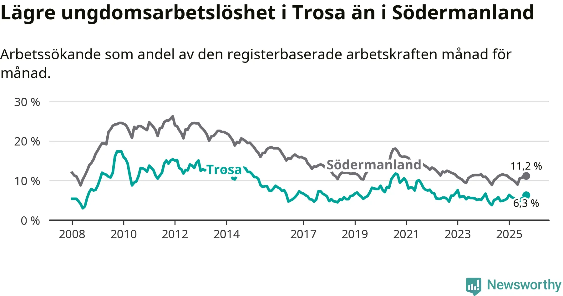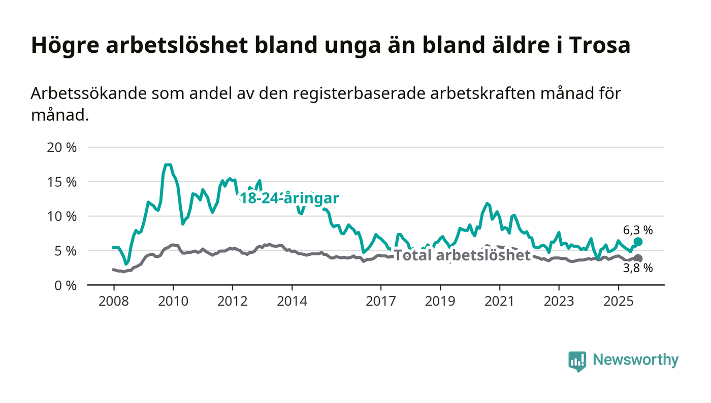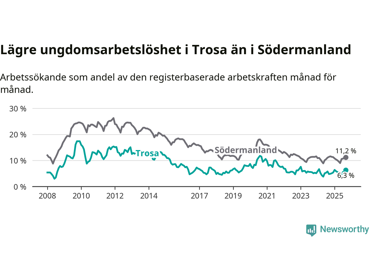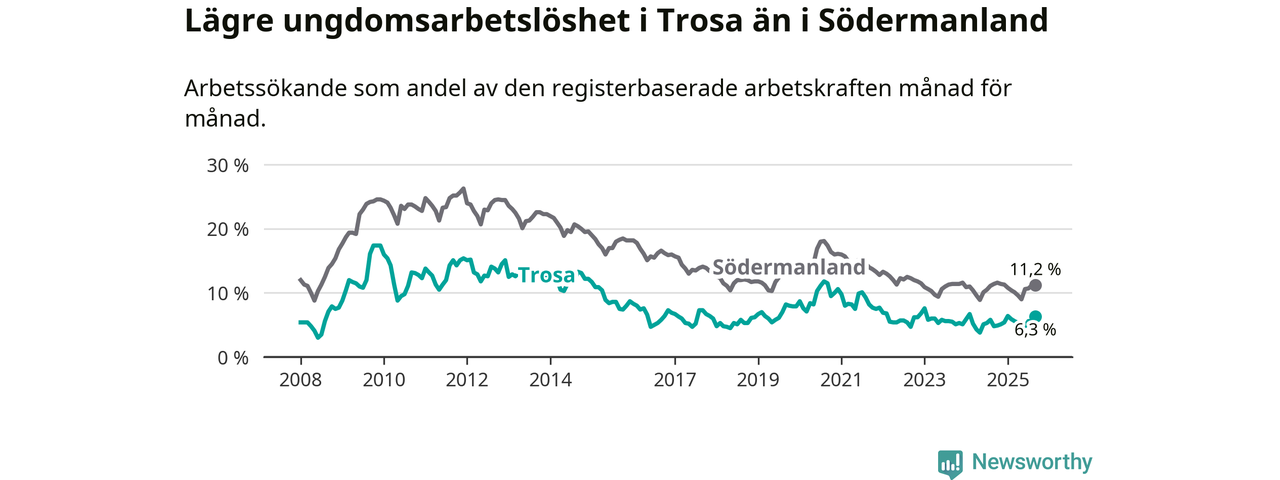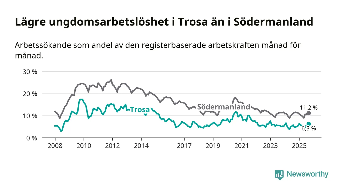 Graf: Arbetslöshet bland unga i Trosa kommun och Södermanlands län