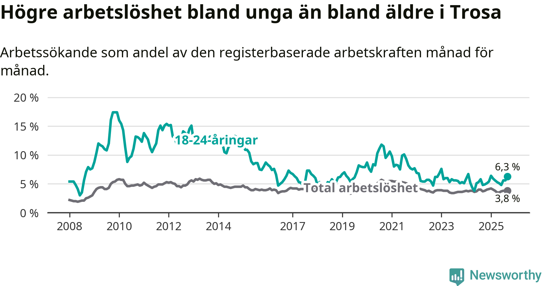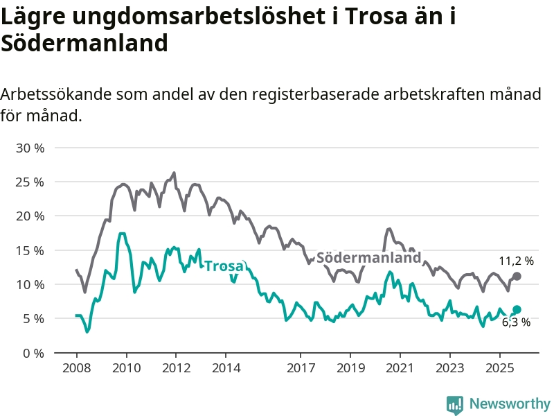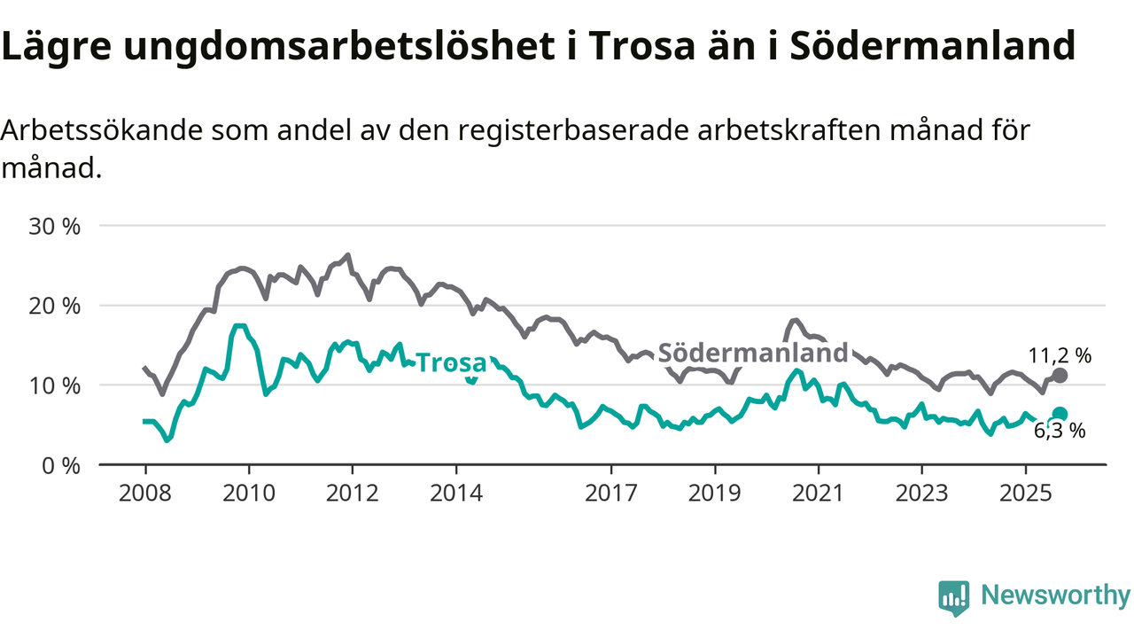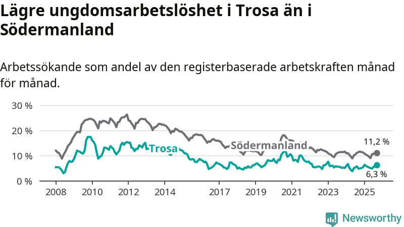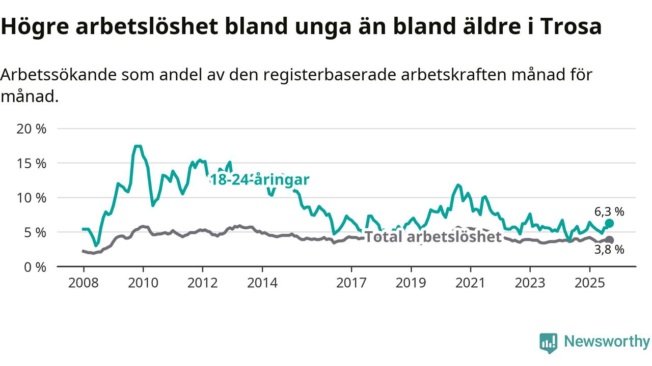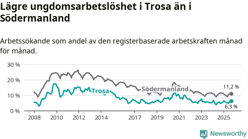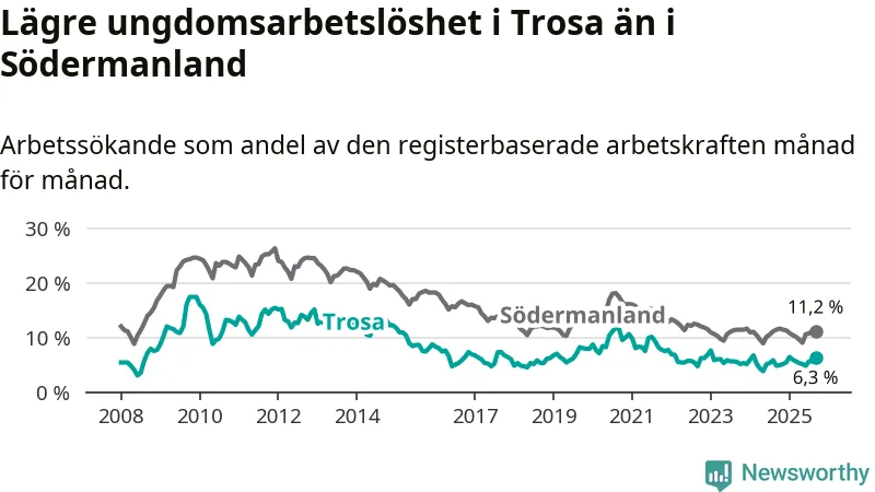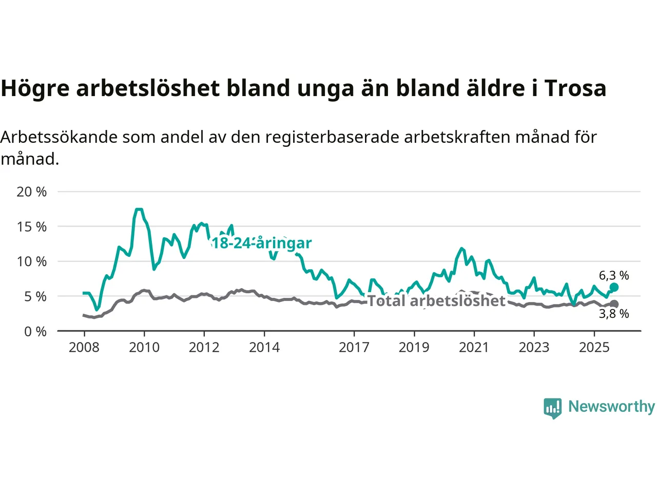 Graf: Arbetslöshet bland unga i Trosa kommun och Södermanlands län