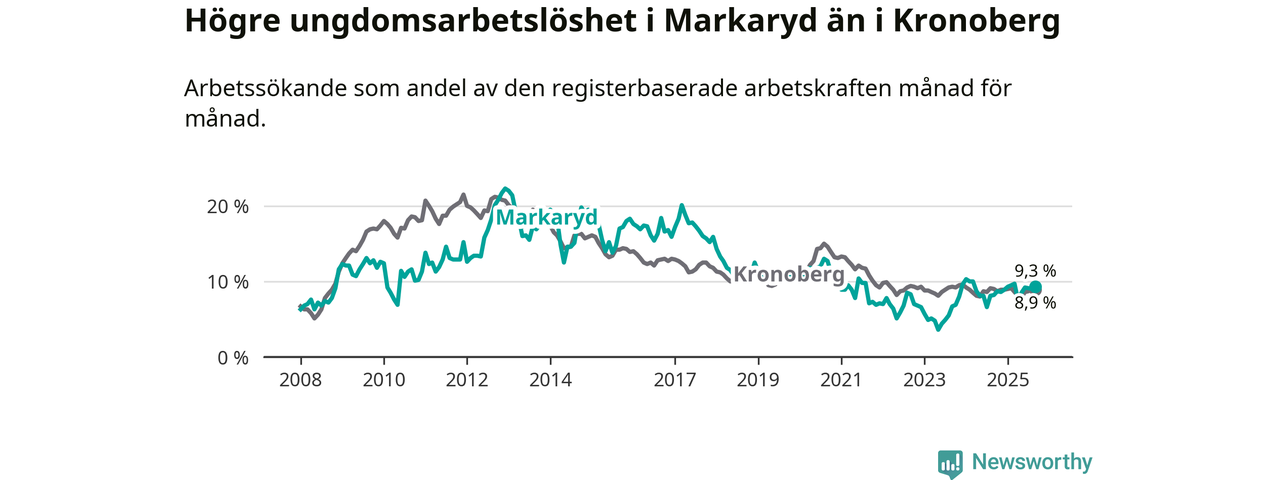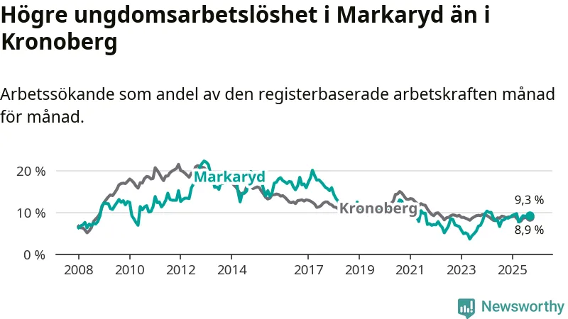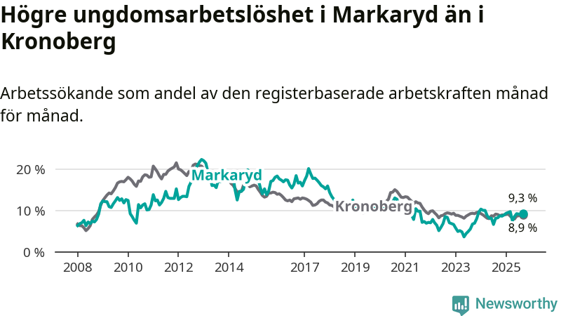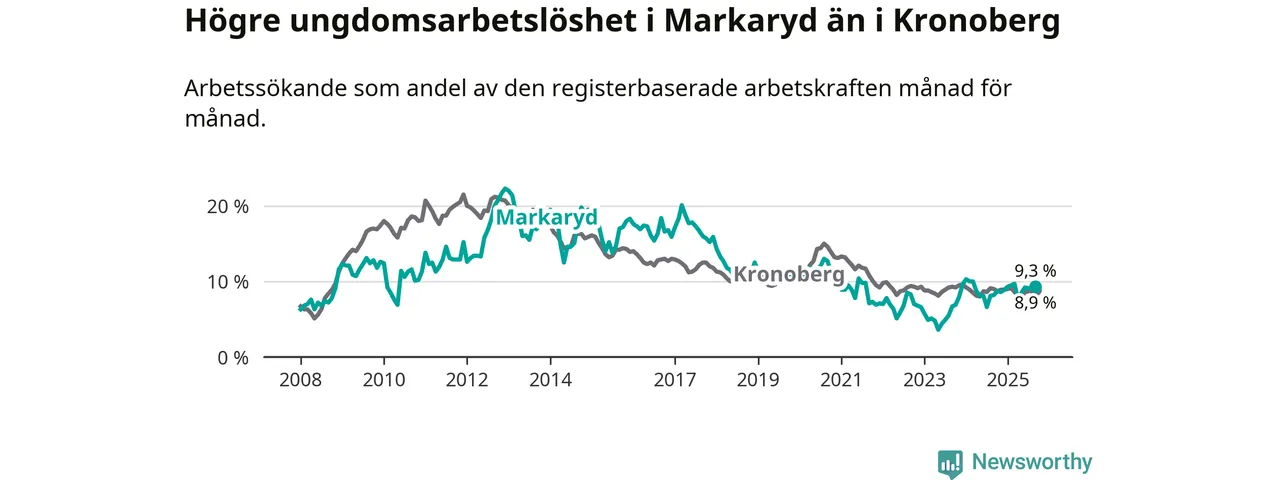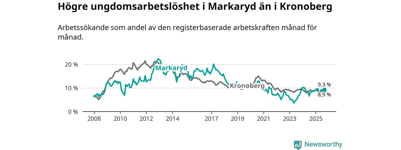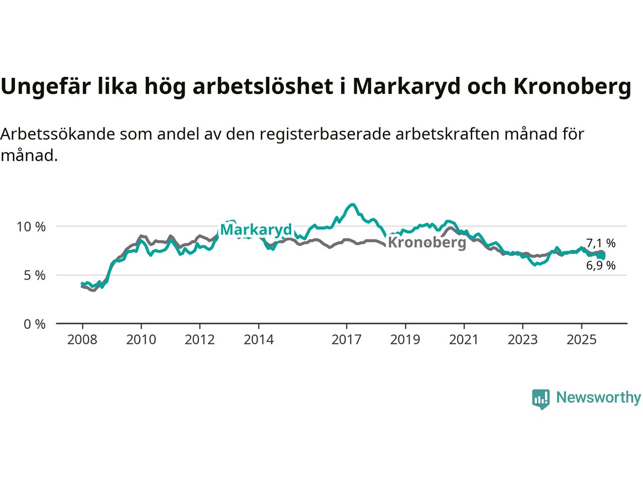 Den minskande arbetslösheten gör att Markaryd nu har i stort sett samma arbetslöshetsnivå som hela Kronobergs län. Ljungby har den lägsta arbetslösheten i länet (5,2 procent), medan Lessebo har den högsta (10,1 procent). För att Markaryd skulle komma ner i samma arbetslöshetsnivå som Ljungby skulle 79 personer behöva sysselsättas.