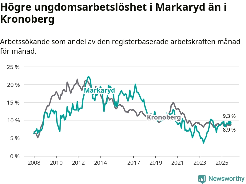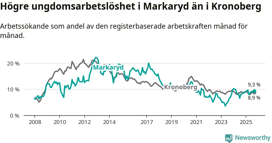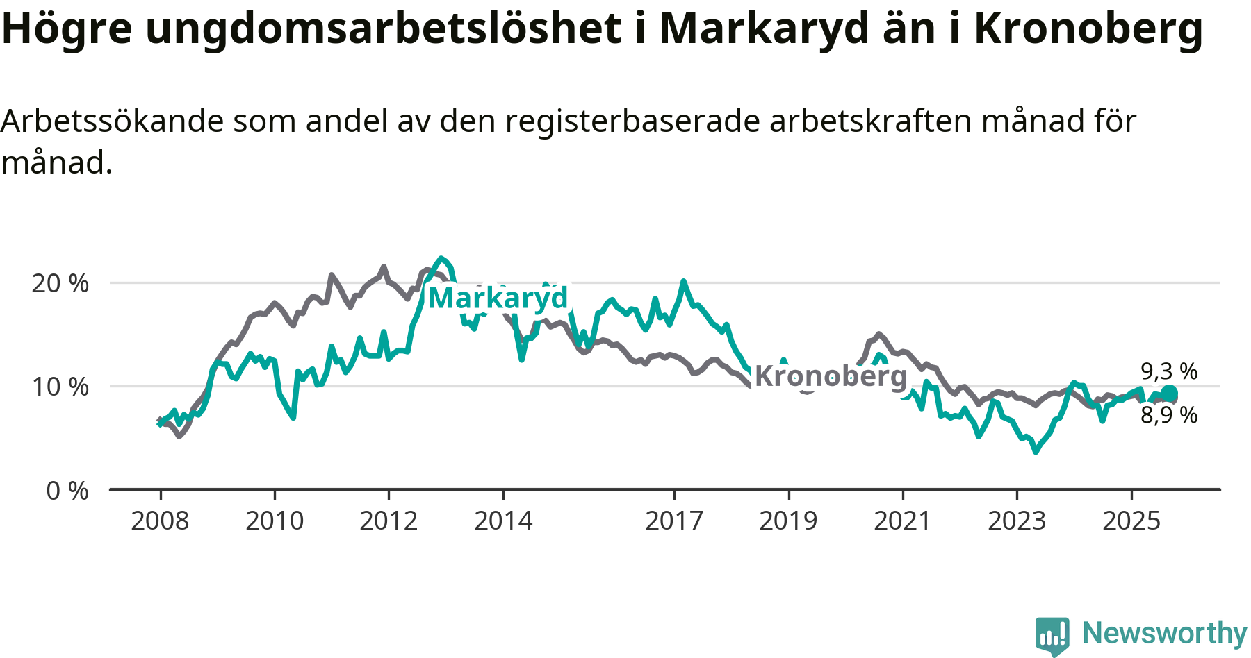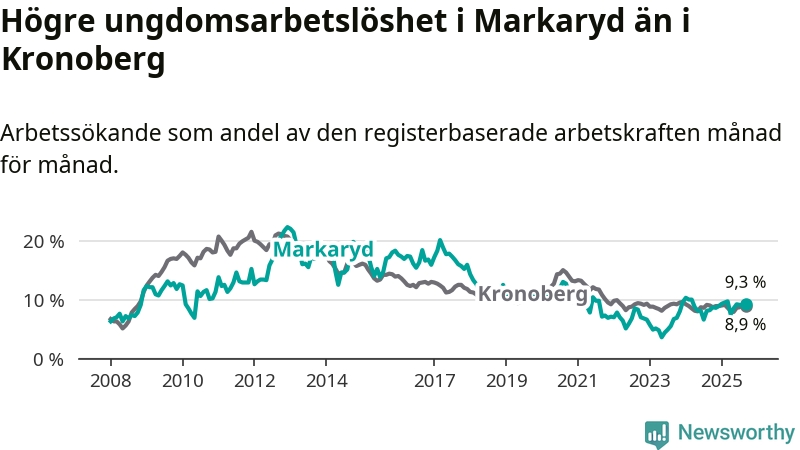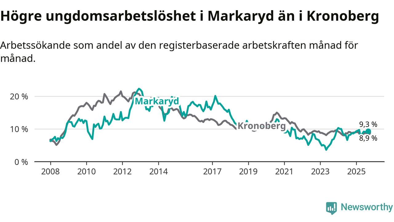 Den minskande arbetslösheten gör att Markaryd nu har i stort sett samma arbetslöshetsnivå som hela Kronobergs län. Ljungby har den lägsta arbetslösheten i länet (5,2 procent), medan Lessebo har den högsta (10,1 procent). För att Markaryd skulle komma ner i samma arbetslöshetsnivå som Ljungby skulle 79 personer behöva sysselsättas.