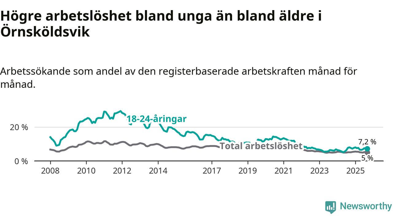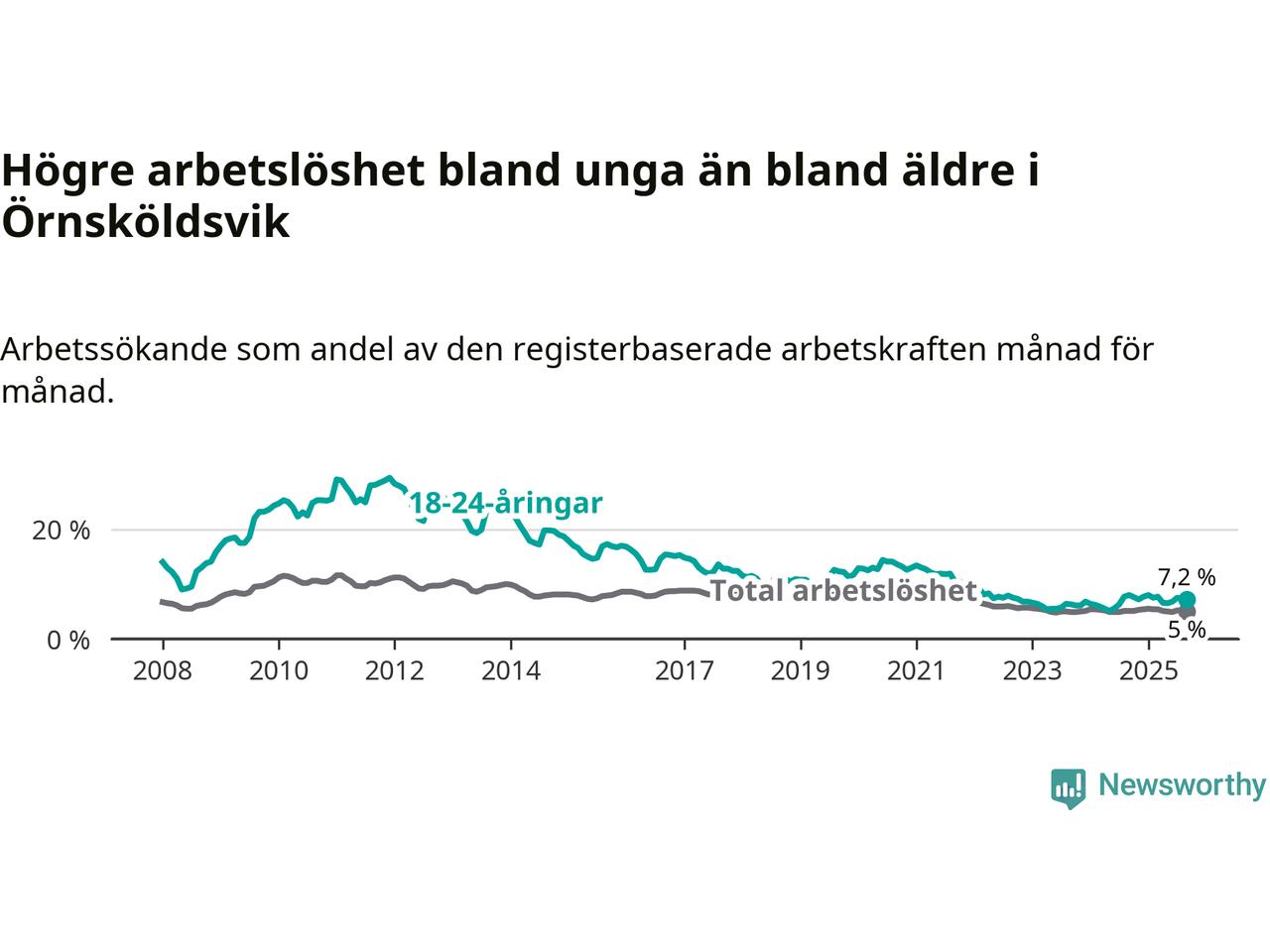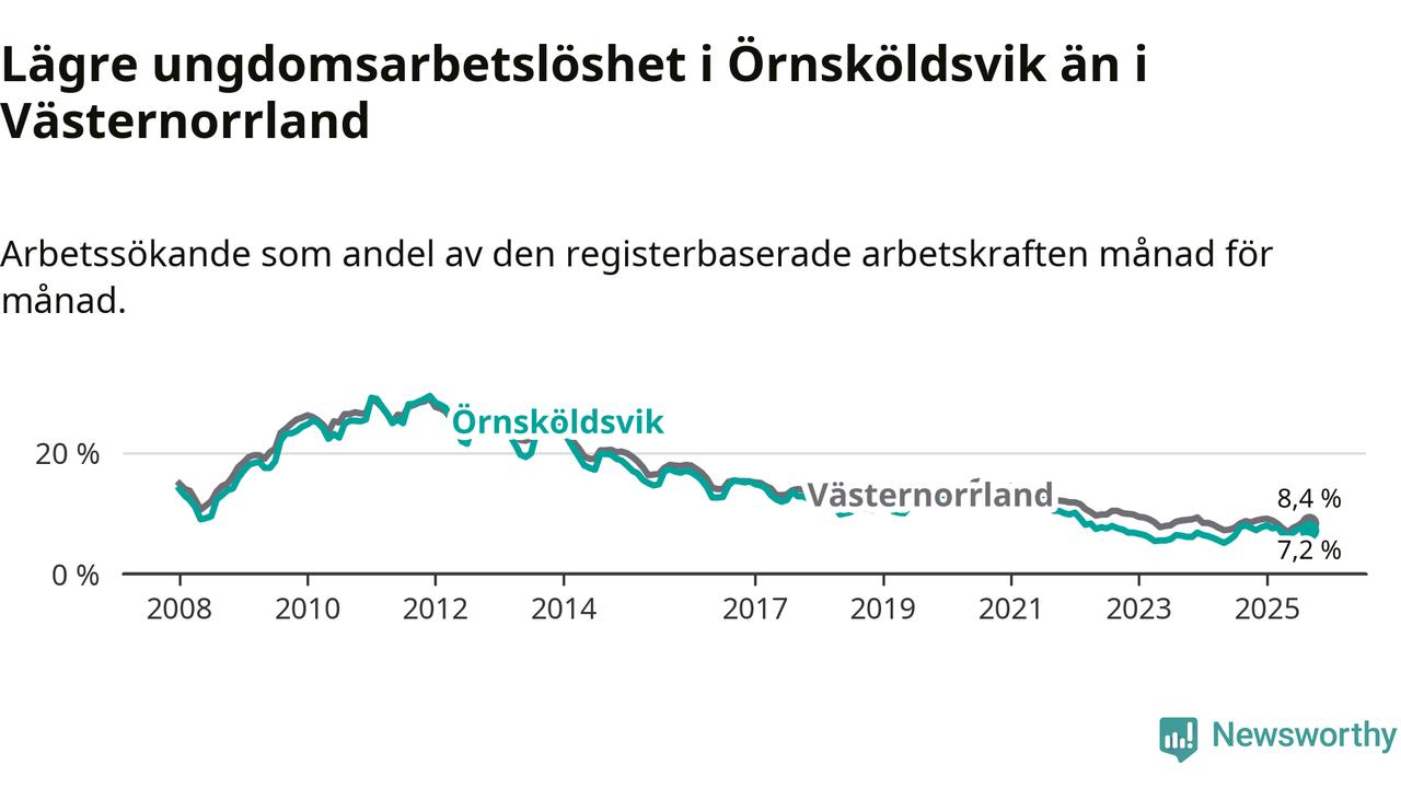 Graf: Arbetslöshet bland unga i Örnsköldsviks kommun och Västernorrlands län