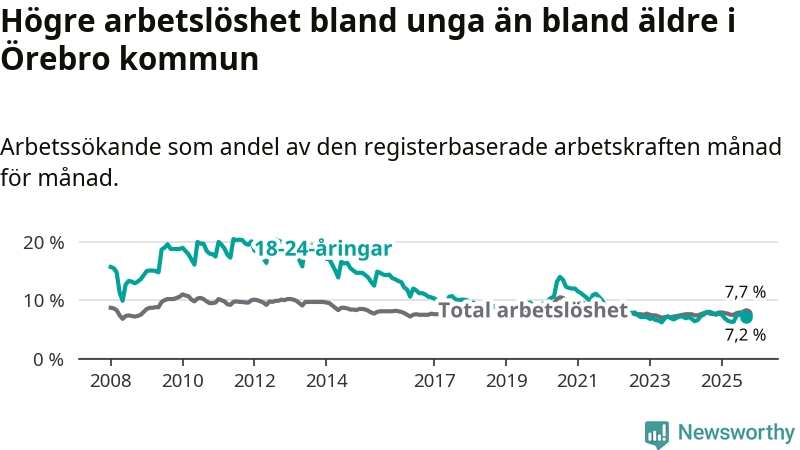 Arbetslöshet bland 18–24-åringar i Örebro län