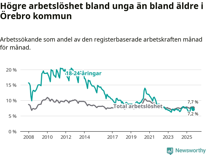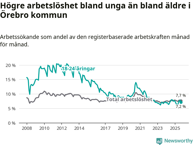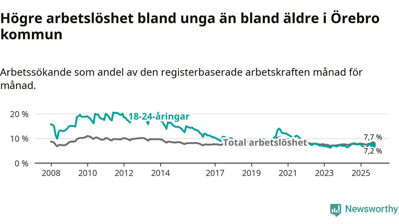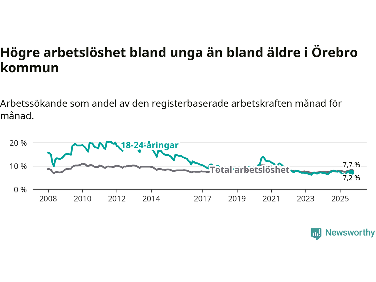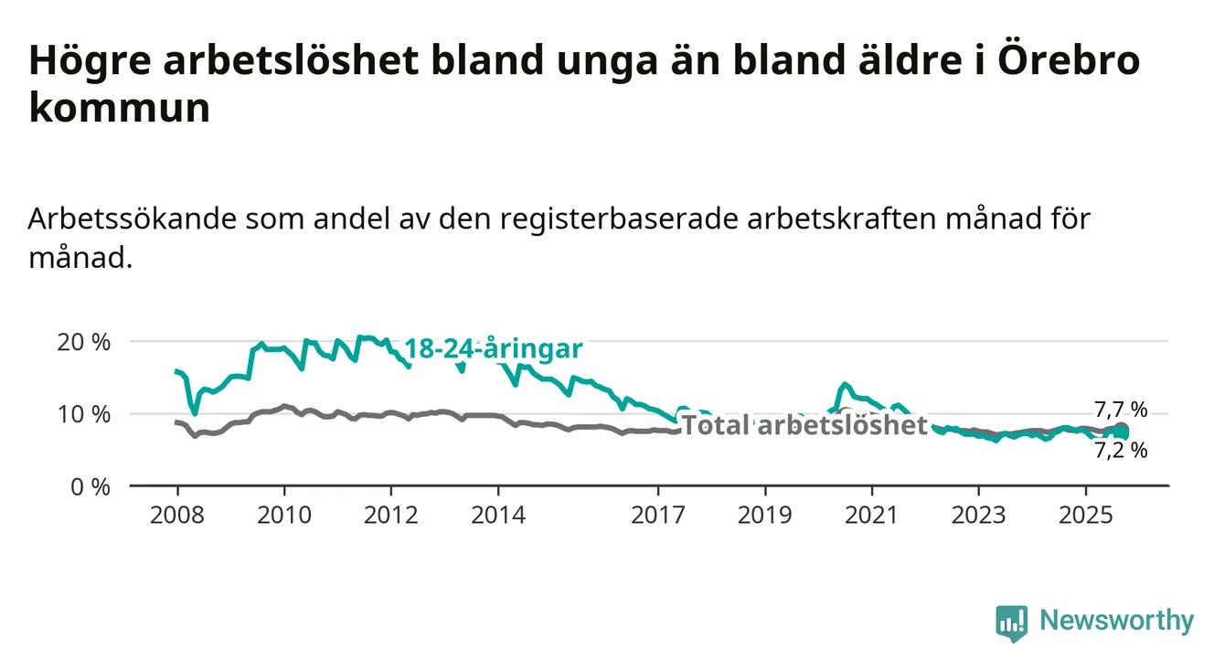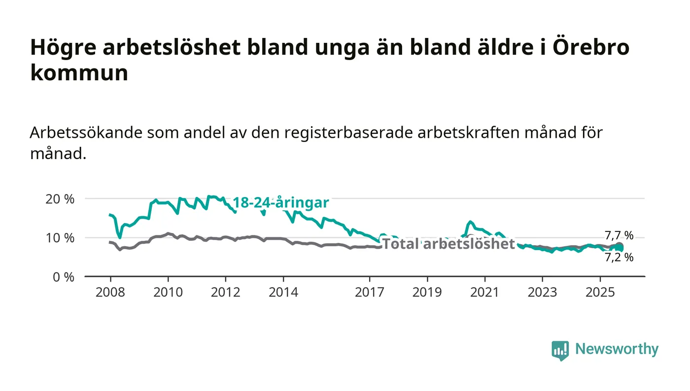 Graf: Arbetslöshet bland unga i Örebro kommun och Örebro län