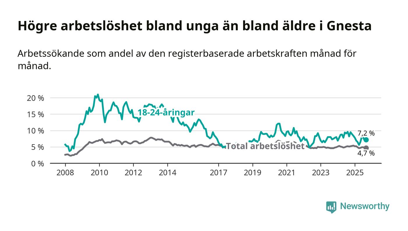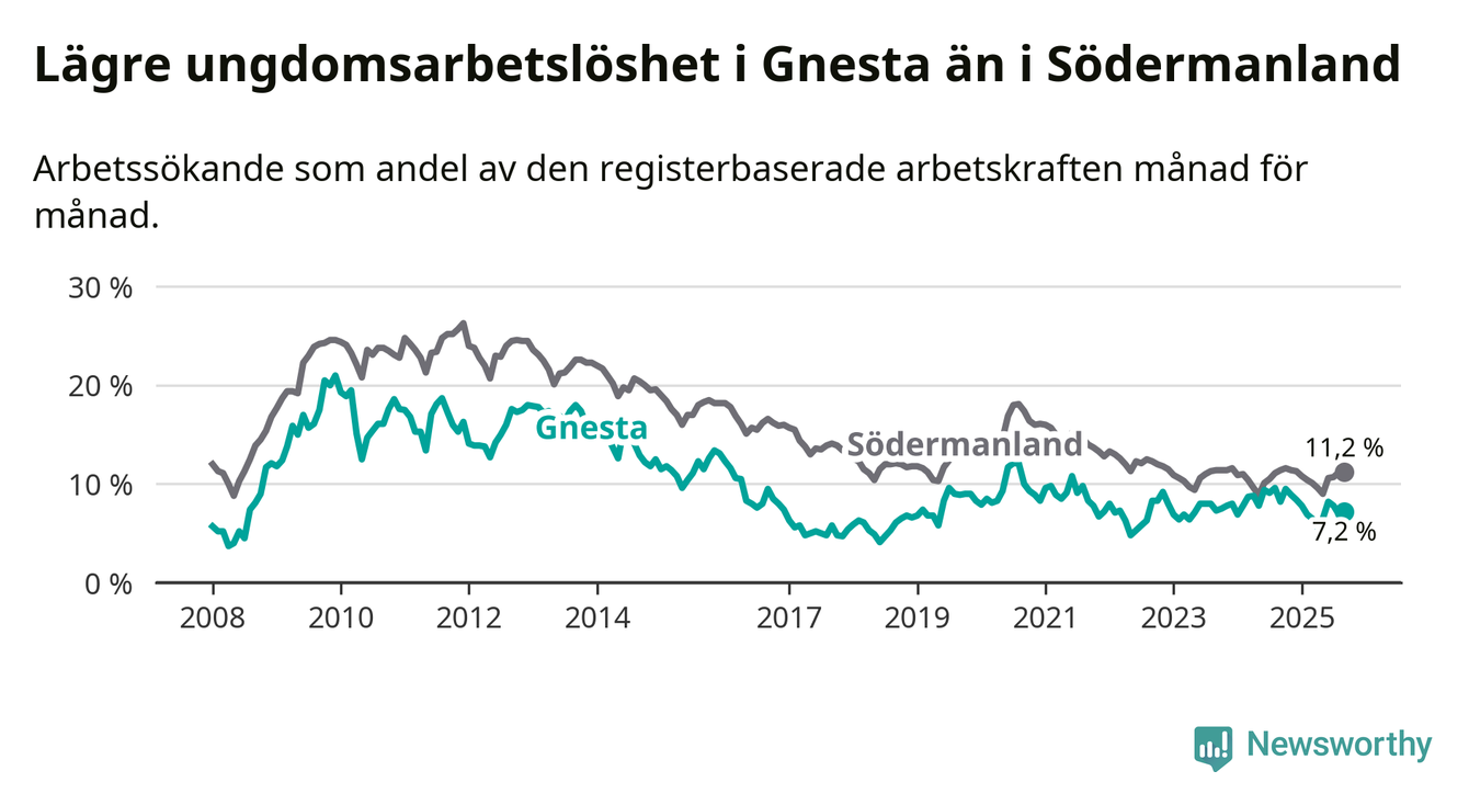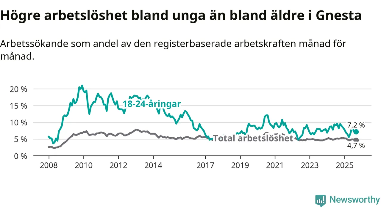 Graf: Arbetslöshet bland unga i Gnesta kommun och Södermanlands län