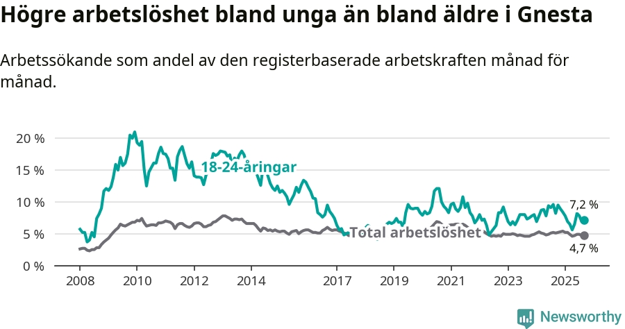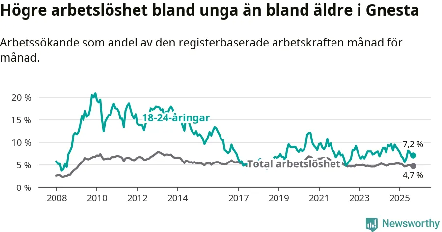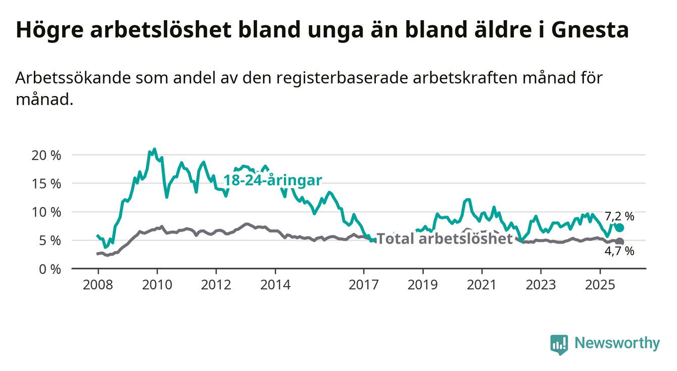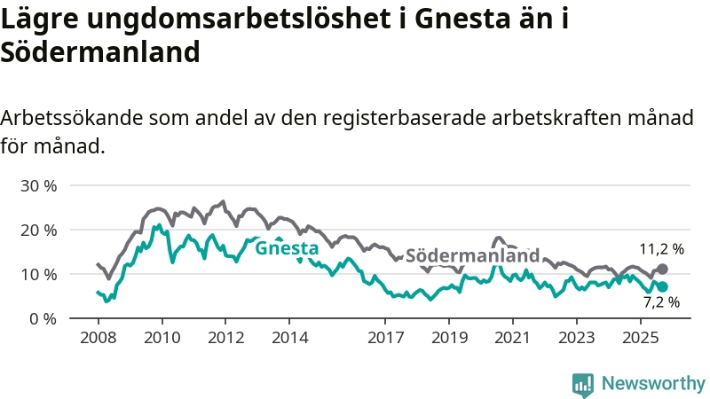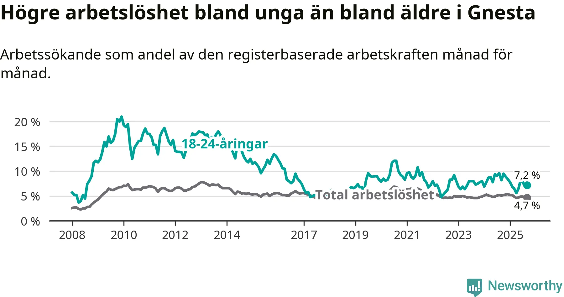 Graf: Arbetslöshet bland unga i Gnesta kommun och Södermanlands län