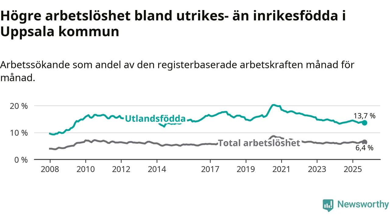 Arbetslöshet bland utlandsfödda i Uppsala län