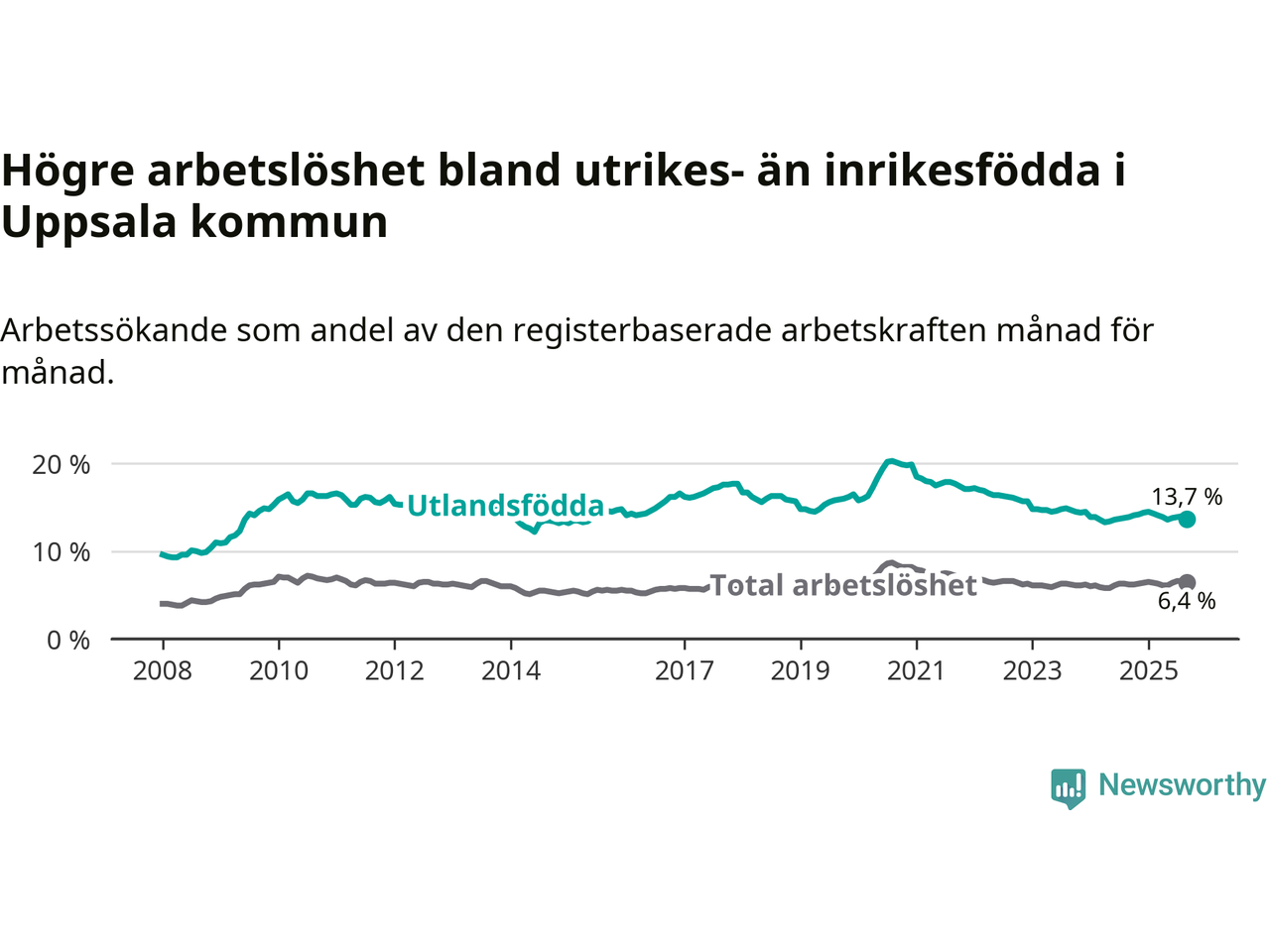 Läs mer om arbetslösheten bland utlandsfödda längre ner i den här texten.
