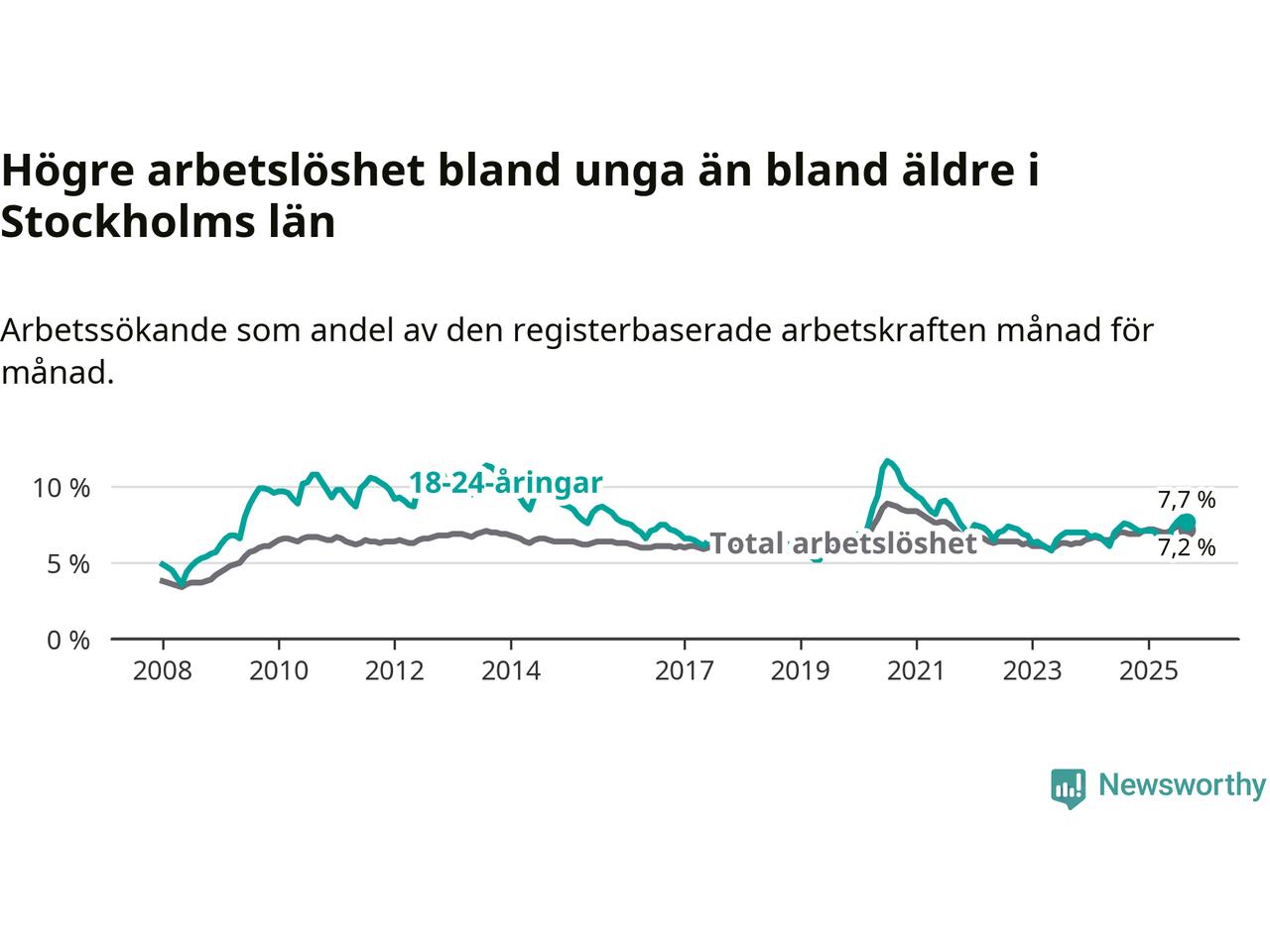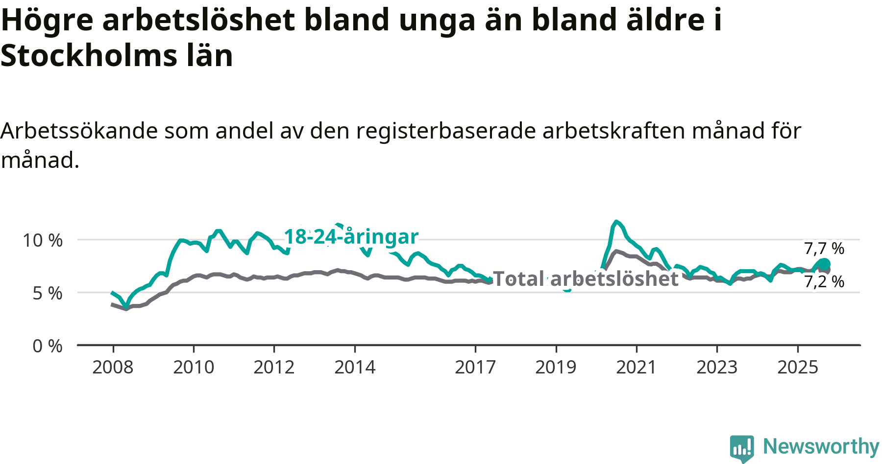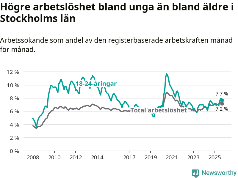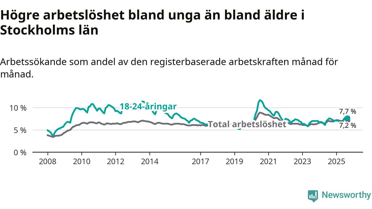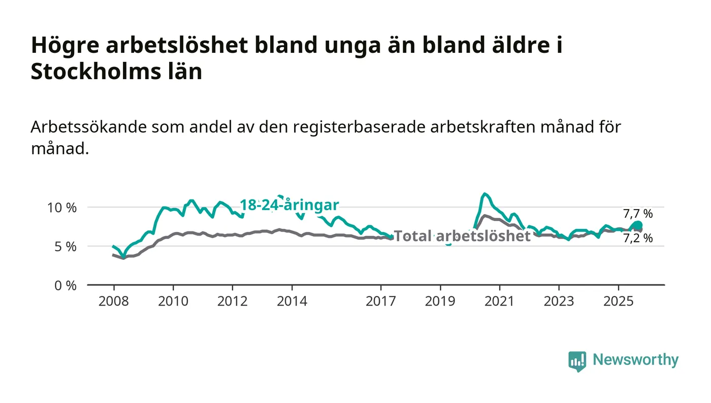 Arbetslöshet bland 18–24-åringar i Stockholms län