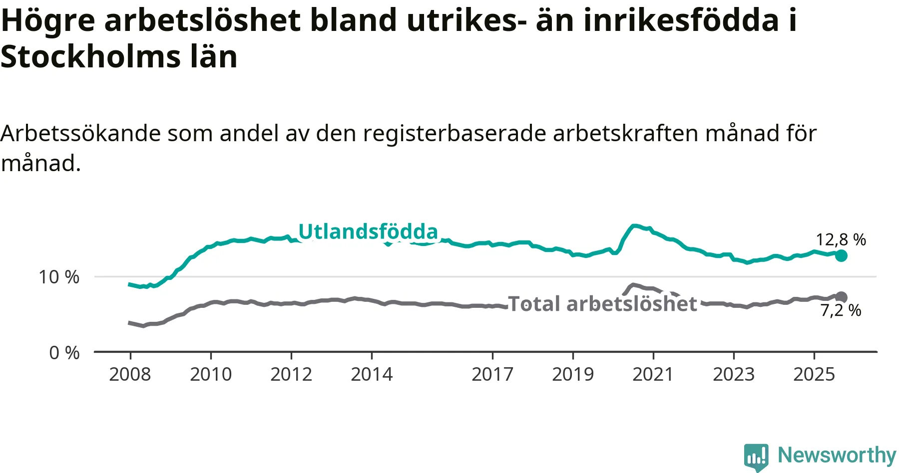 Bland utlandsfödda12,8 %+0,1 % 14,8 %−0,4 %