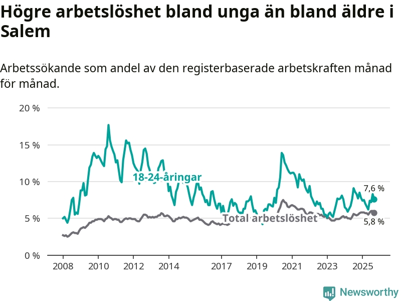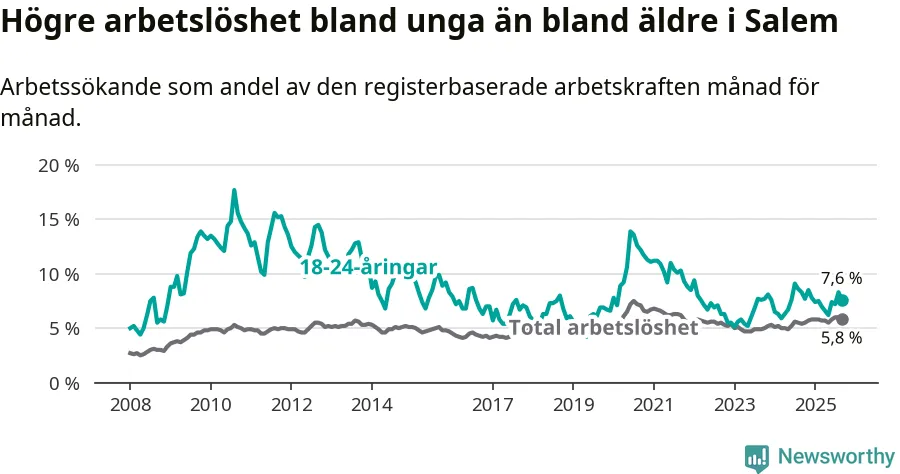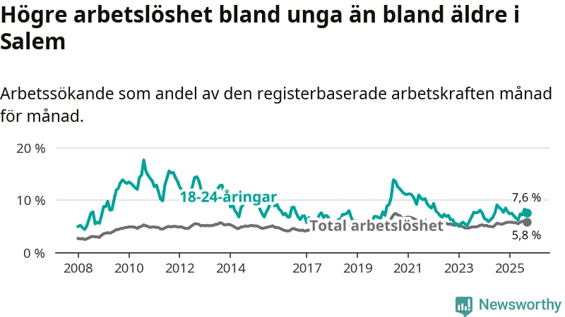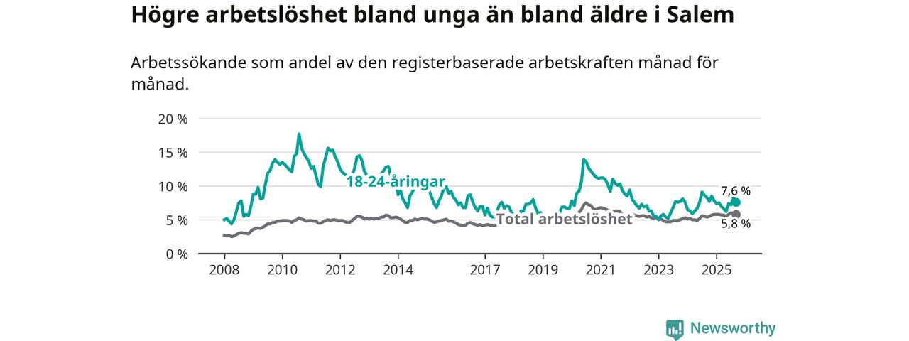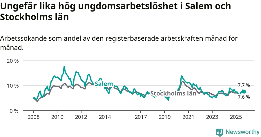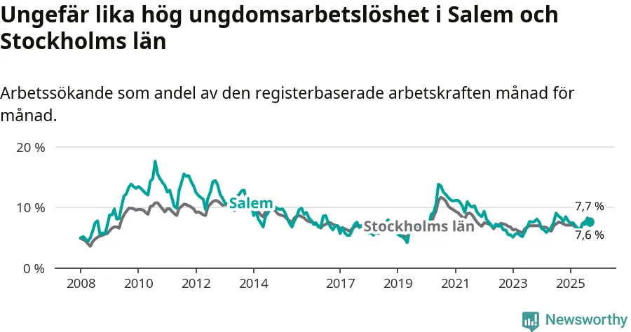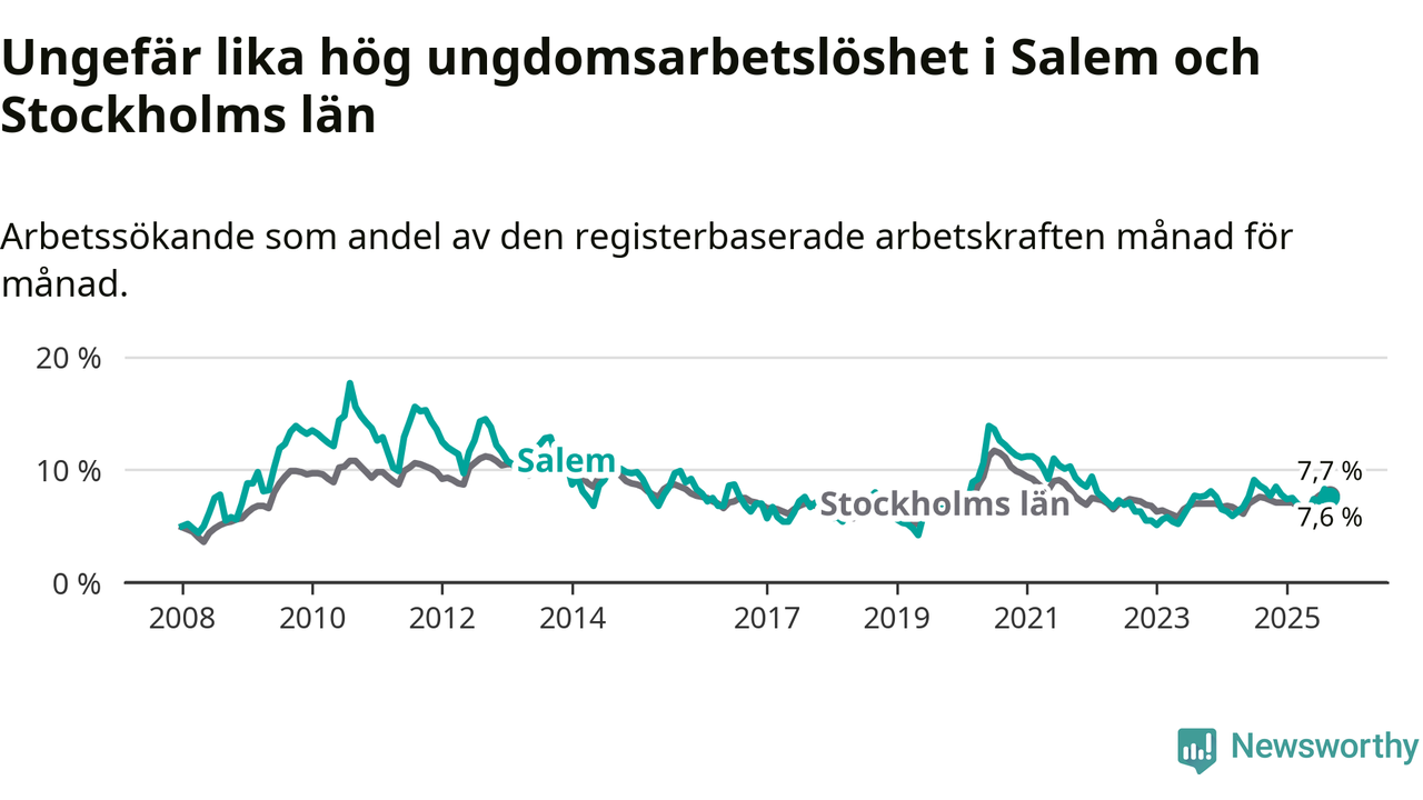 Medan Salem har lägre total arbetslöshet än Stockholms län, ligger ungdomsarbetslösheten på i stort sett samma nivå.