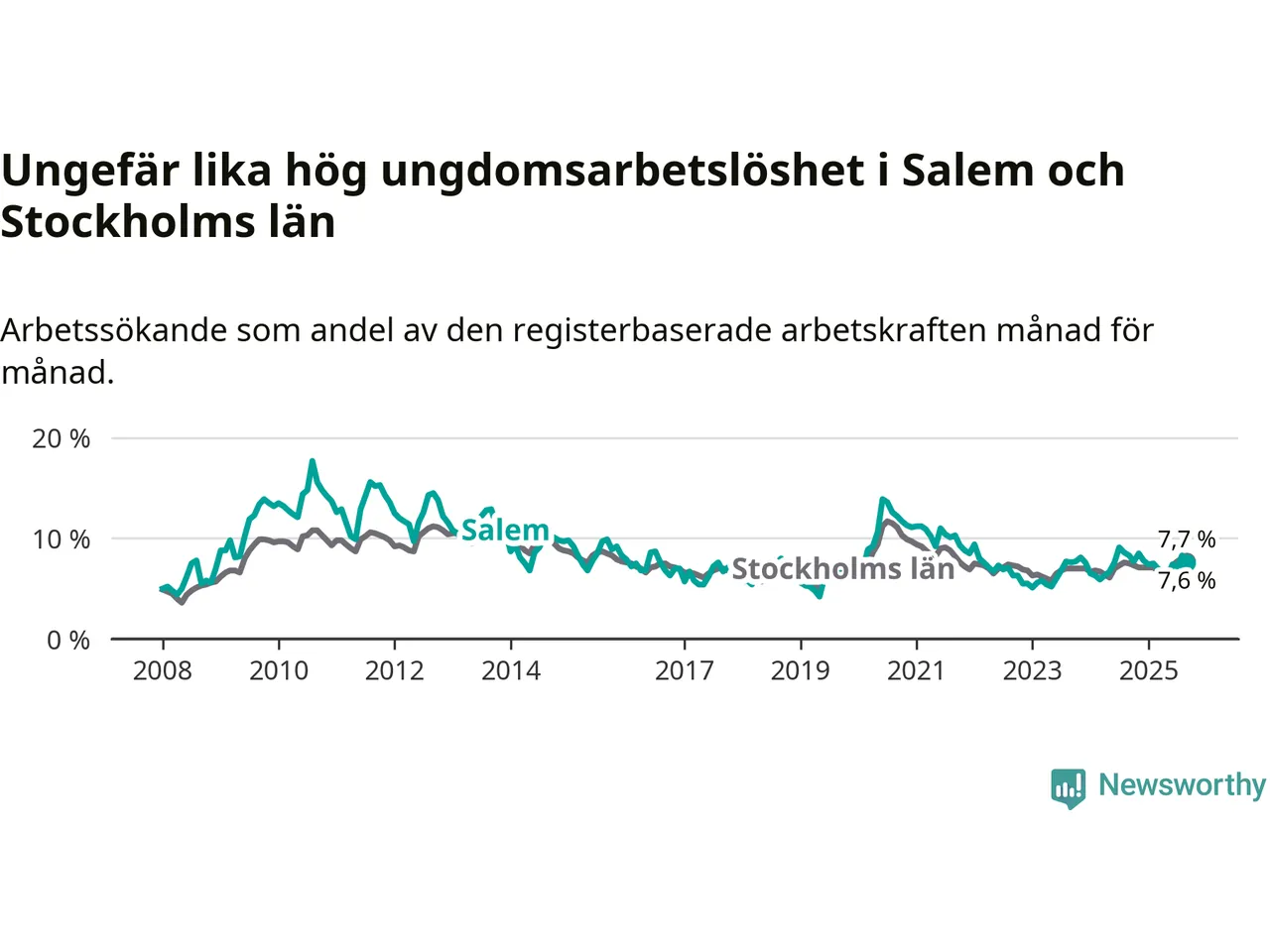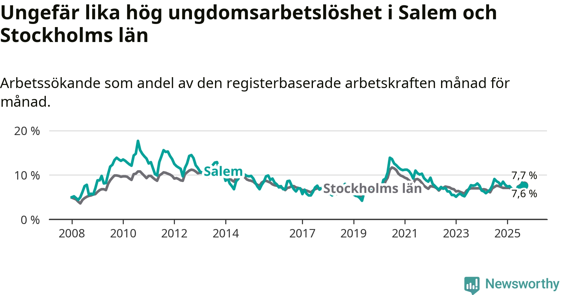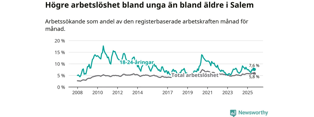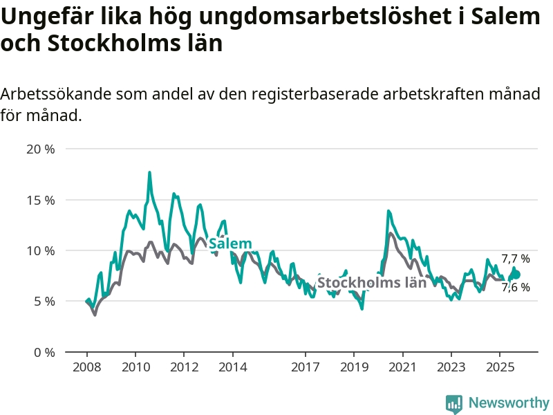 Graf: Arbetslöshet bland unga i Salems kommun och Stockholms län