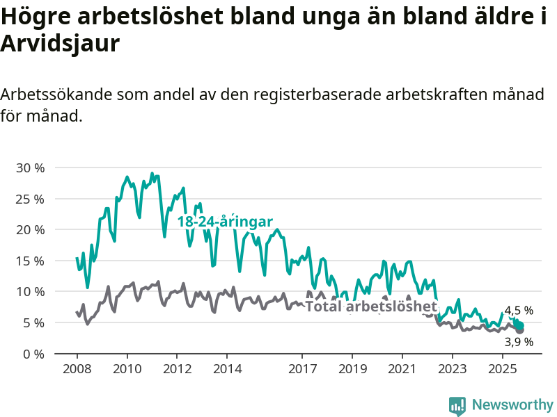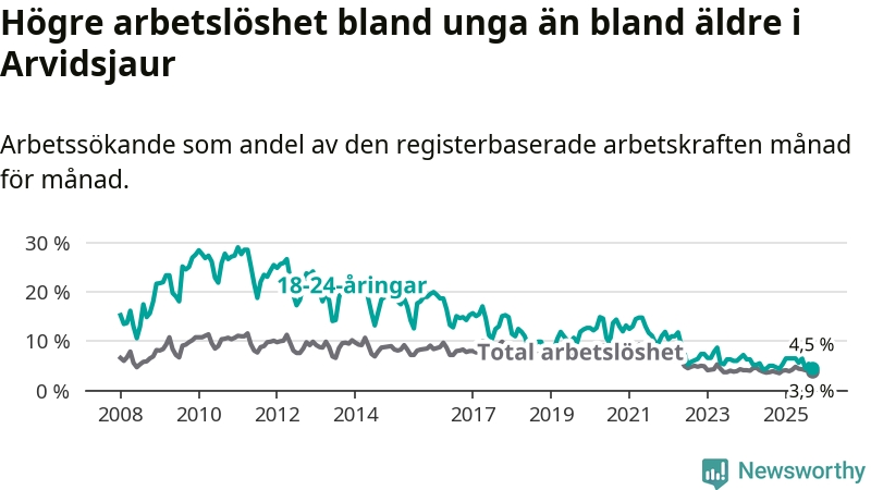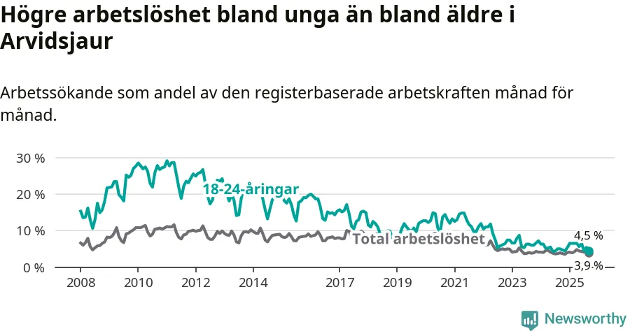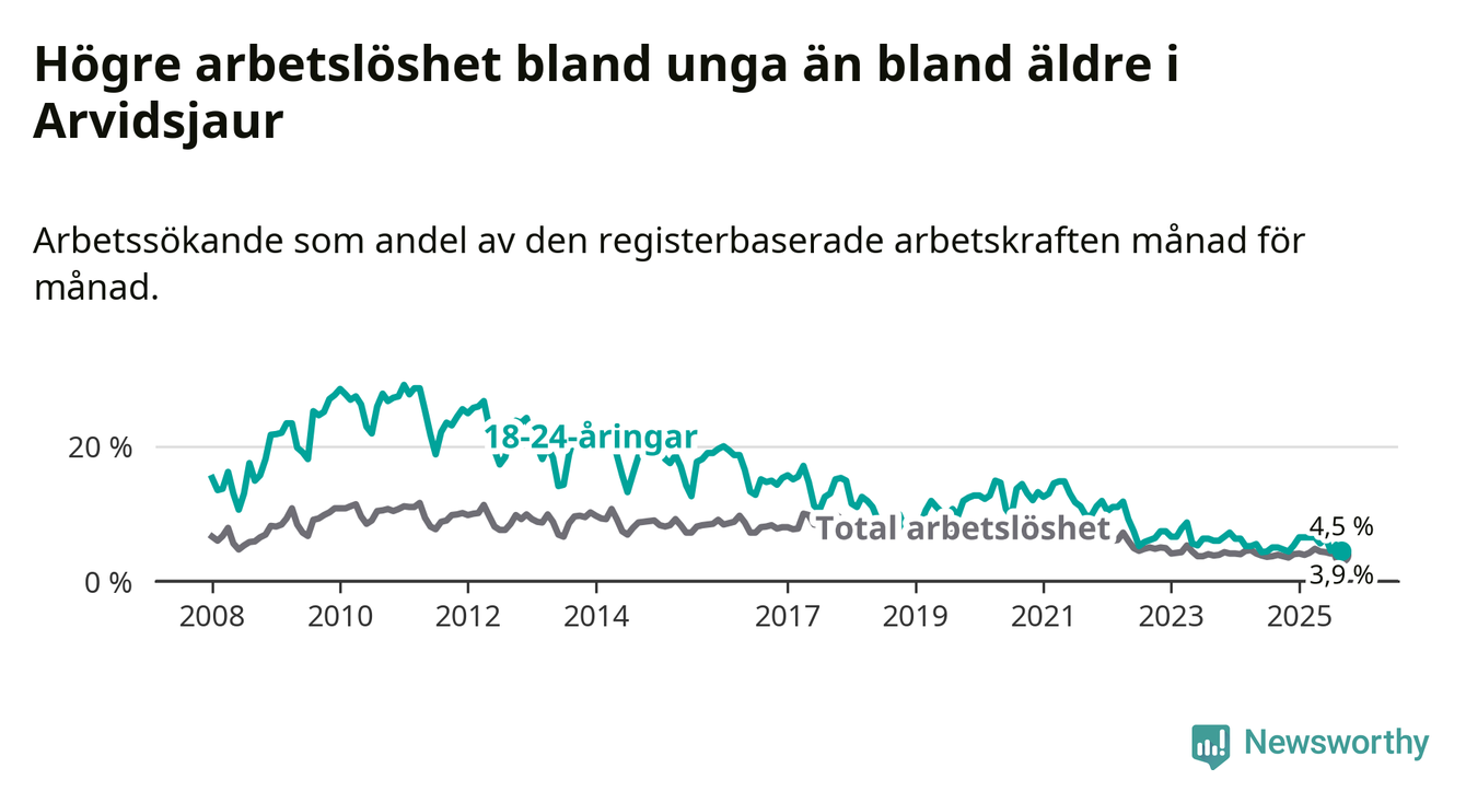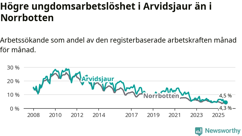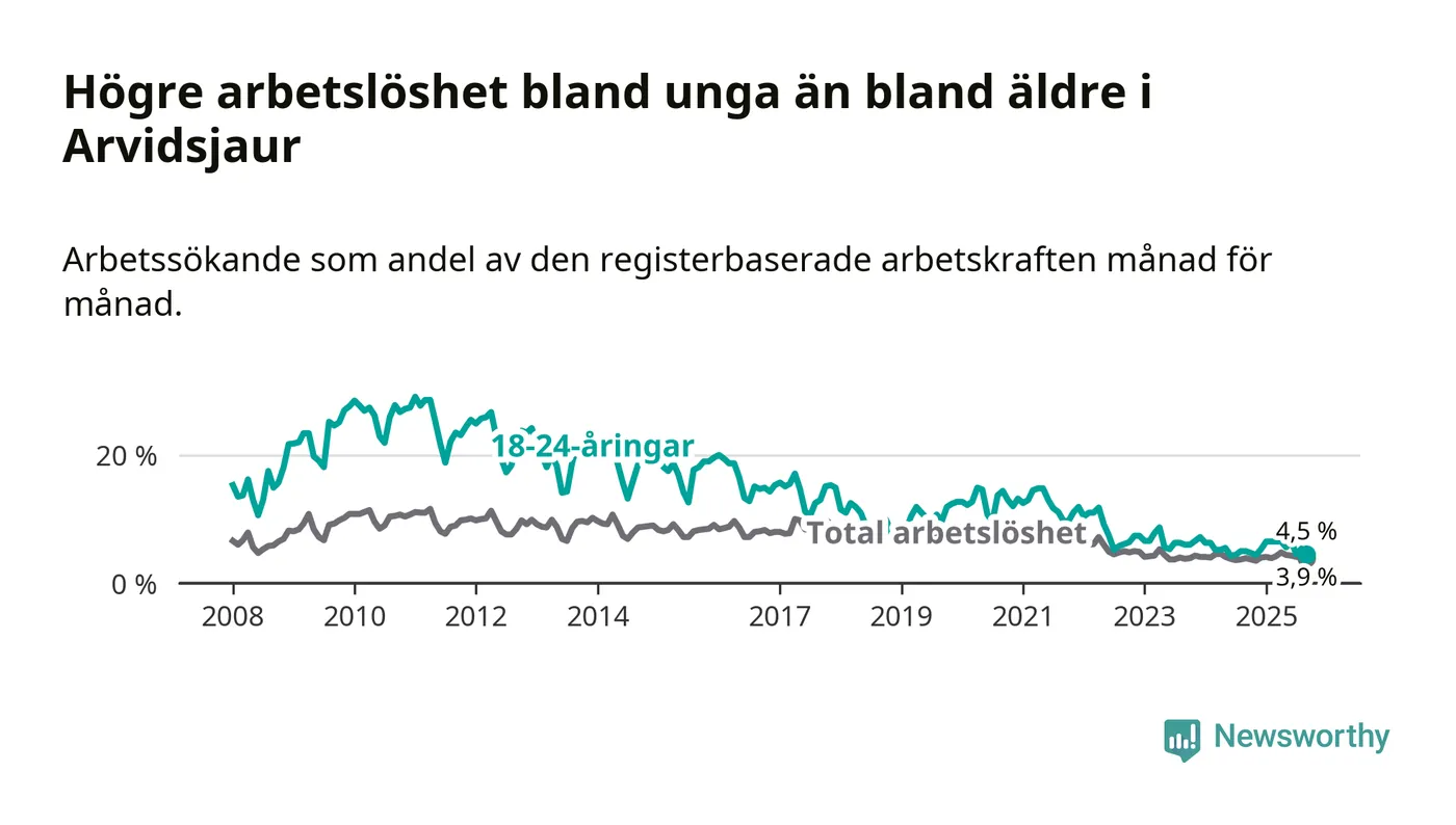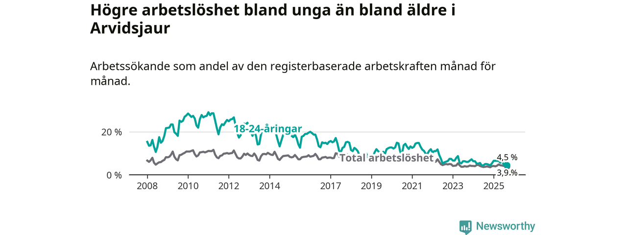 Sedan december 2024 har ungdomsarbetslösheten i Arvidsjaurs kommun ökat, men i september vände utvecklingen då andelen arbetslösa sjönk jämfört med året innan.