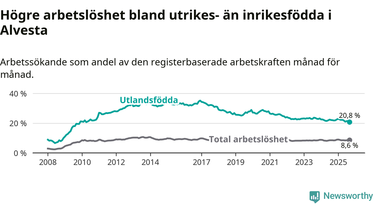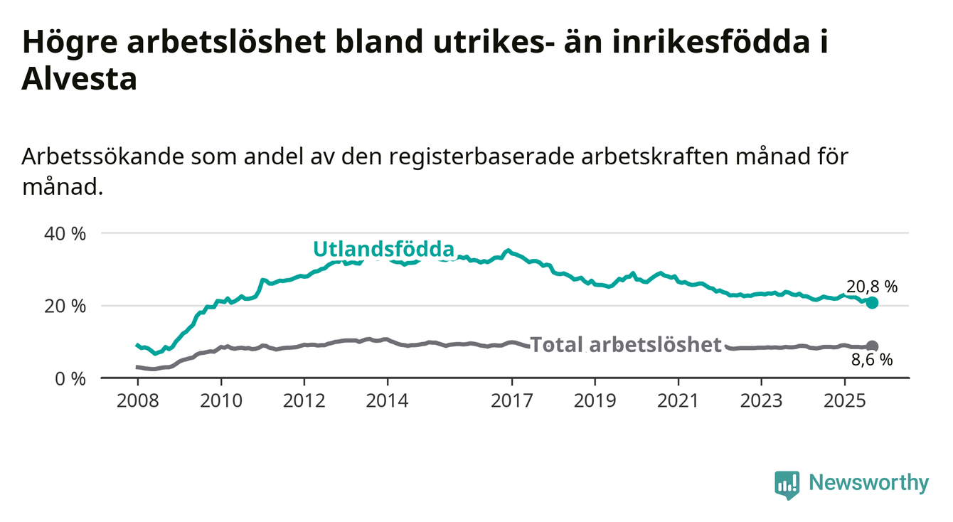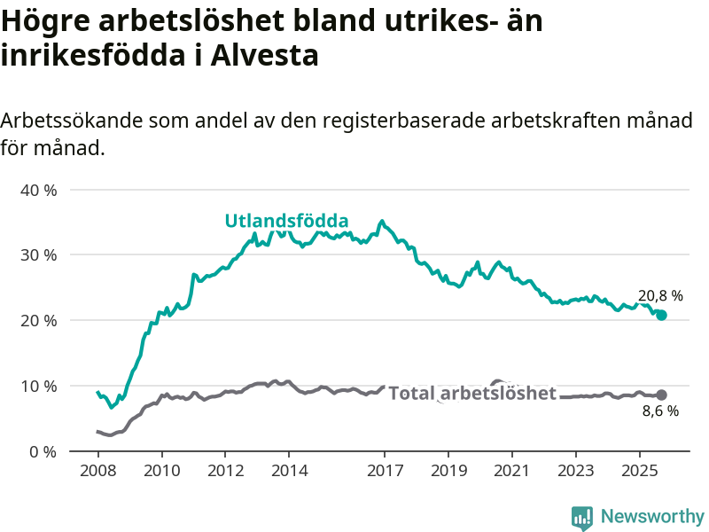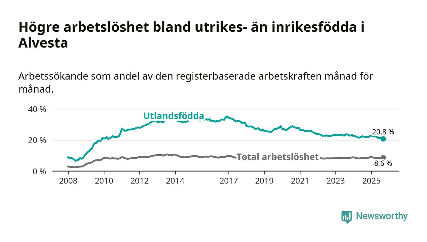 Läs mer om arbetslösheten bland utlandsfödda längre ner i den här texten.