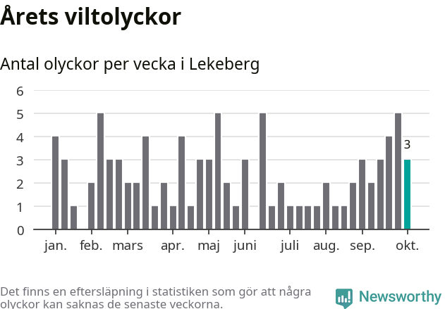 Hittills har tre viltolyckor rapporterats in i Lekebergs kommun från vecka 41. Se listan här.