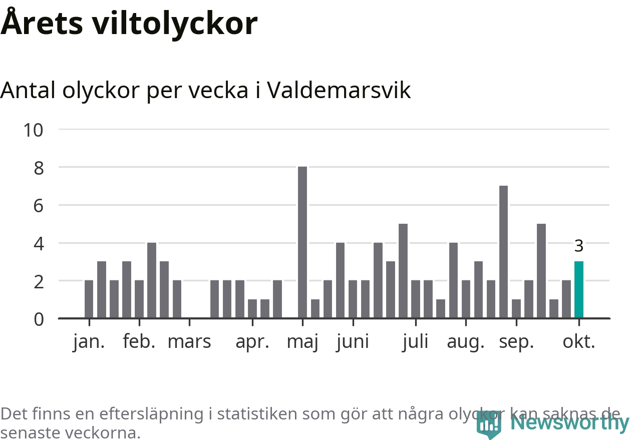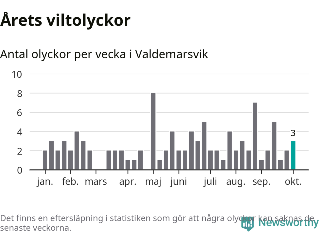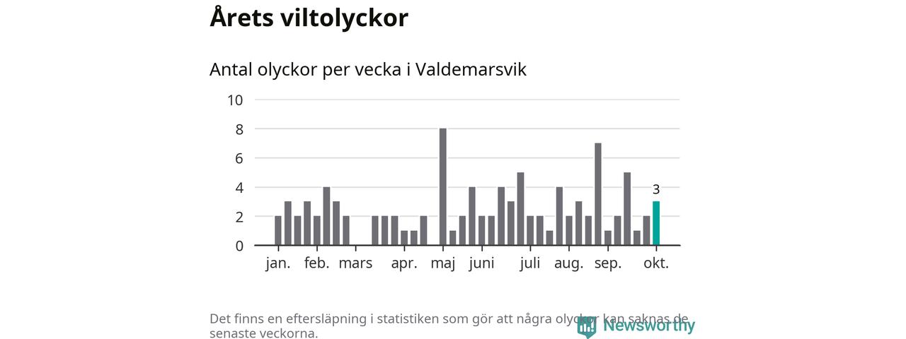 Hittills har tre viltolyckor rapporterats in i Valdemarsviks kommun från vecka 41. Se listan här.