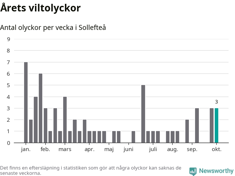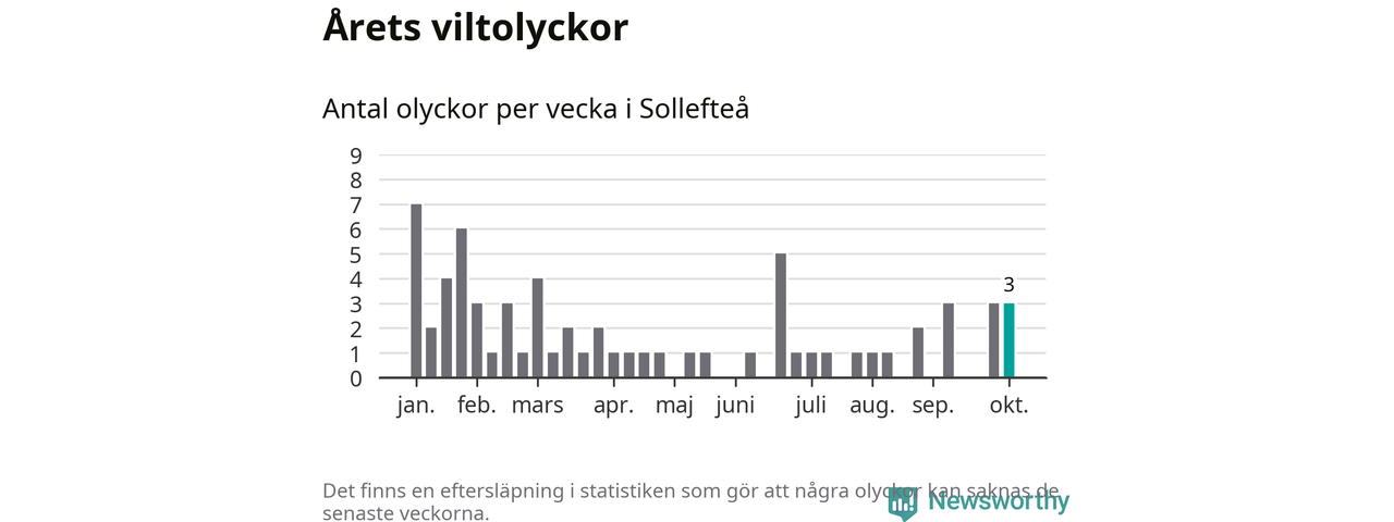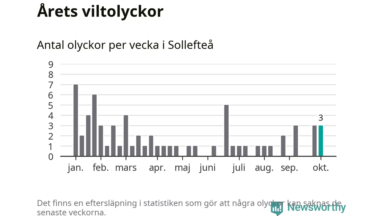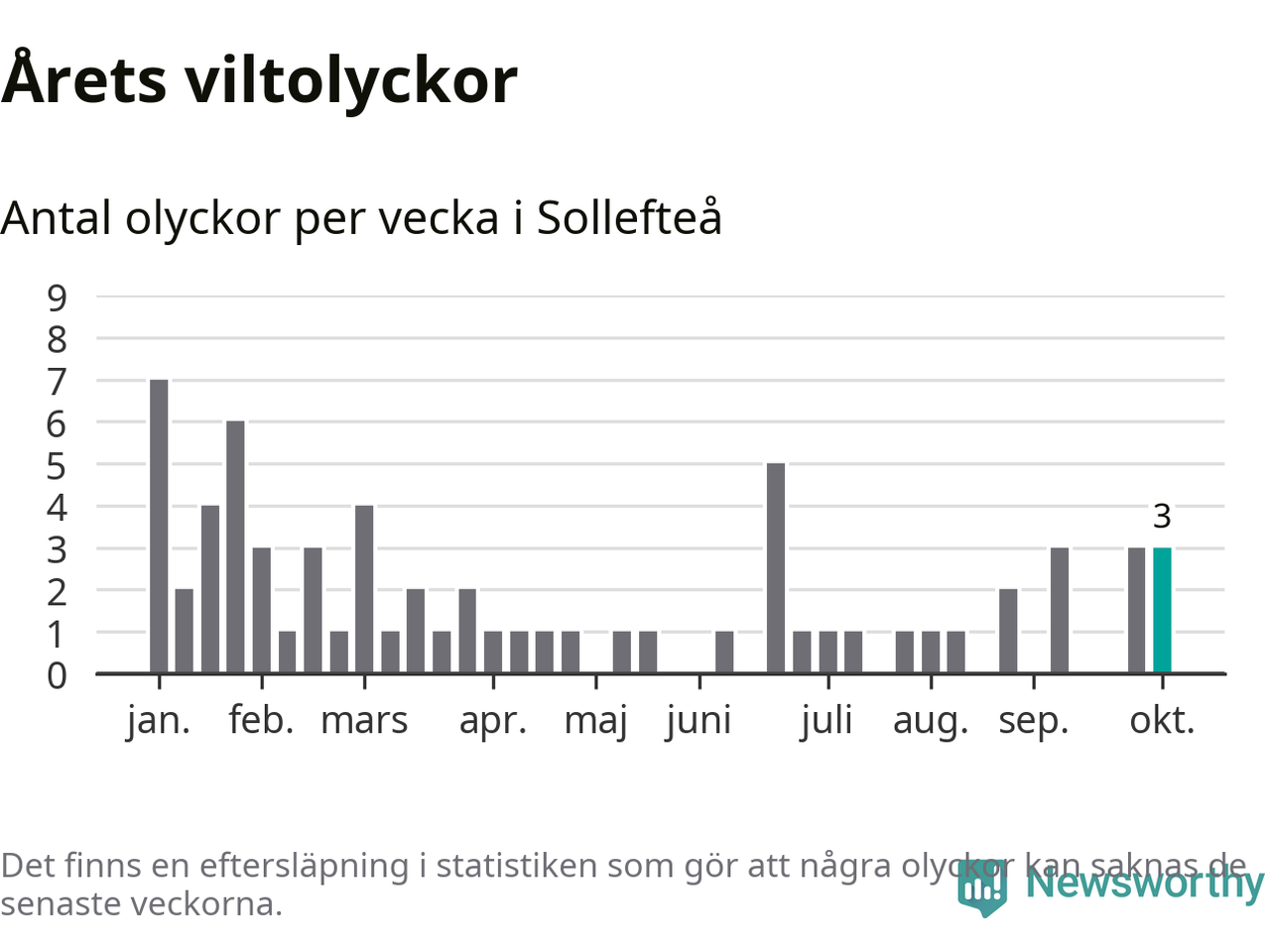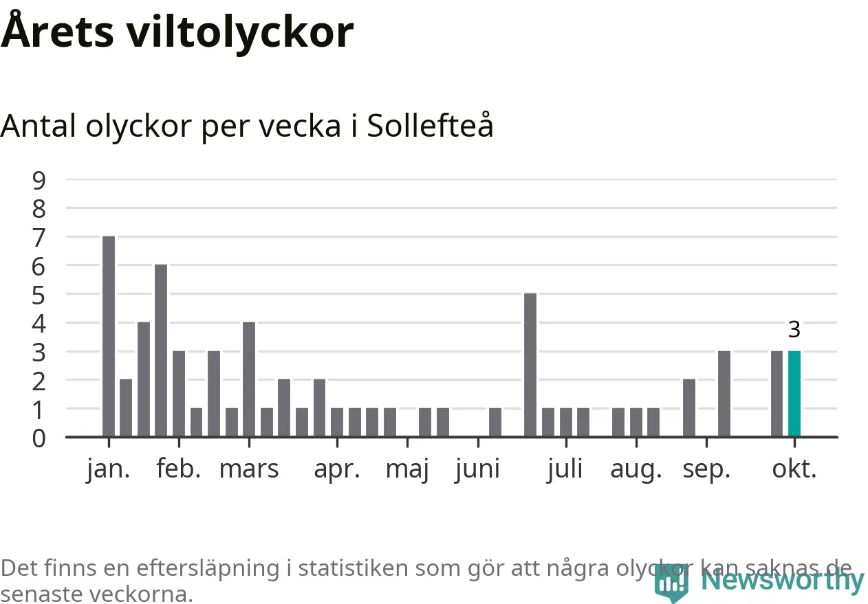 Hittills har tre viltolyckor rapporterats in i Sollefteå kommun från vecka 41. Se listan här.
