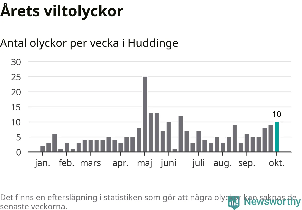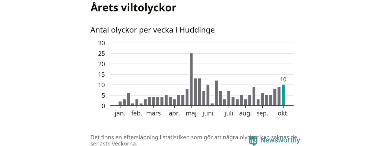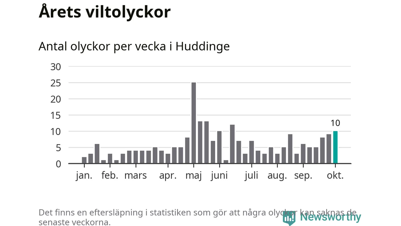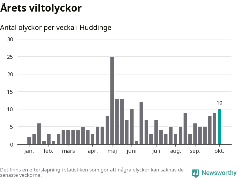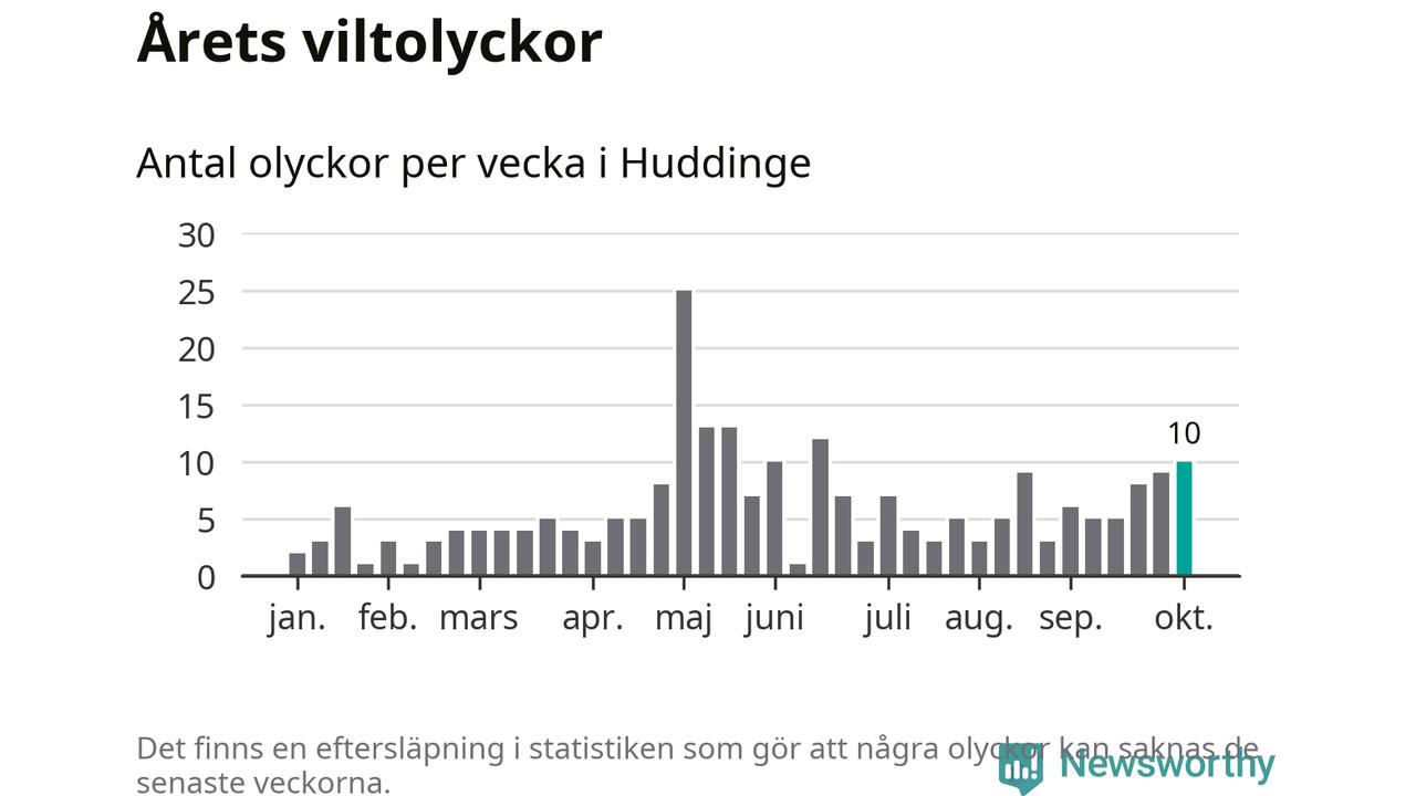 Hittills har tio viltolyckor rapporterats in i Huddinge kommun från vecka 41. Det är en av de högsta höstsiffrorna för en enskild vecka på över tio år.