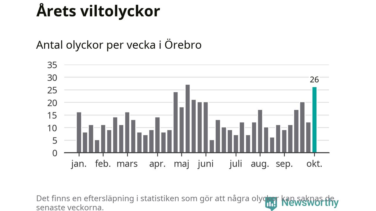 Hittills har 26 viltolyckor rapporterats in i Örebro kommun från vecka 41. Det är en av de högsta siffrorna för en enskild vecka på över tio år.