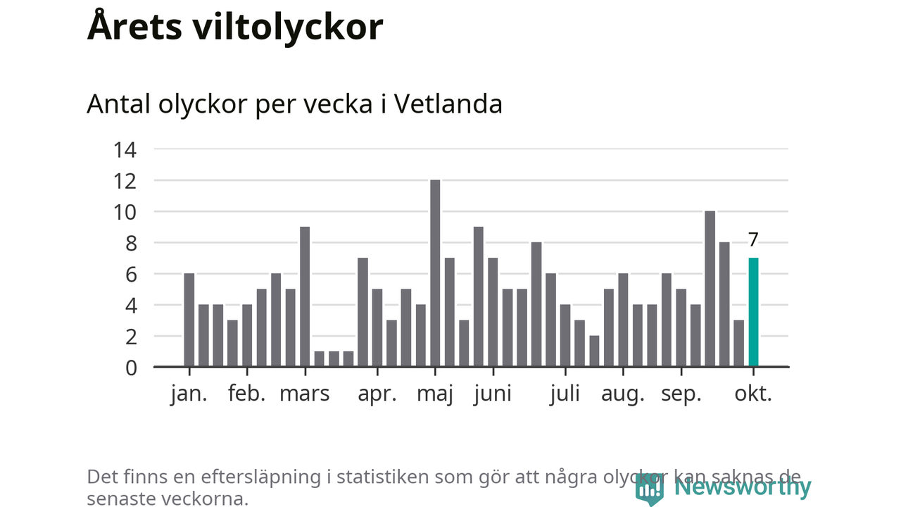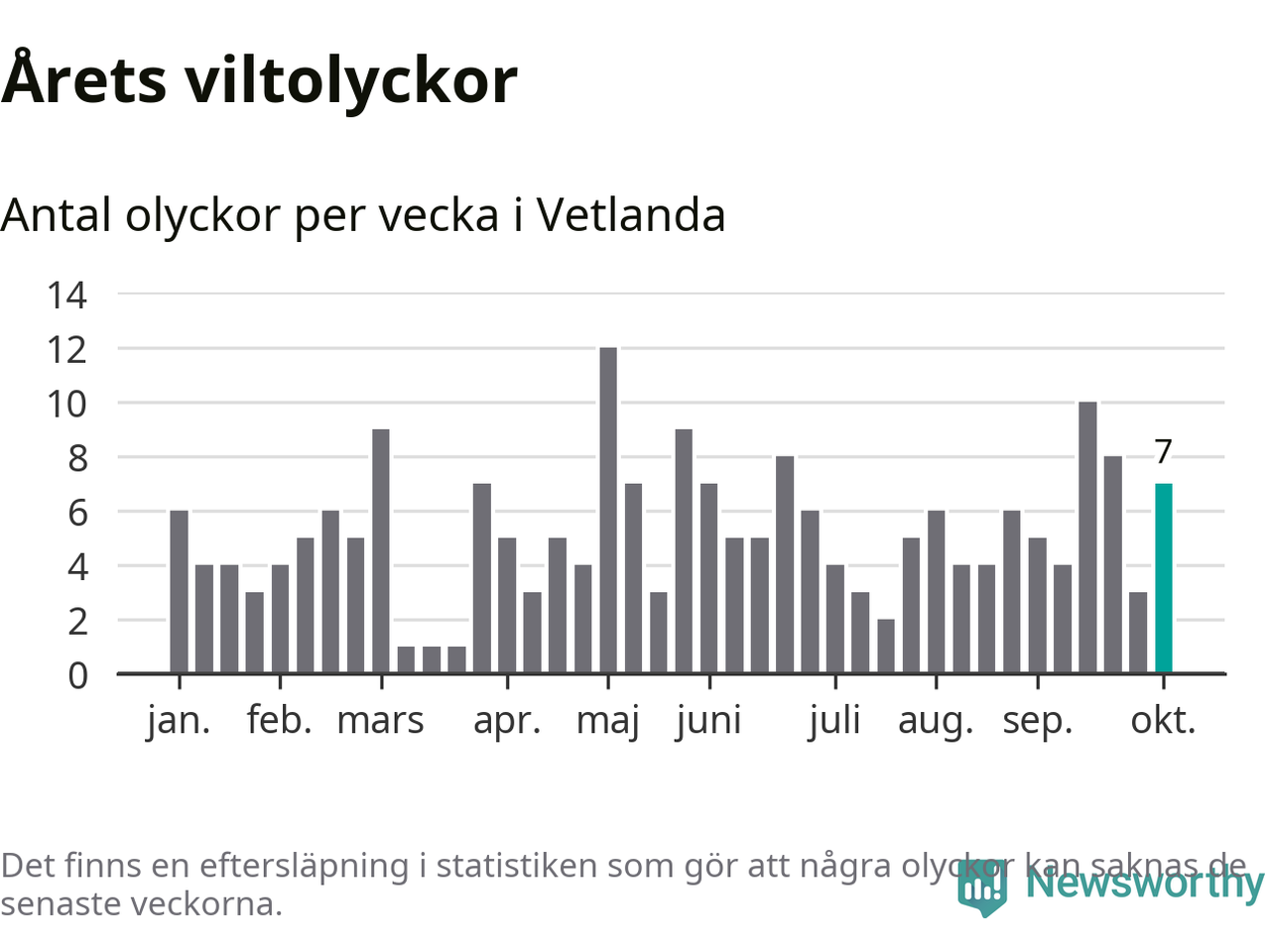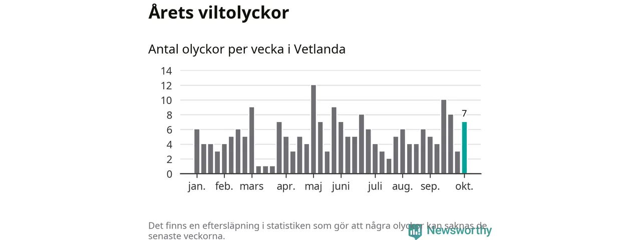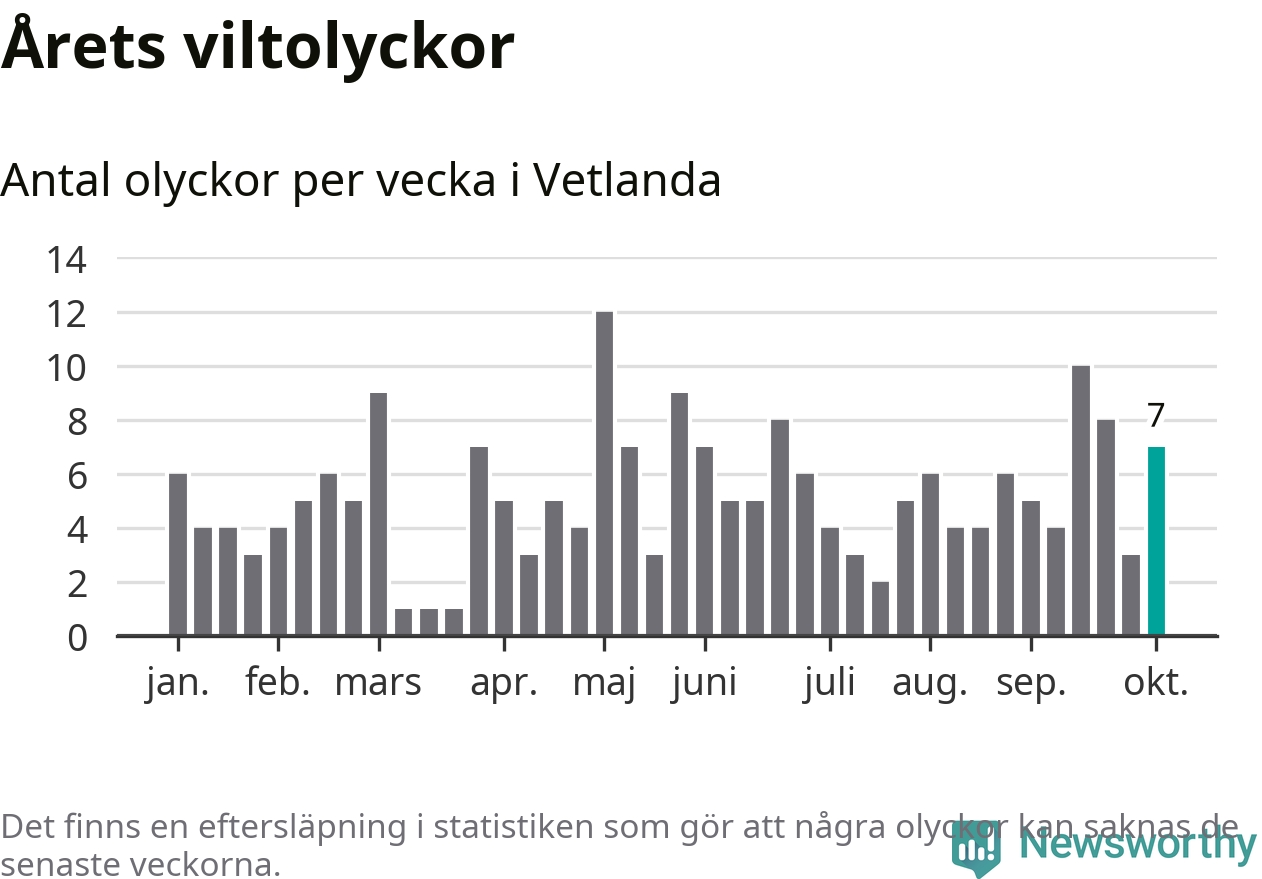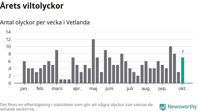 Hittills har sju viltolyckor rapporterats in i Vetlanda kommun från vecka 41. Se listan här.