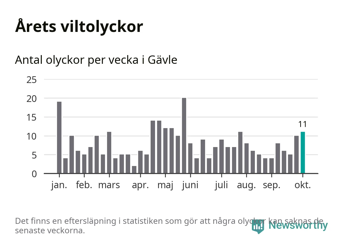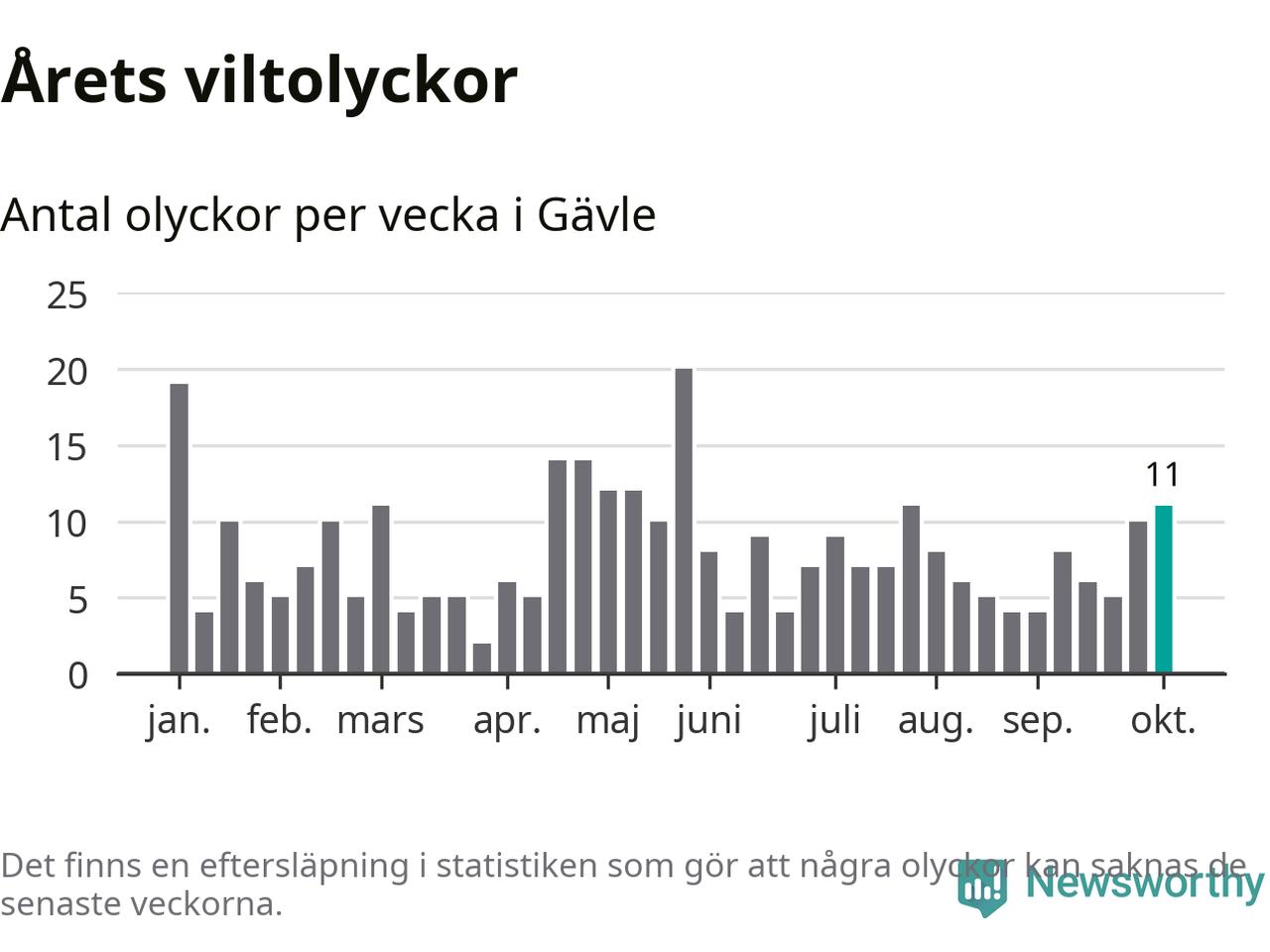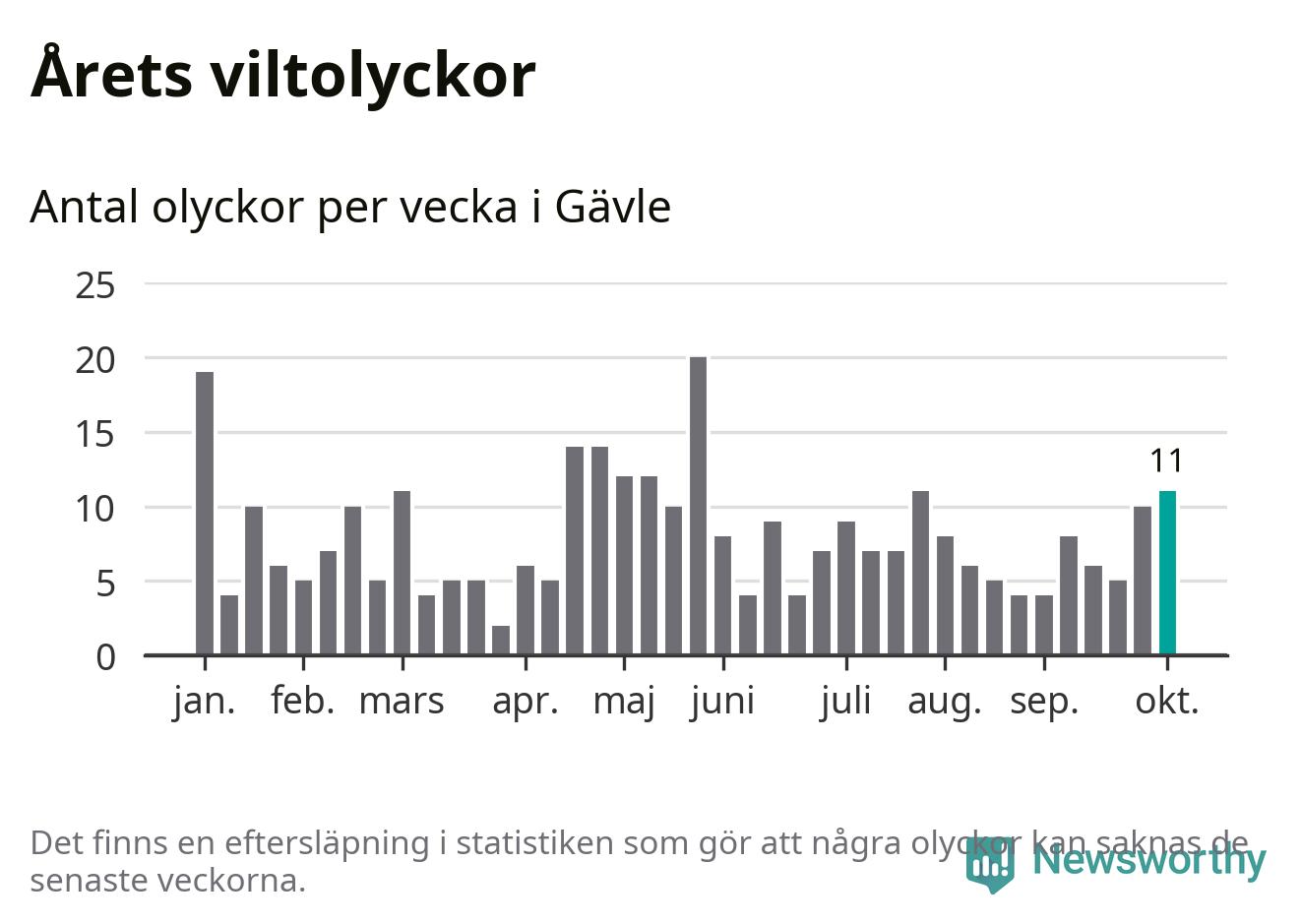 Hittills har elva viltolyckor rapporterats in i Gävle kommun från vecka 41. Se listan här.