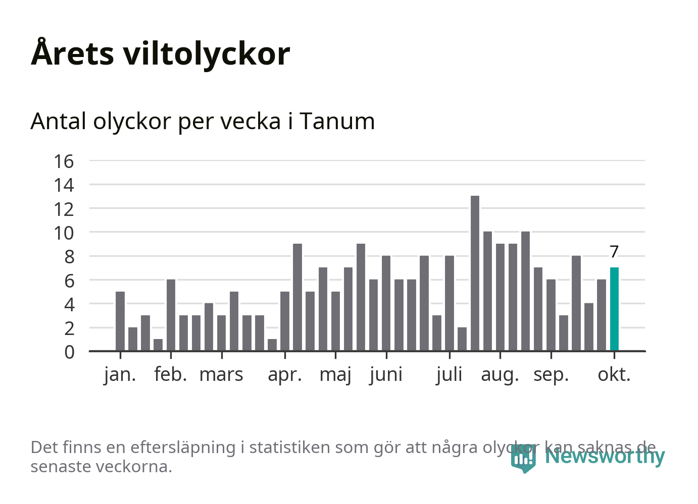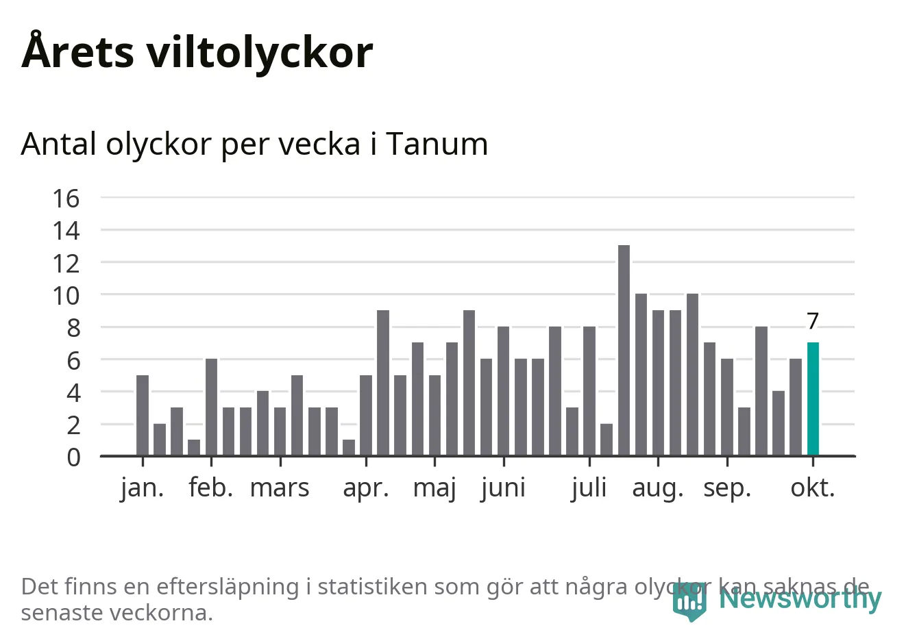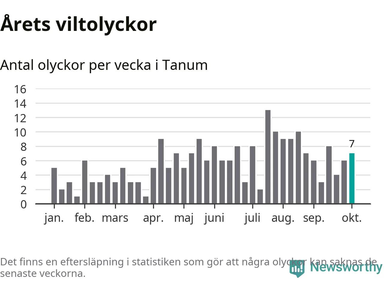Hittills har sju viltolyckor rapporterats in i Tanums kommun från vecka 41. Se listan här.