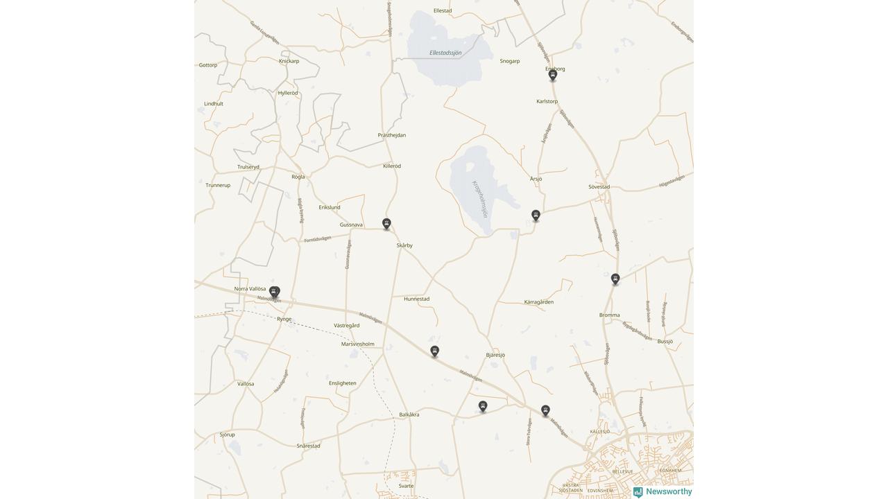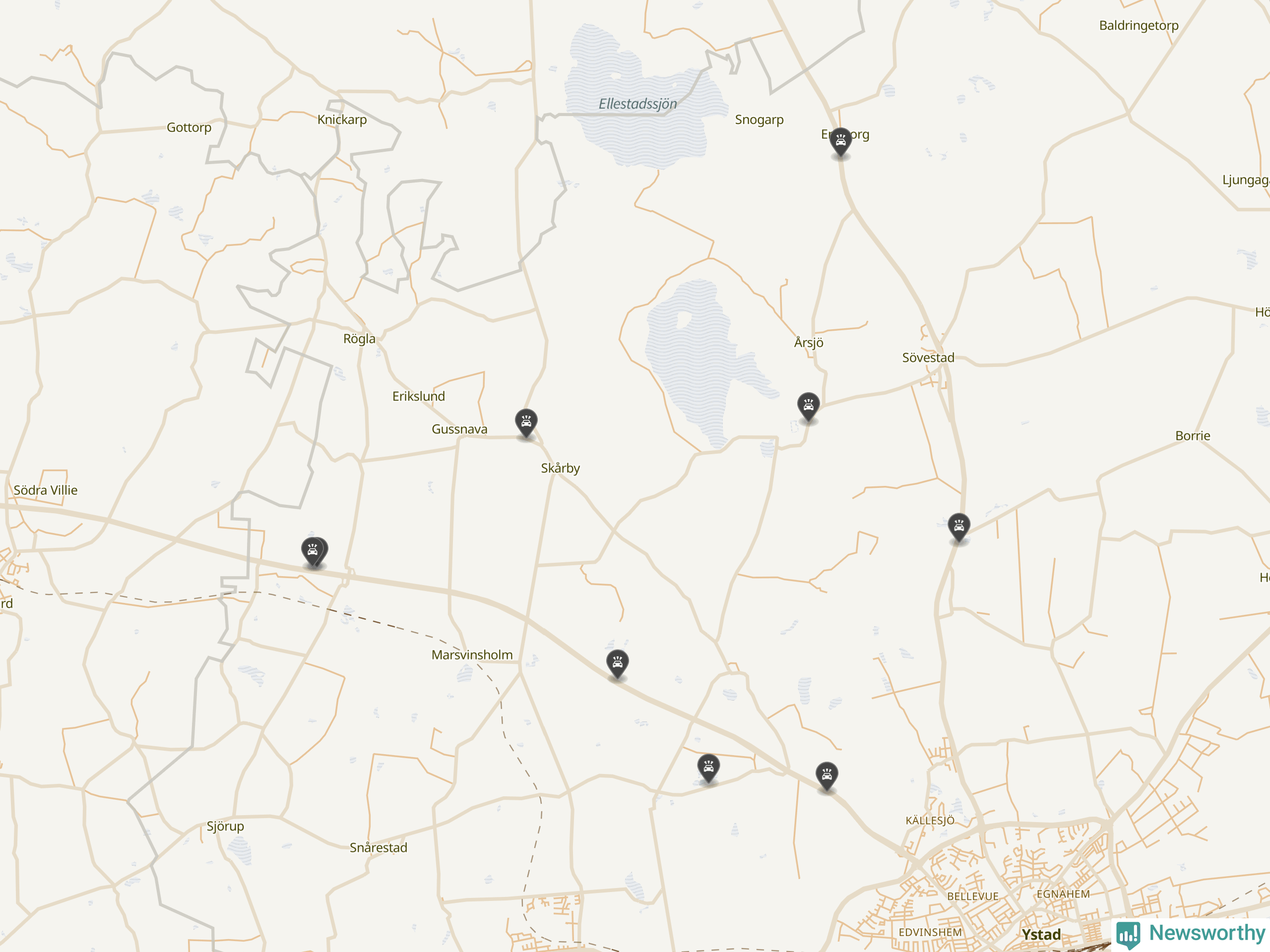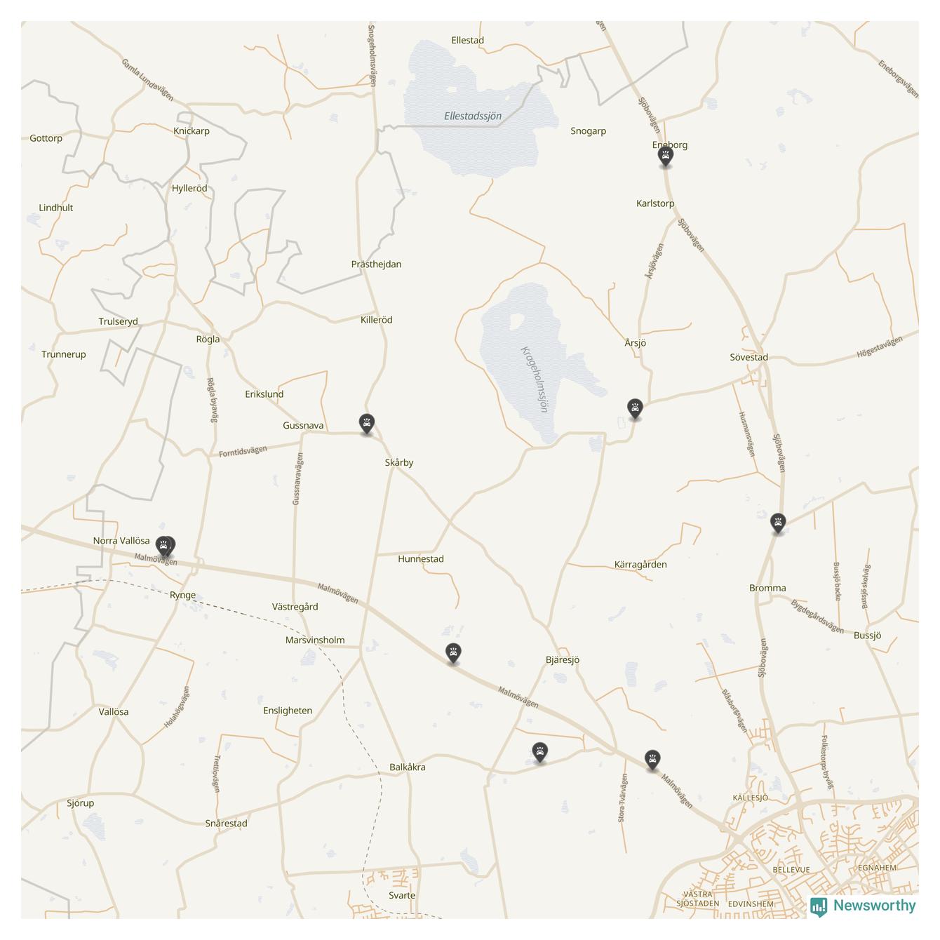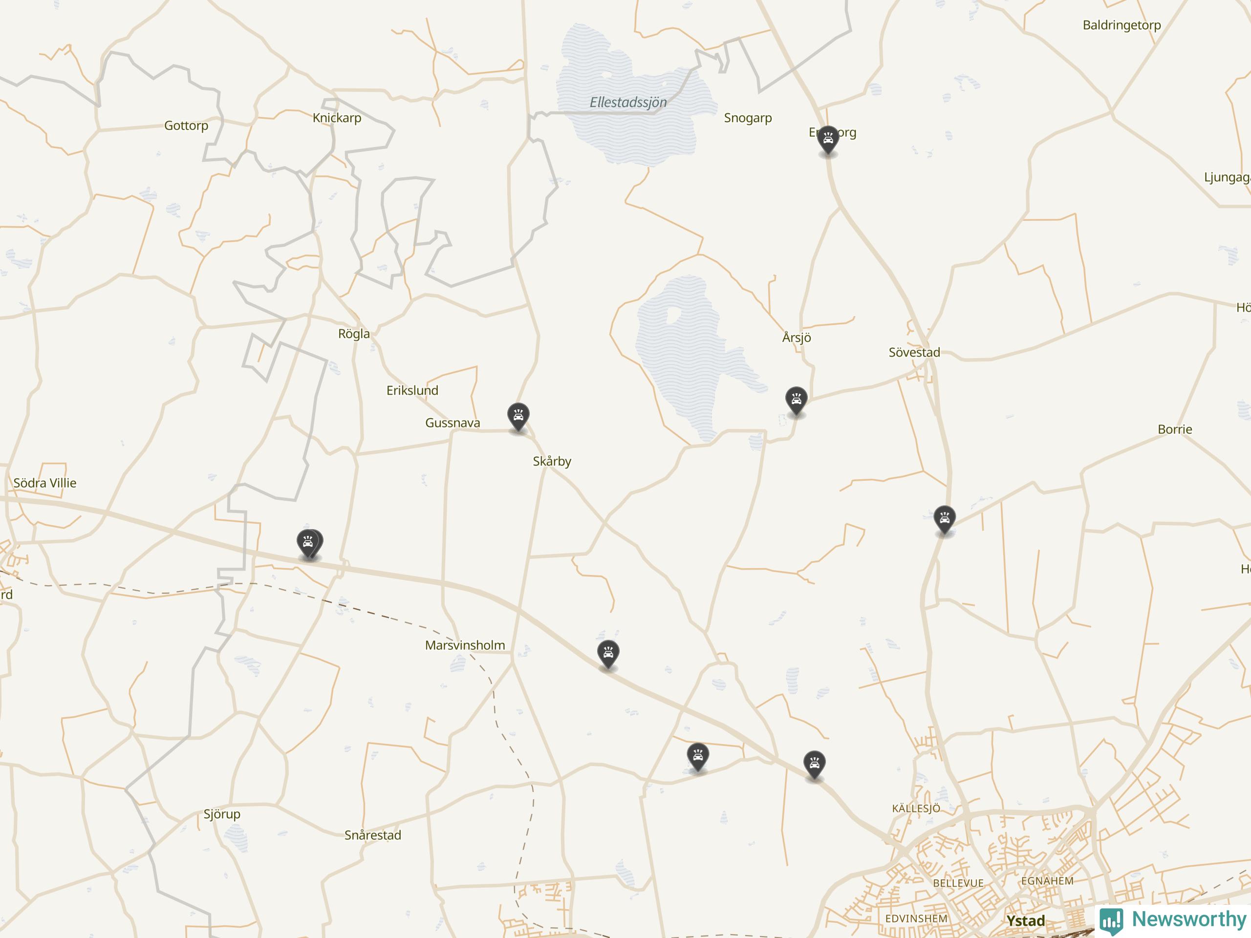 Karta över viltolyckor i Ystads kommun
