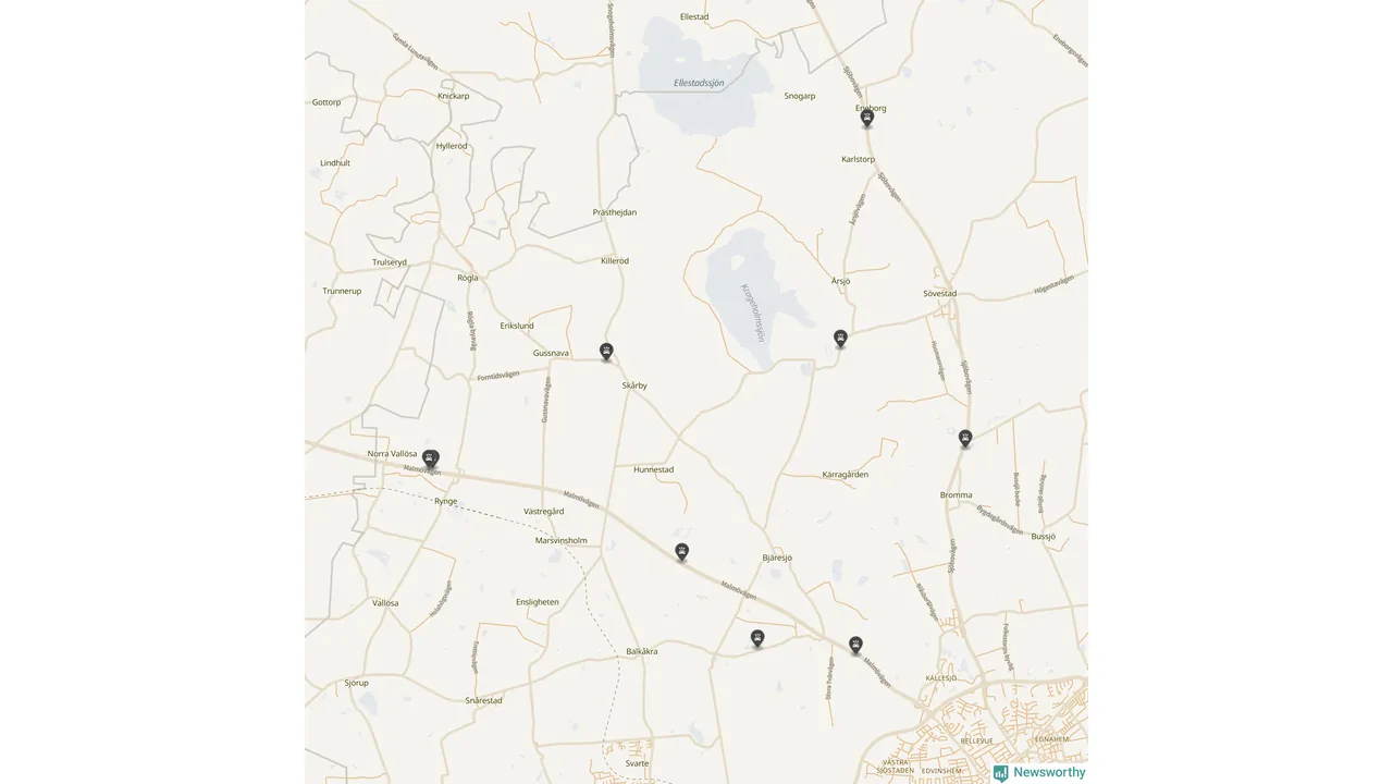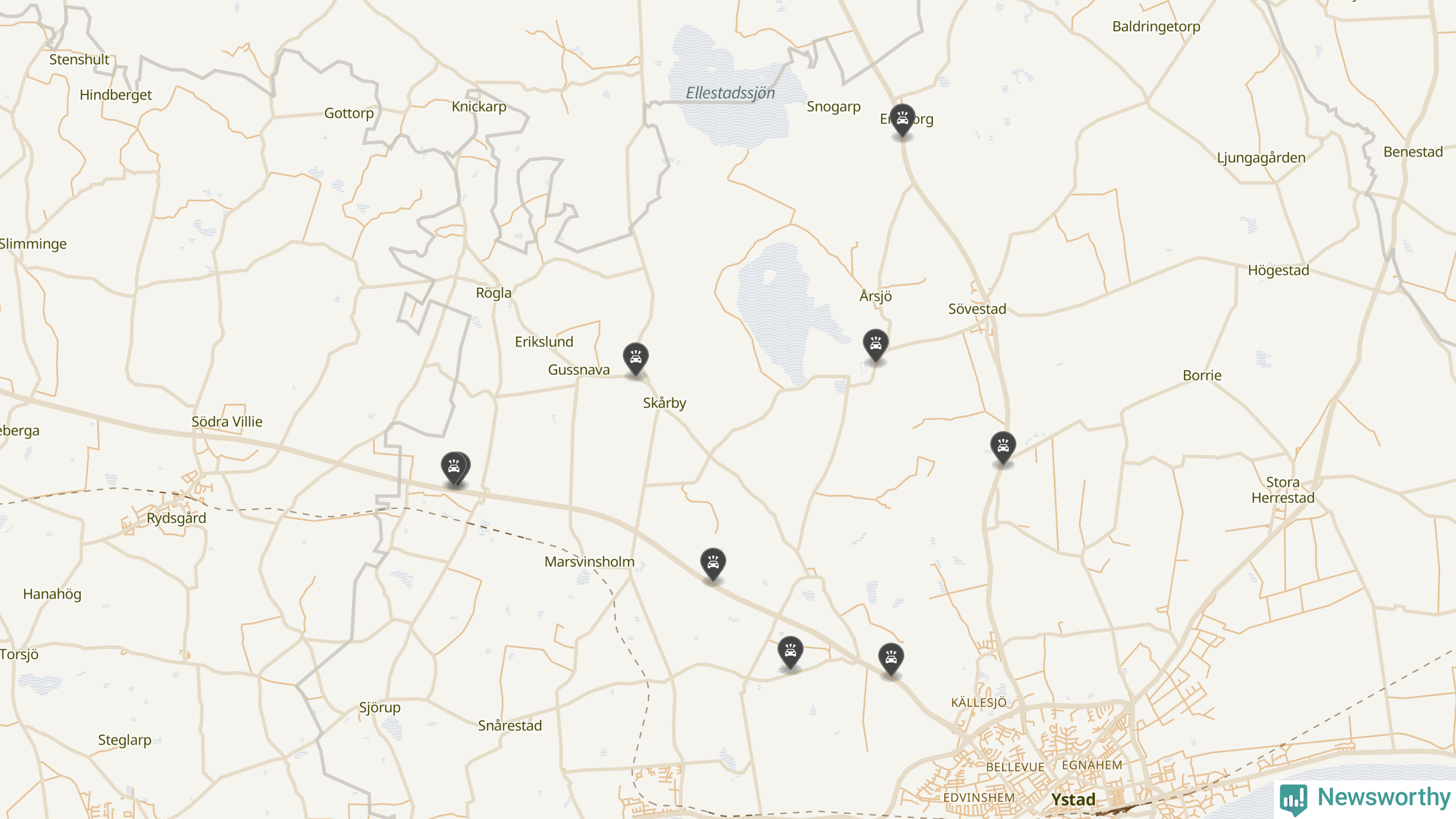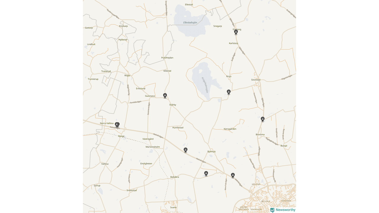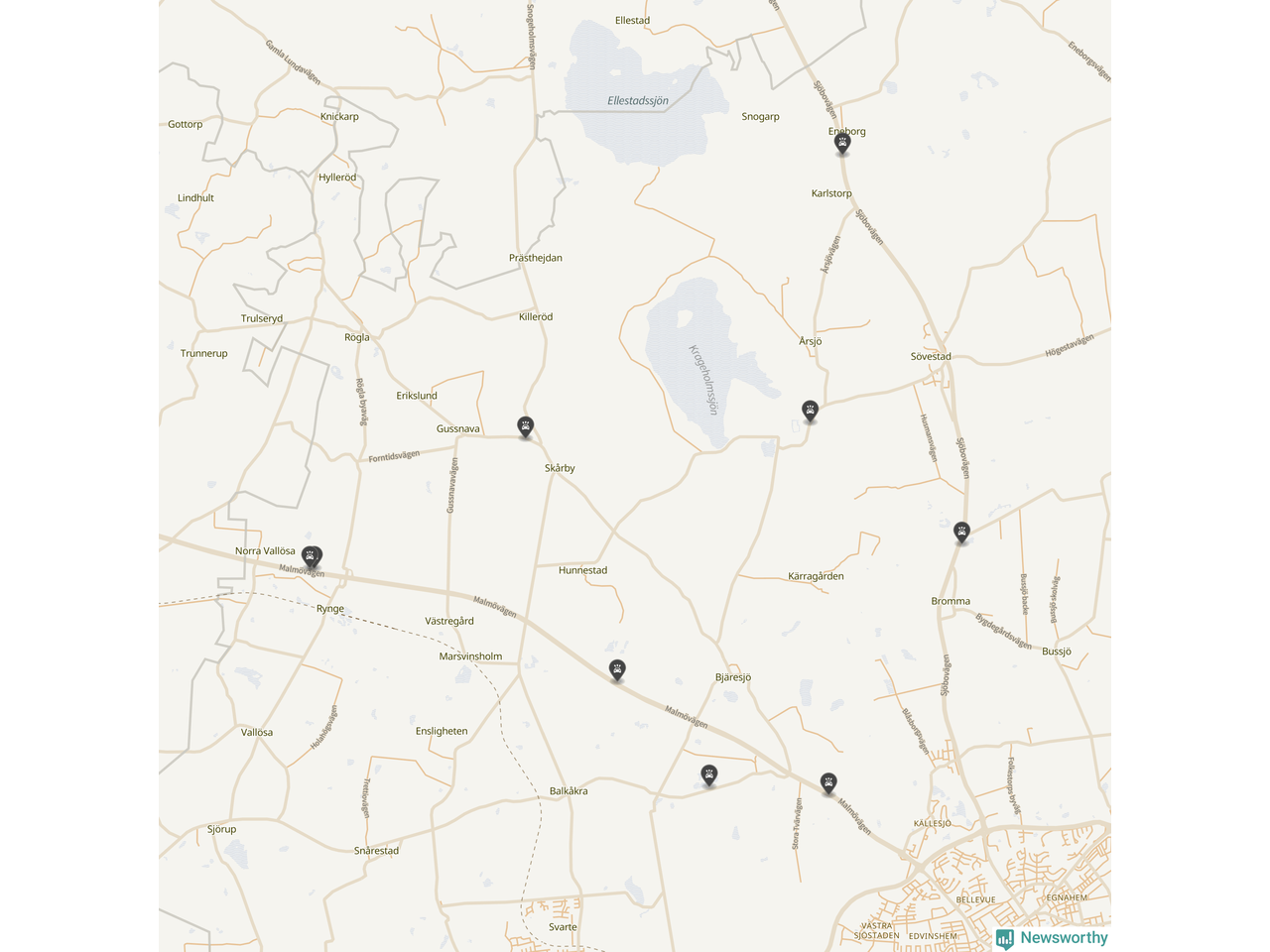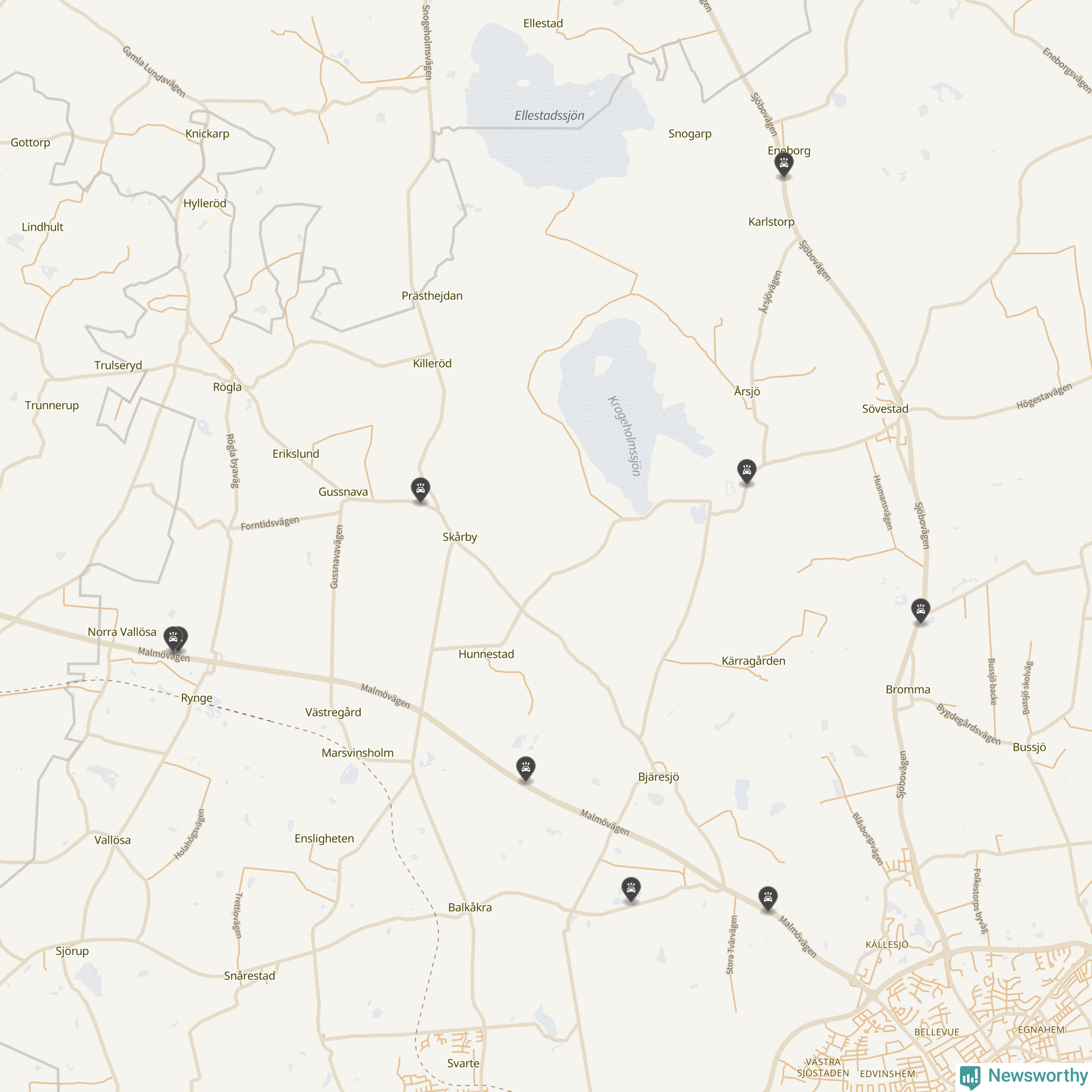 Karta över viltolyckor i Ystads kommun