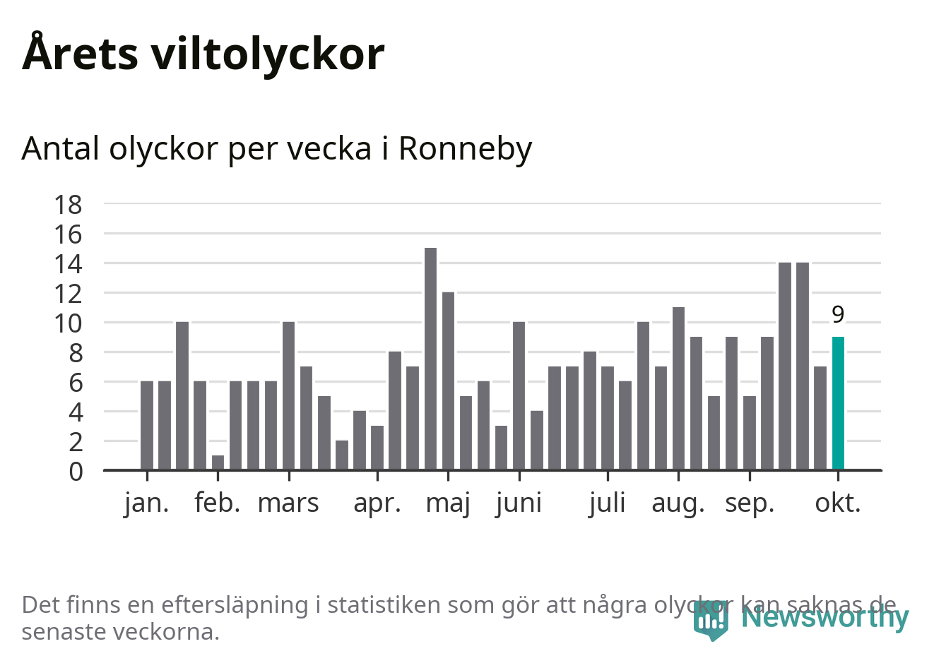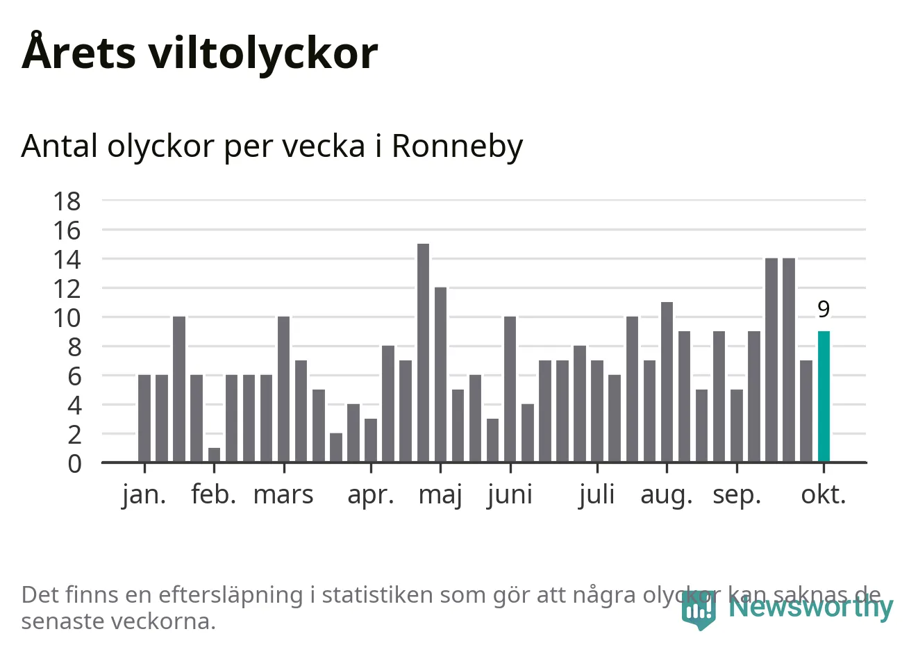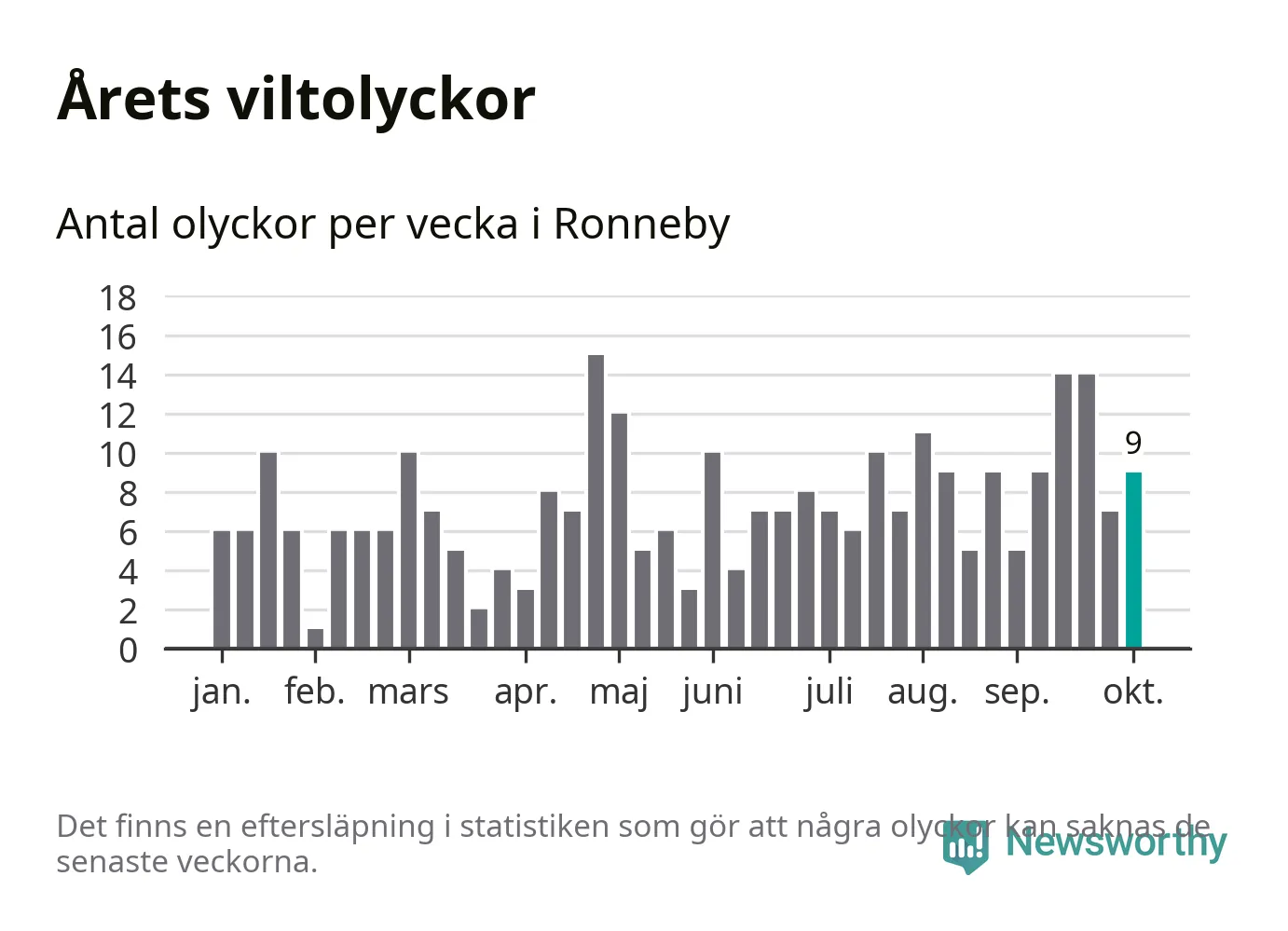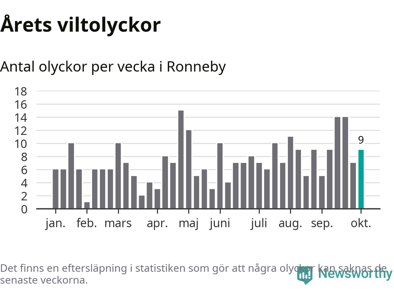 Hittills har nio viltolyckor rapporterats in i Ronneby kommun från vecka 41. Se listan här.