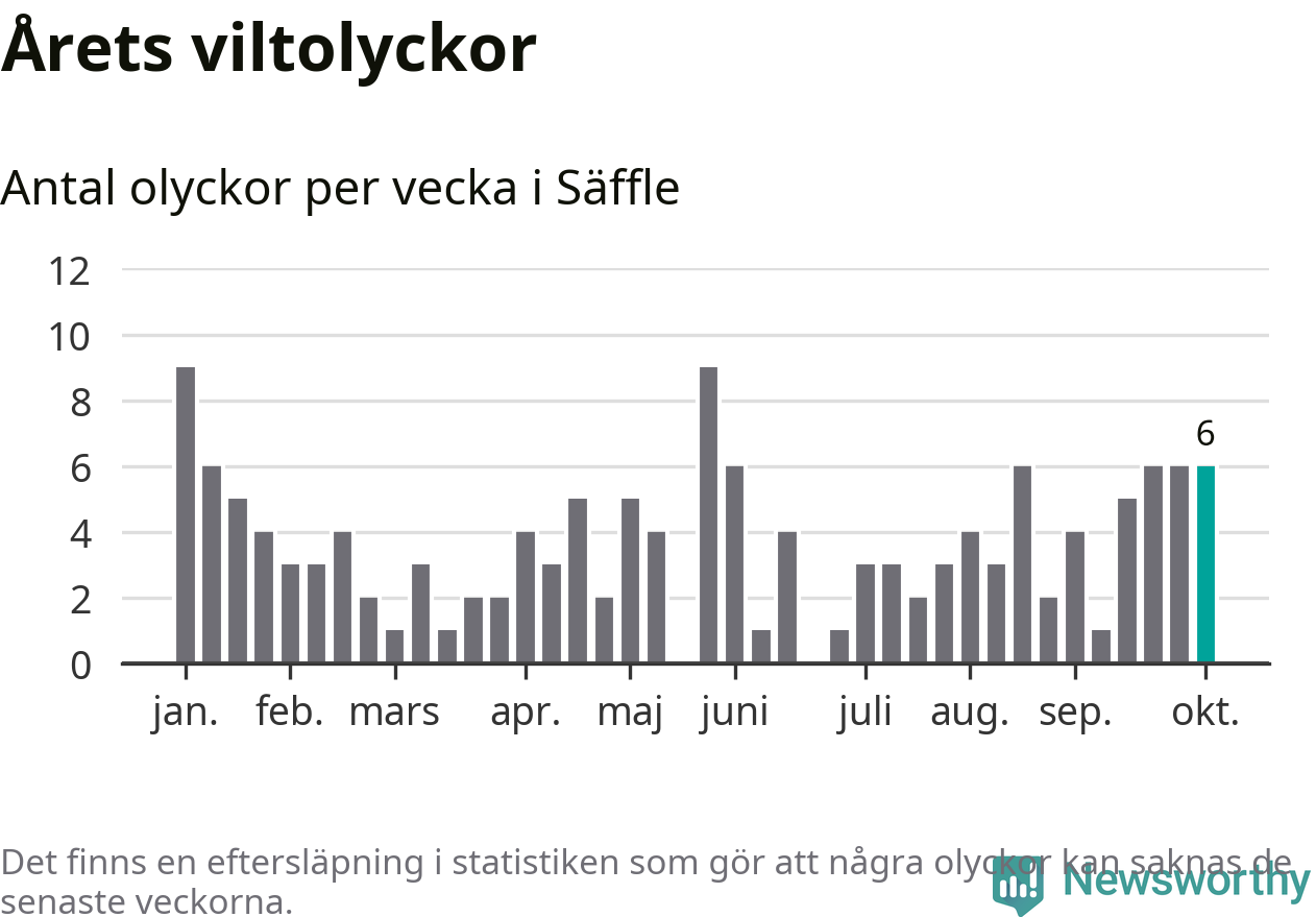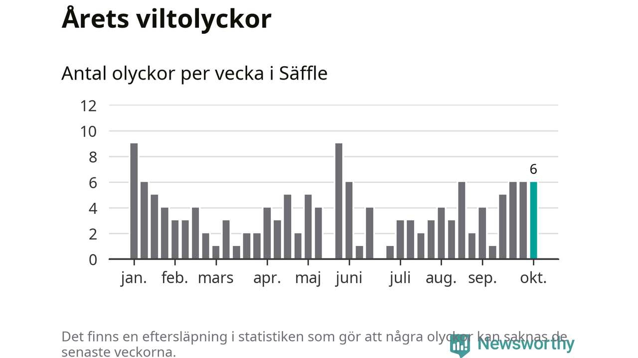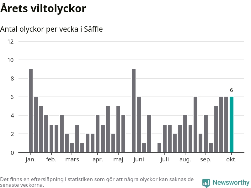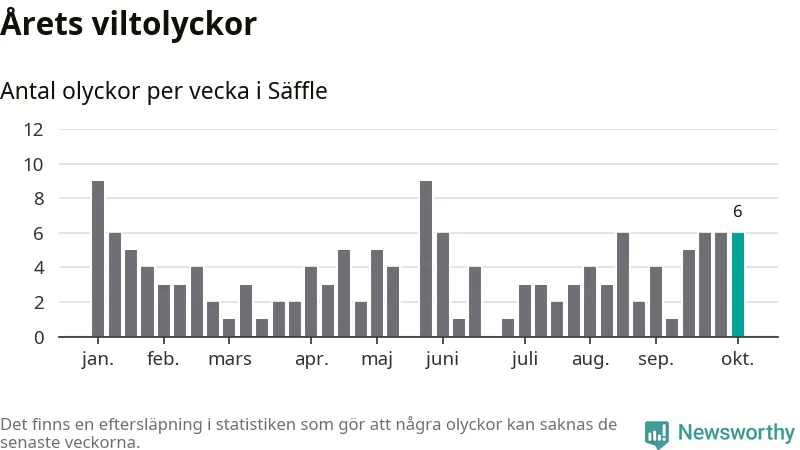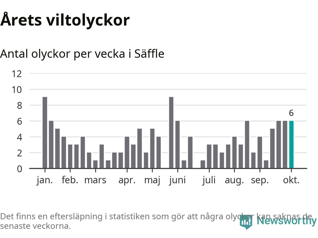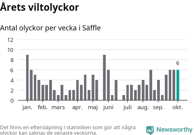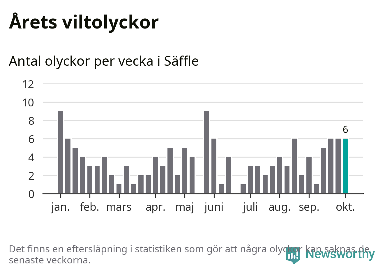 Hittills har sex viltolyckor rapporterats in i Säffle kommun från vecka 41. Se listan här.