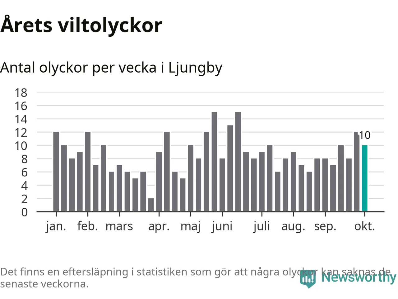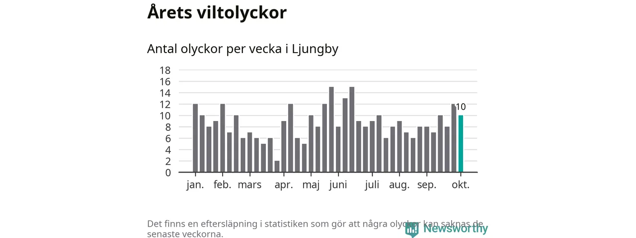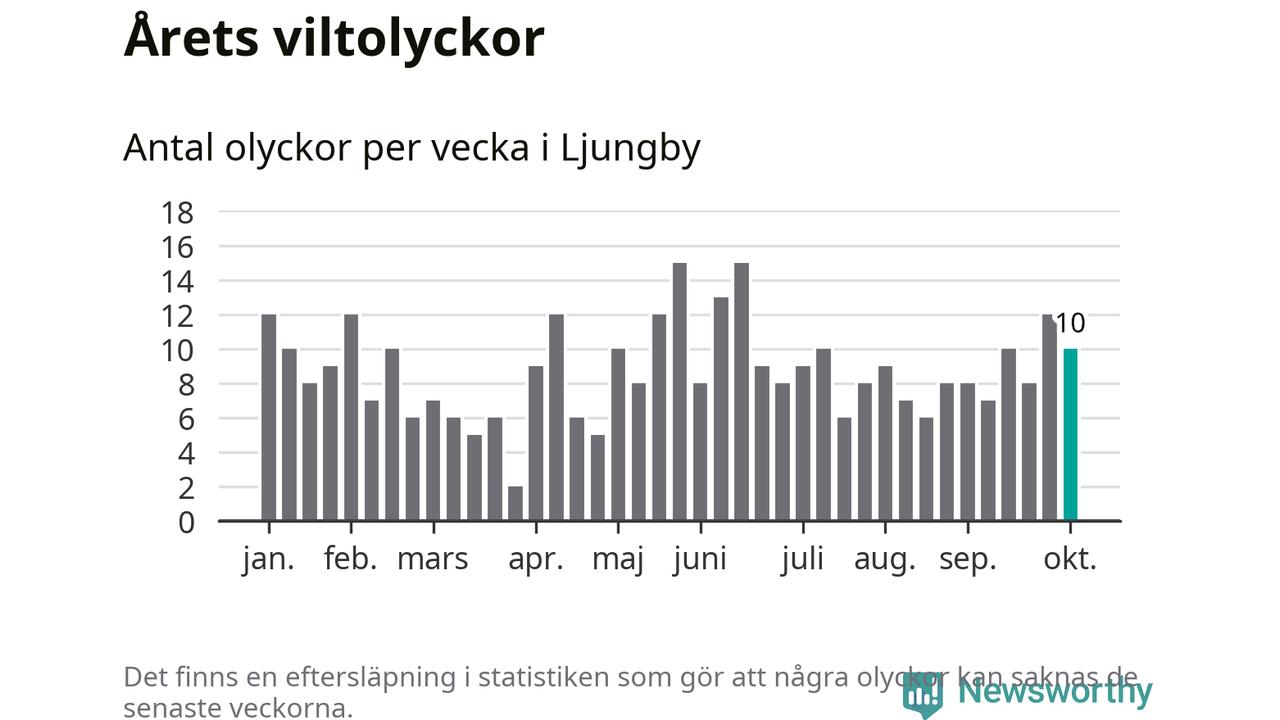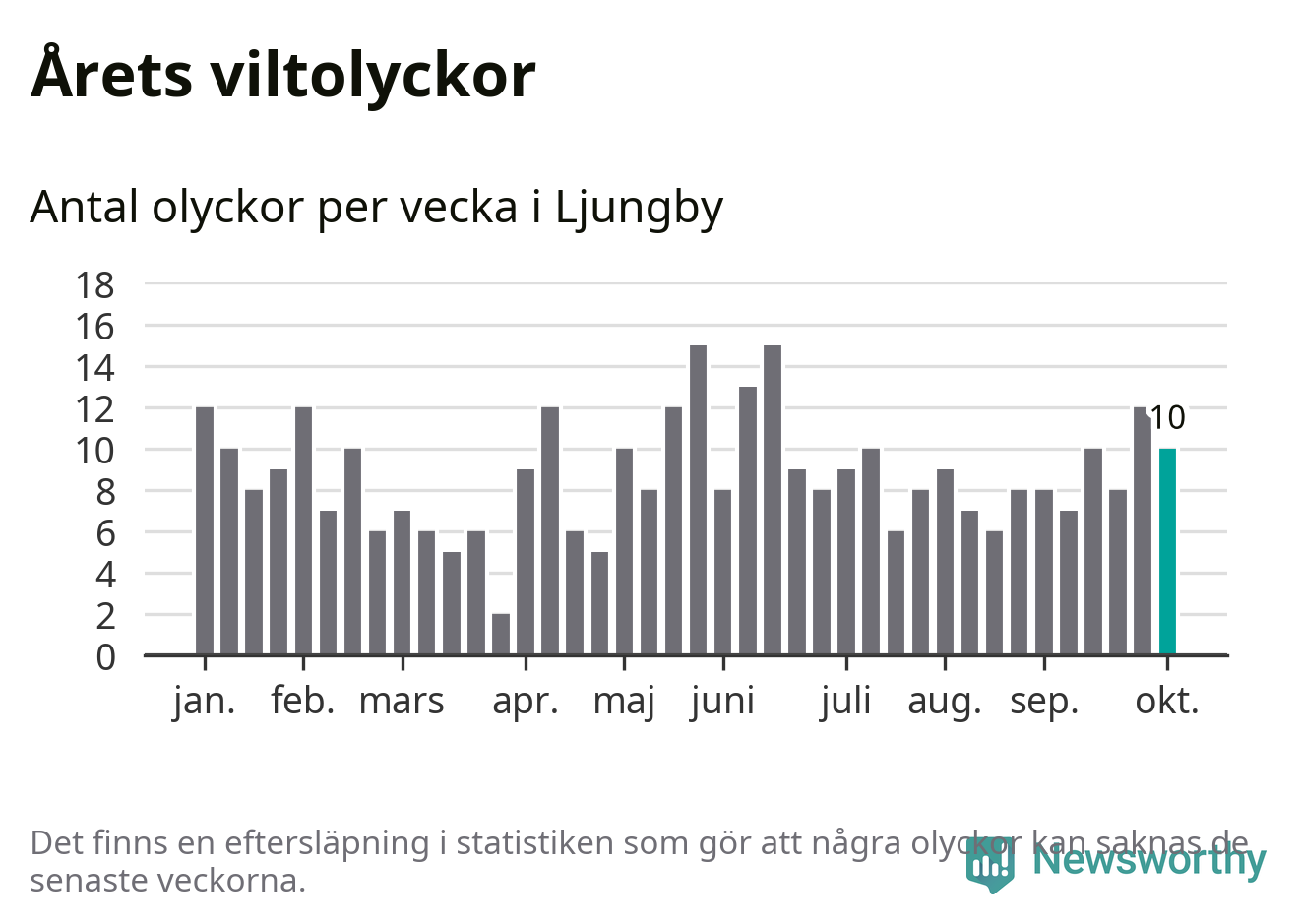 Hittills har tio viltolyckor rapporterats in i Ljungby kommun från vecka 41. Se listan här.
