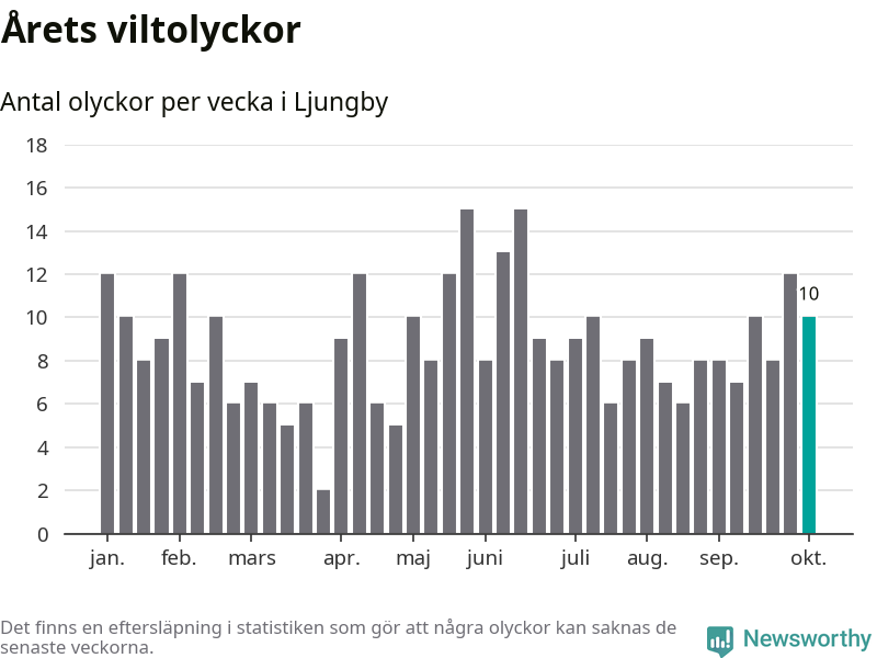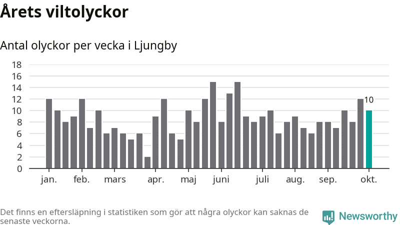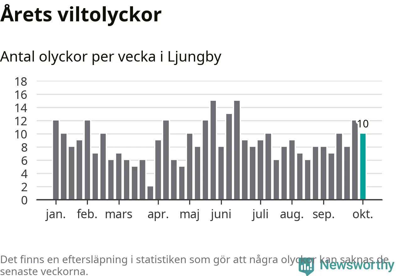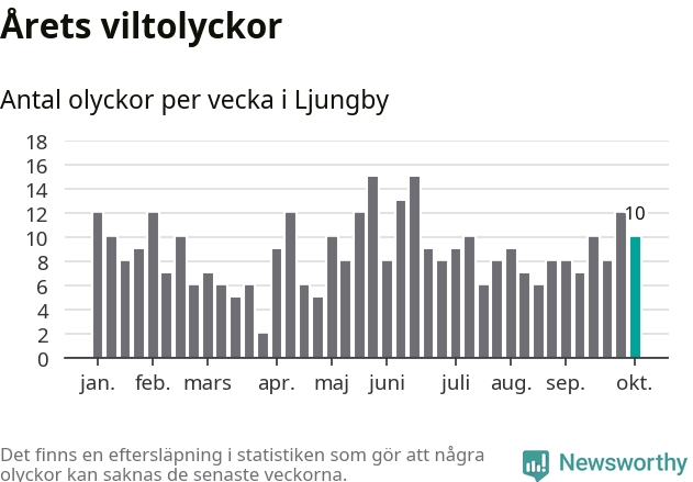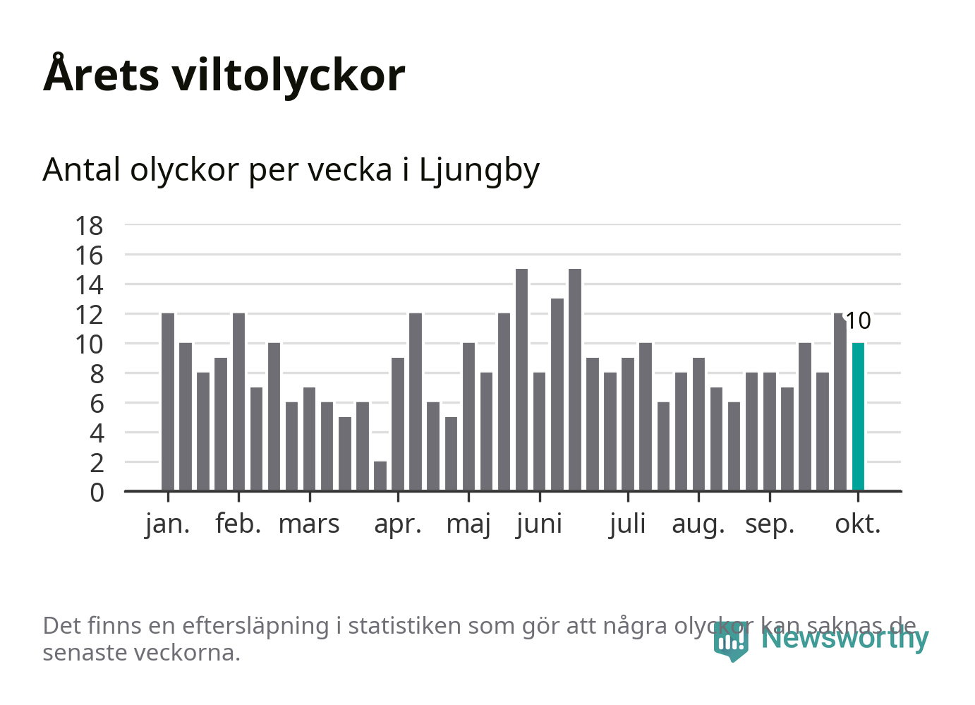 Hittills har tio viltolyckor rapporterats in i Ljungby kommun från vecka 41. Se listan här.