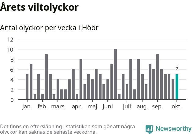Hittills har fem viltolyckor rapporterats in i Höörs kommun från vecka 41. Se listan här.