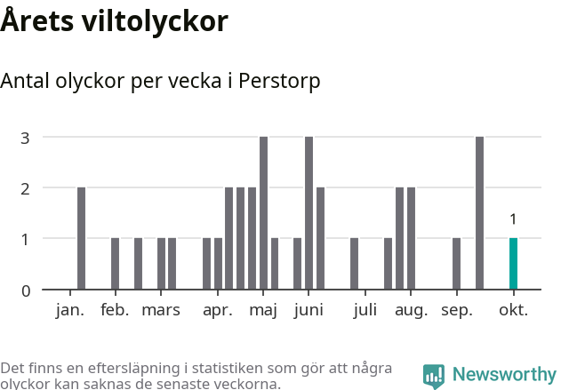 Från förra veckan (vecka 41) har hittills en viltolycka rapporterats in i Perstorps kommun.