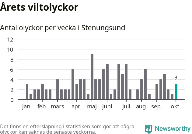 Hittills har tre viltolyckor rapporterats in i Stenungsunds kommun från vecka 41. Se listan här.