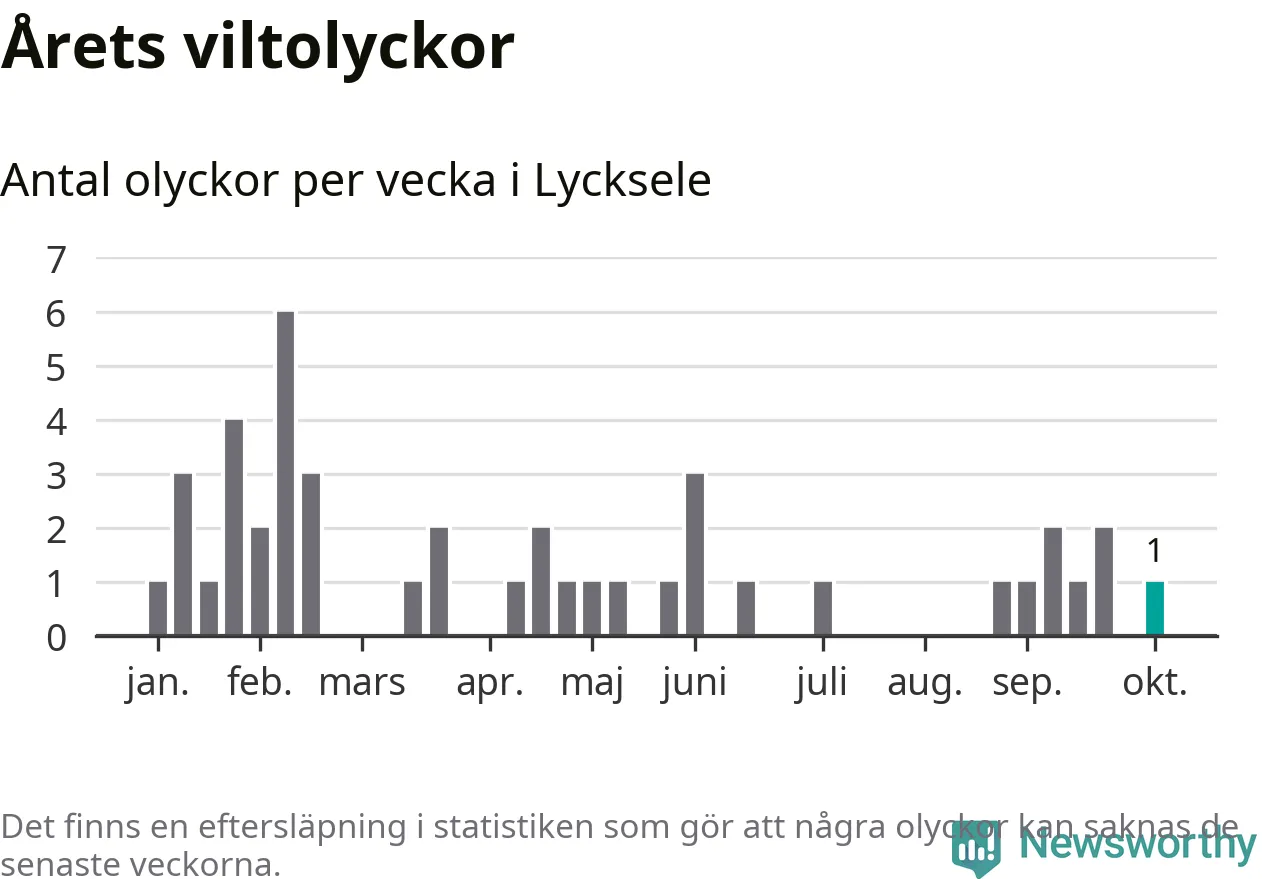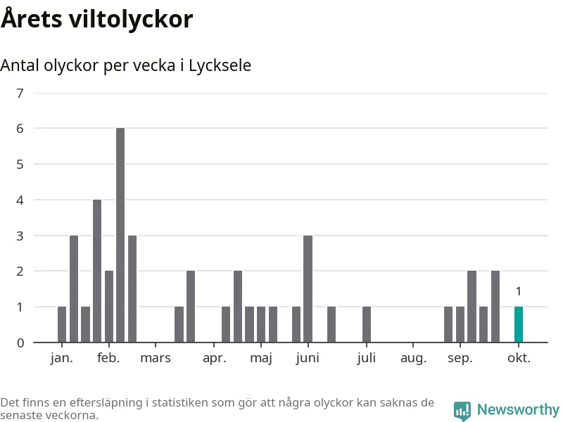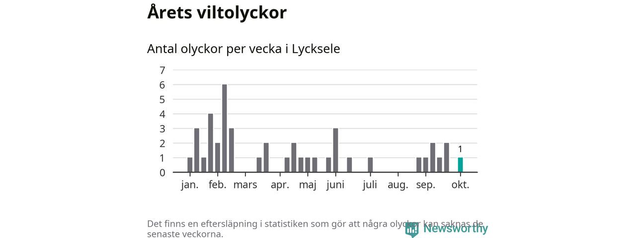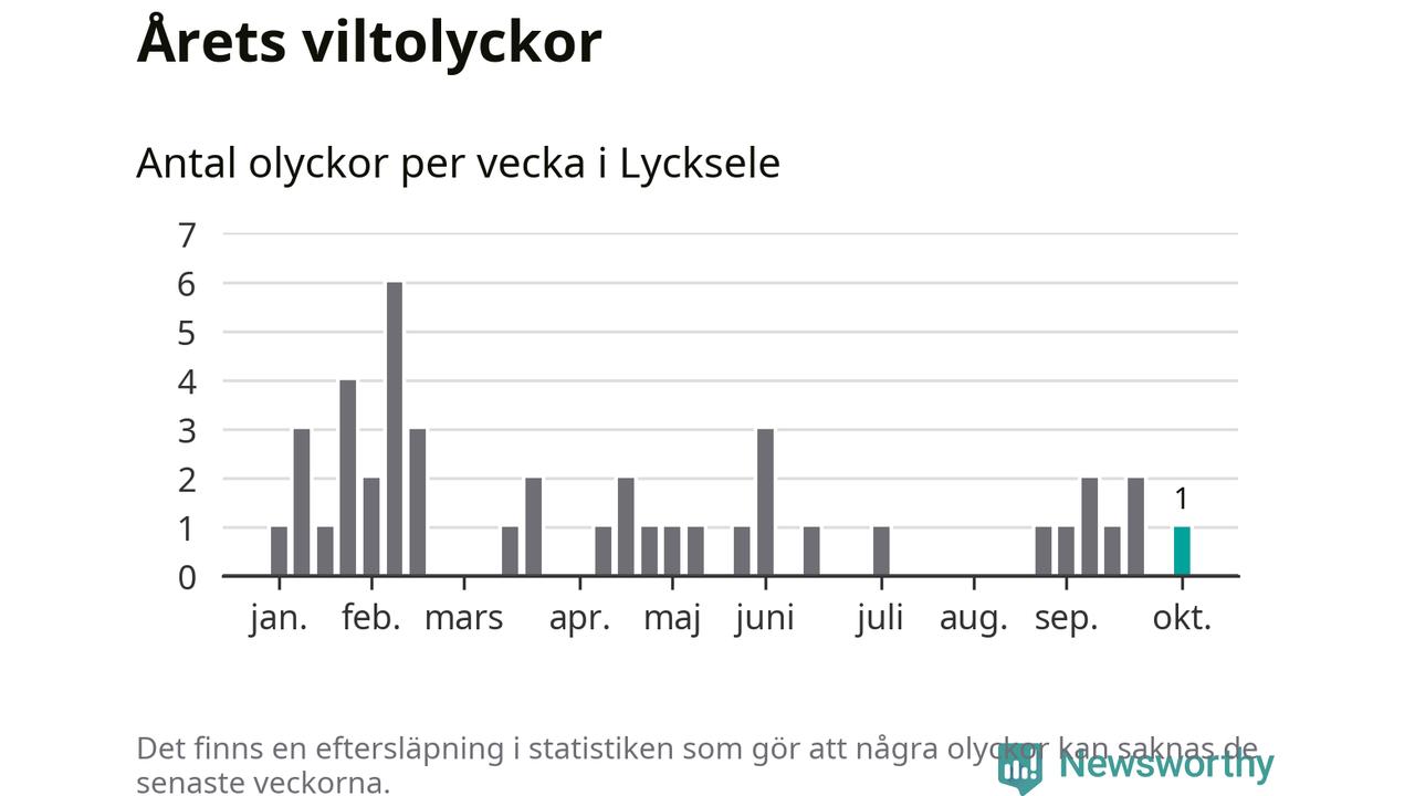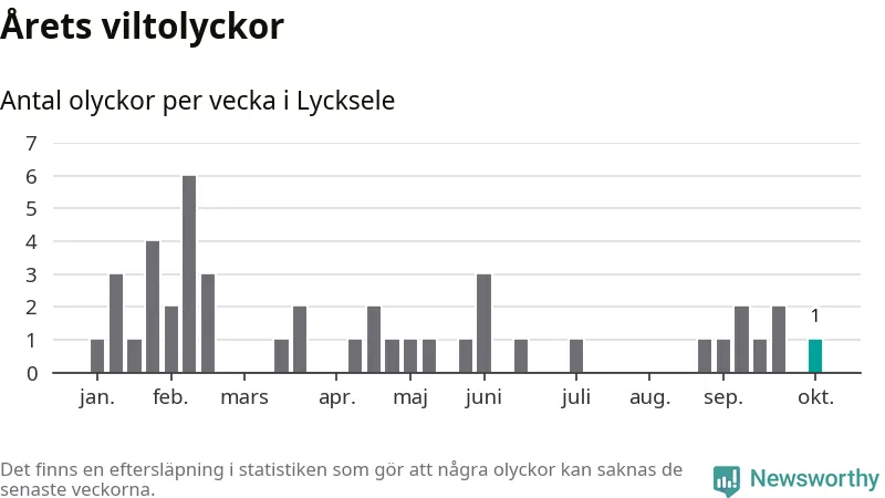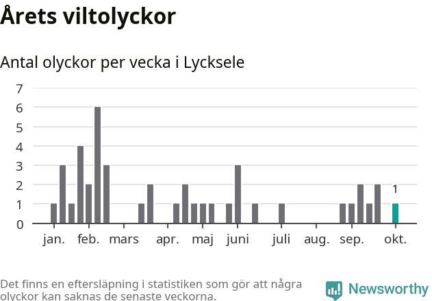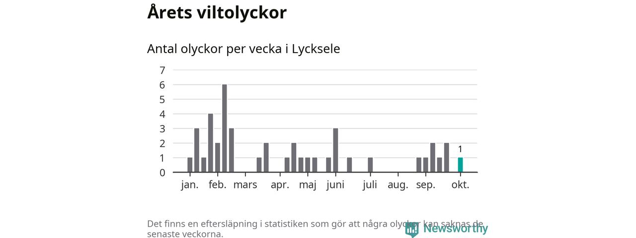 Från förra veckan (vecka 41) har hittills en viltolycka rapporterats in i Lycksele kommun.