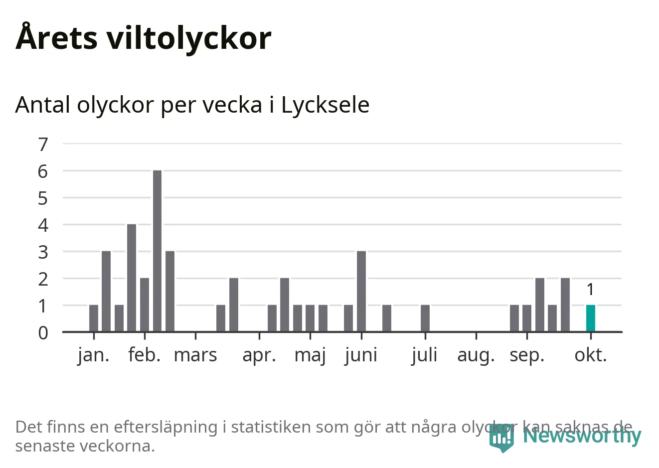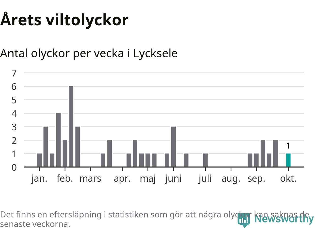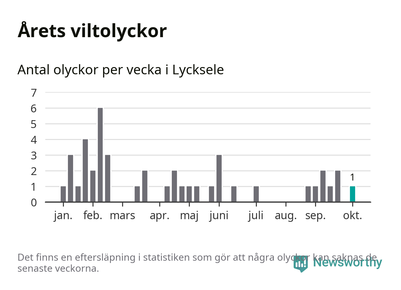 Från förra veckan (vecka 41) har hittills en viltolycka rapporterats in i Lycksele kommun.