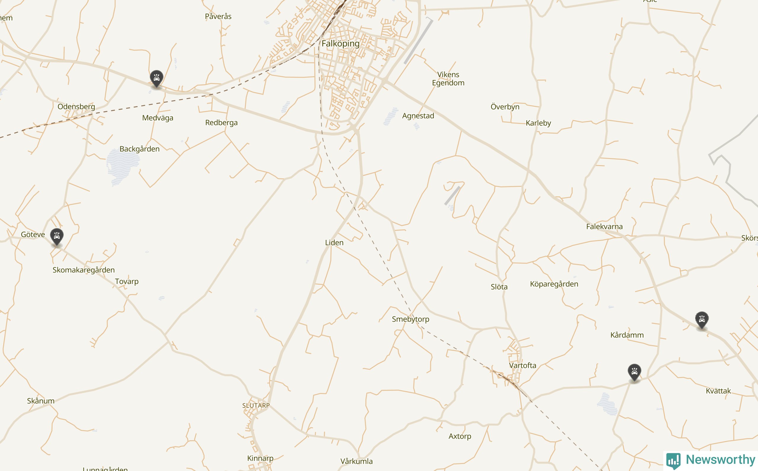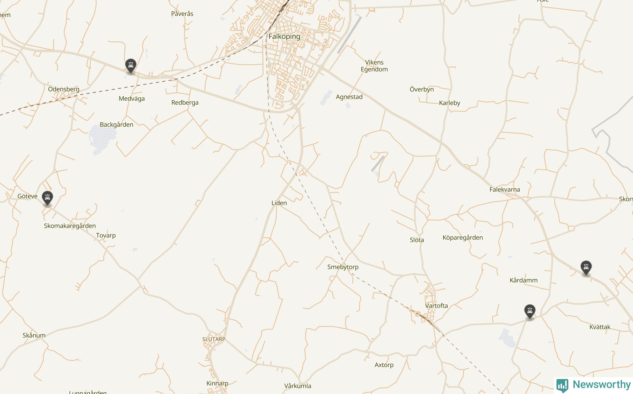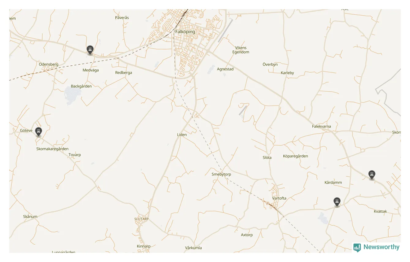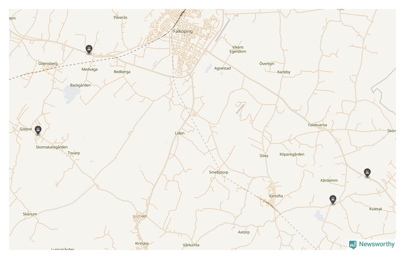 Här inträffade viltolyckorna i Falköping förra veckan