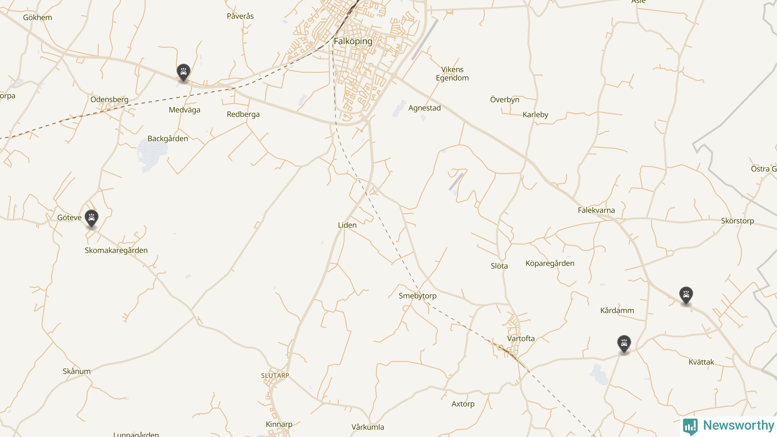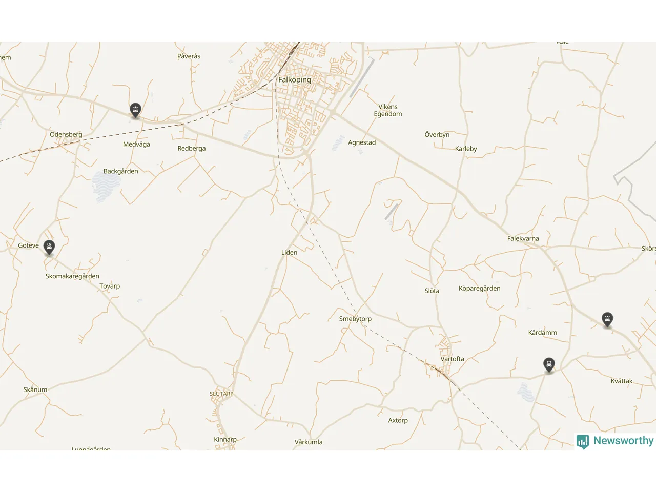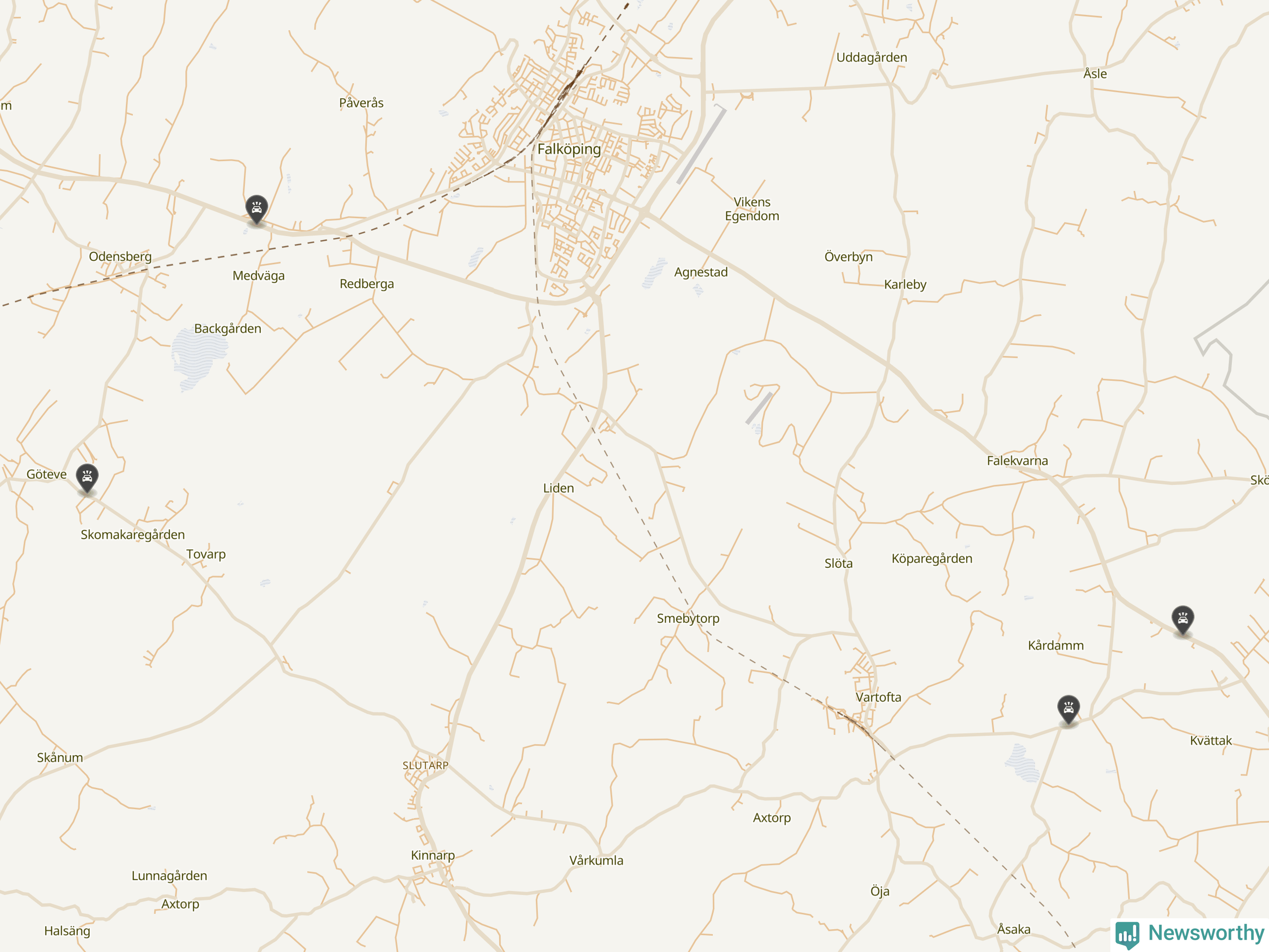 Här inträffade viltolyckorna i Falköping förra veckan