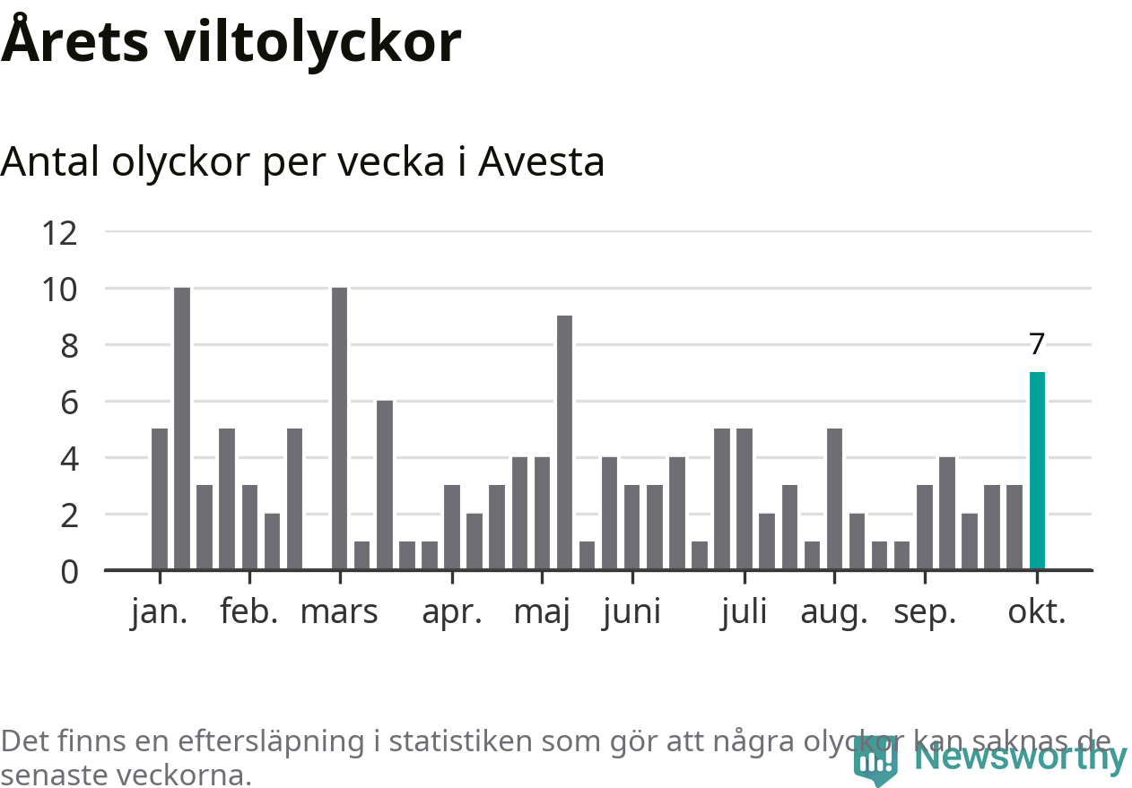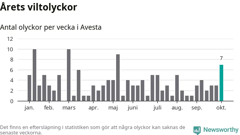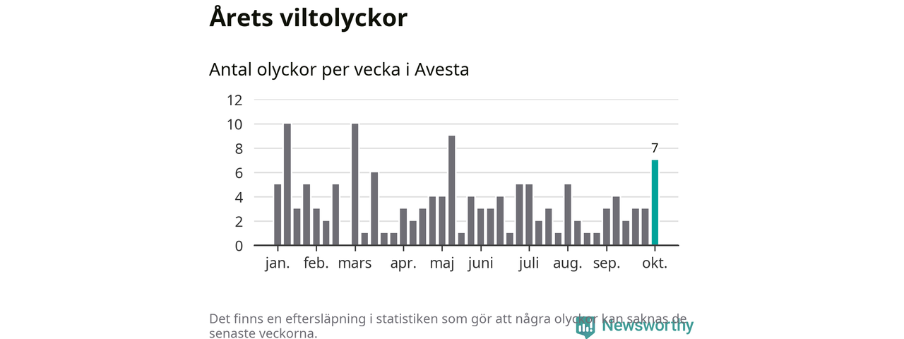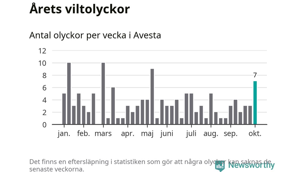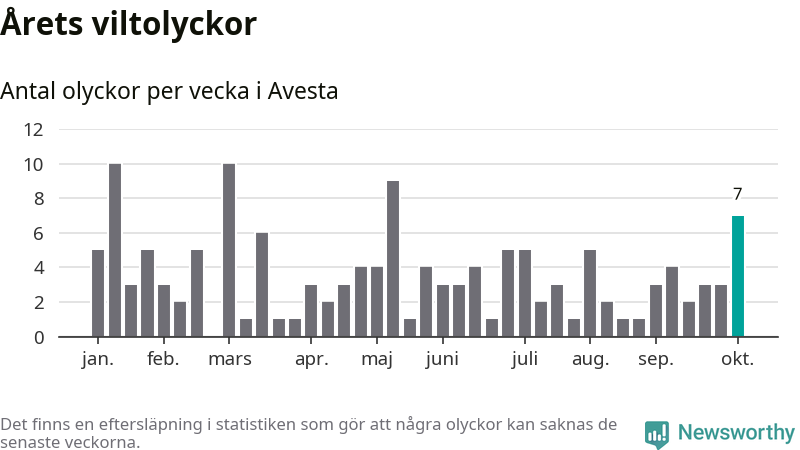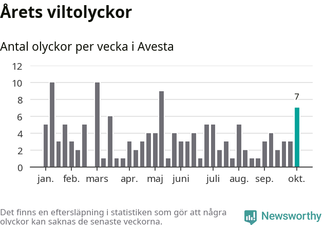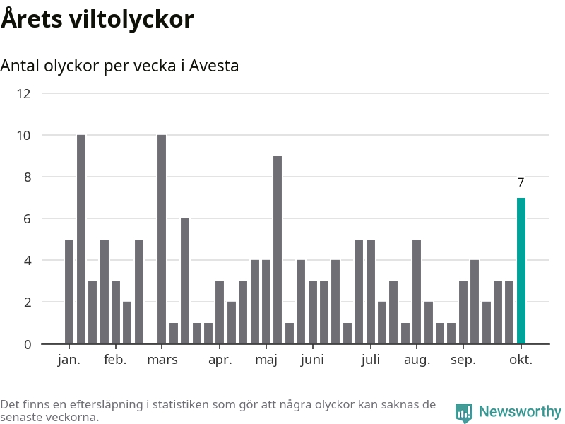 Hittills har sju viltolyckor rapporterats in i Avesta kommun från vecka 41. Se listan här.