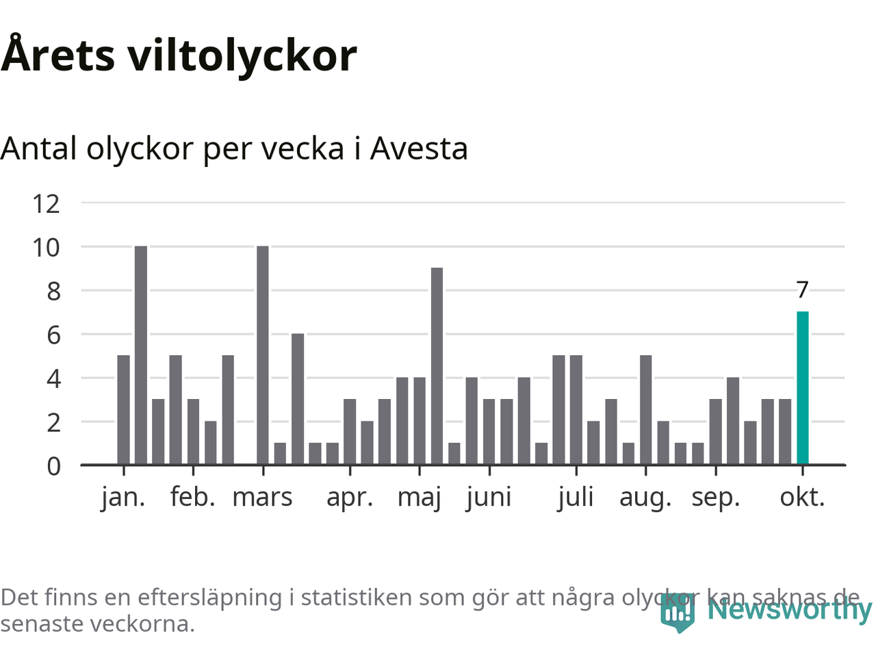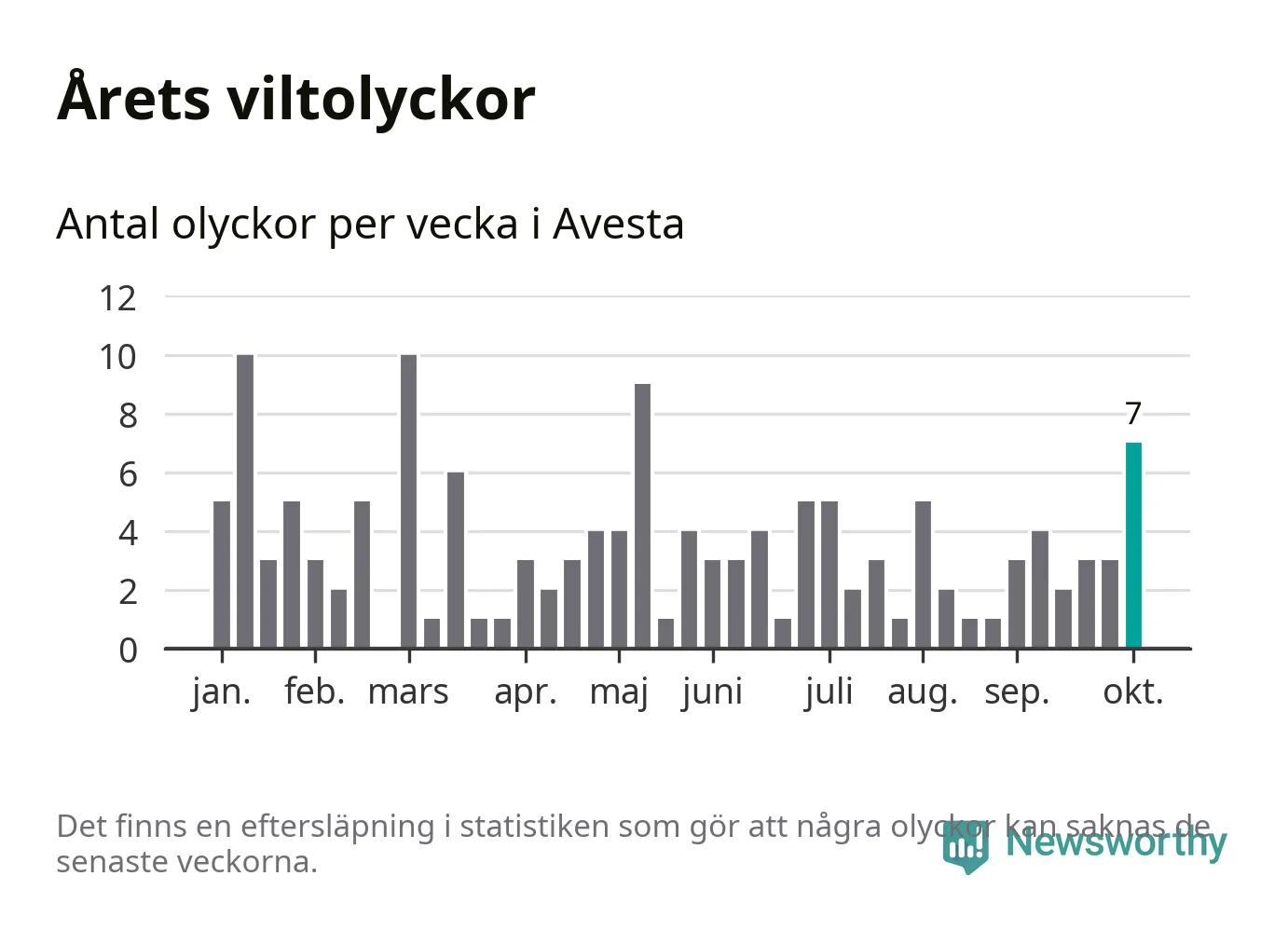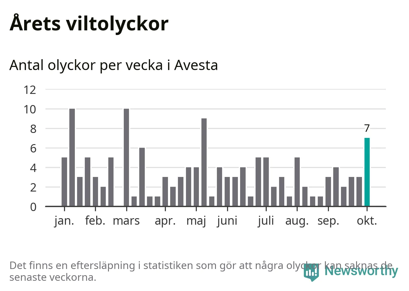 Hittills har sju viltolyckor rapporterats in i Avesta kommun från vecka 41. Se listan här.