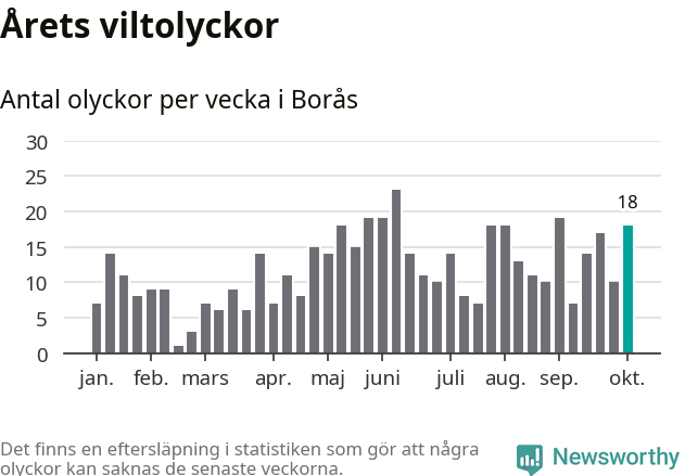 Hittills har 18 viltolyckor rapporterats in i Borås kommun från vecka 41. Se listan här.