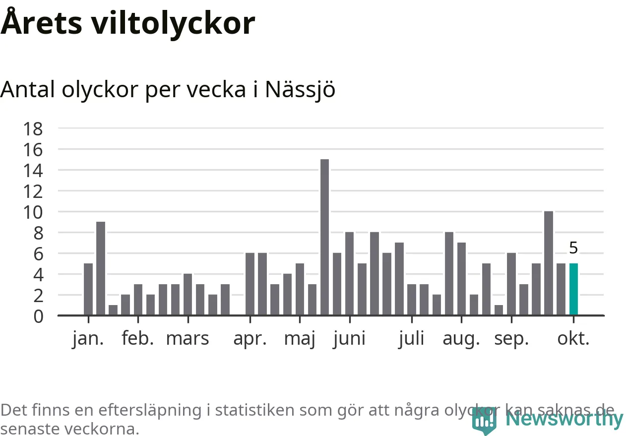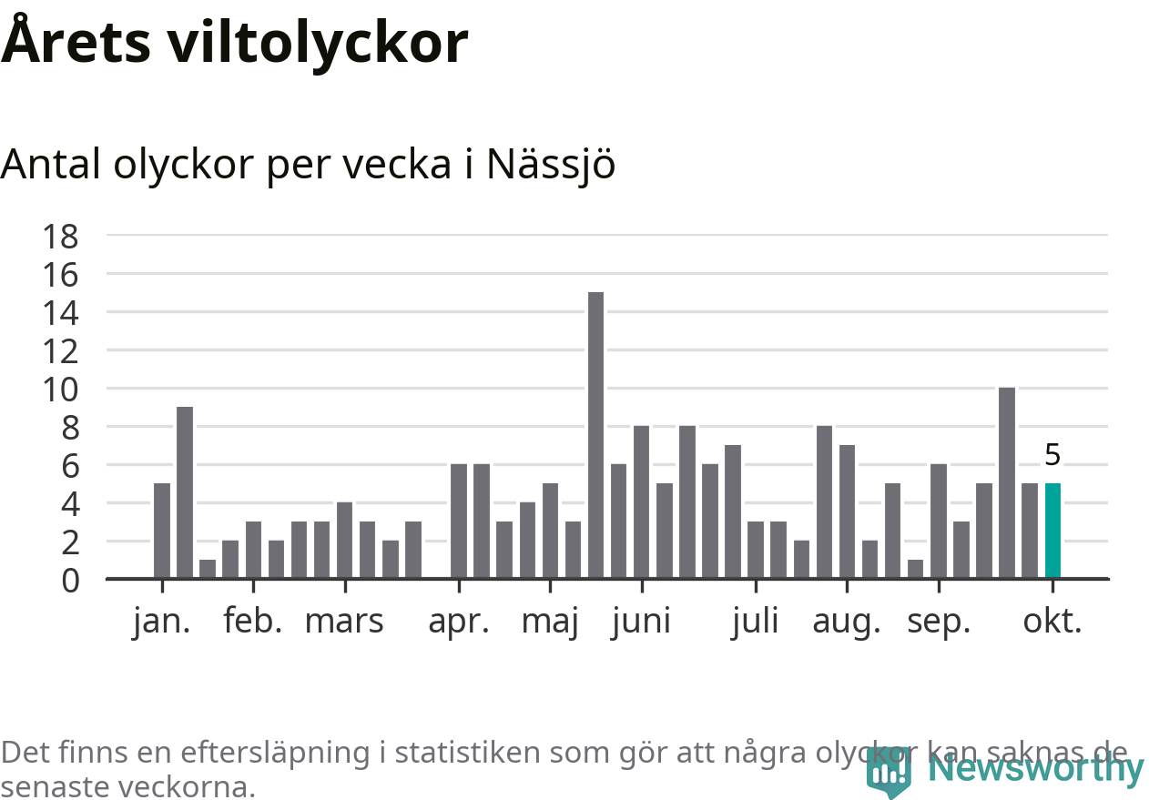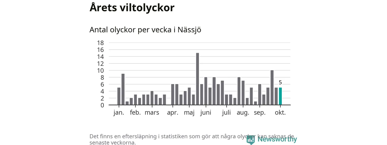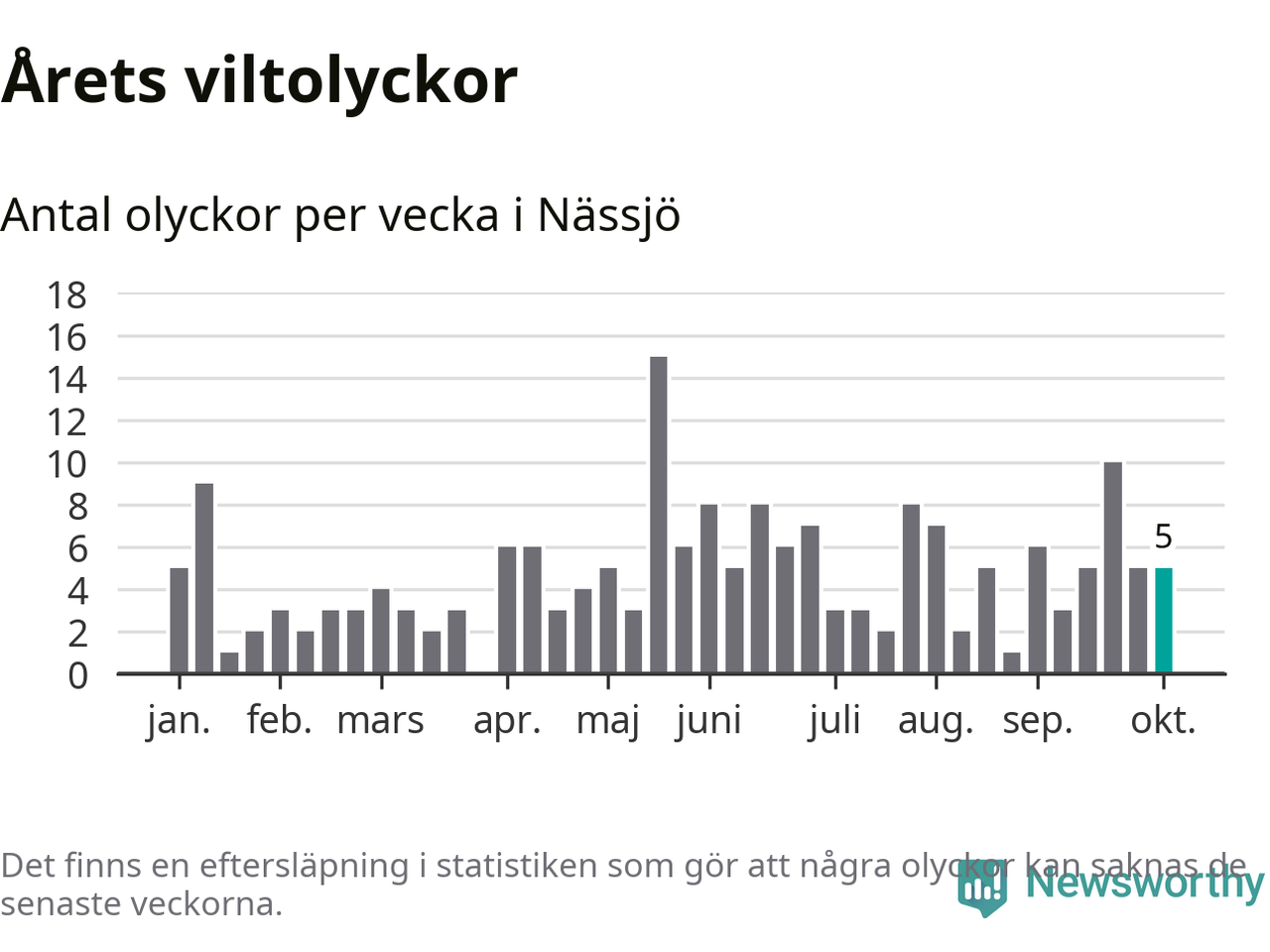 Hittills har fem viltolyckor rapporterats in i Nässjö kommun från vecka 41. Se listan här.