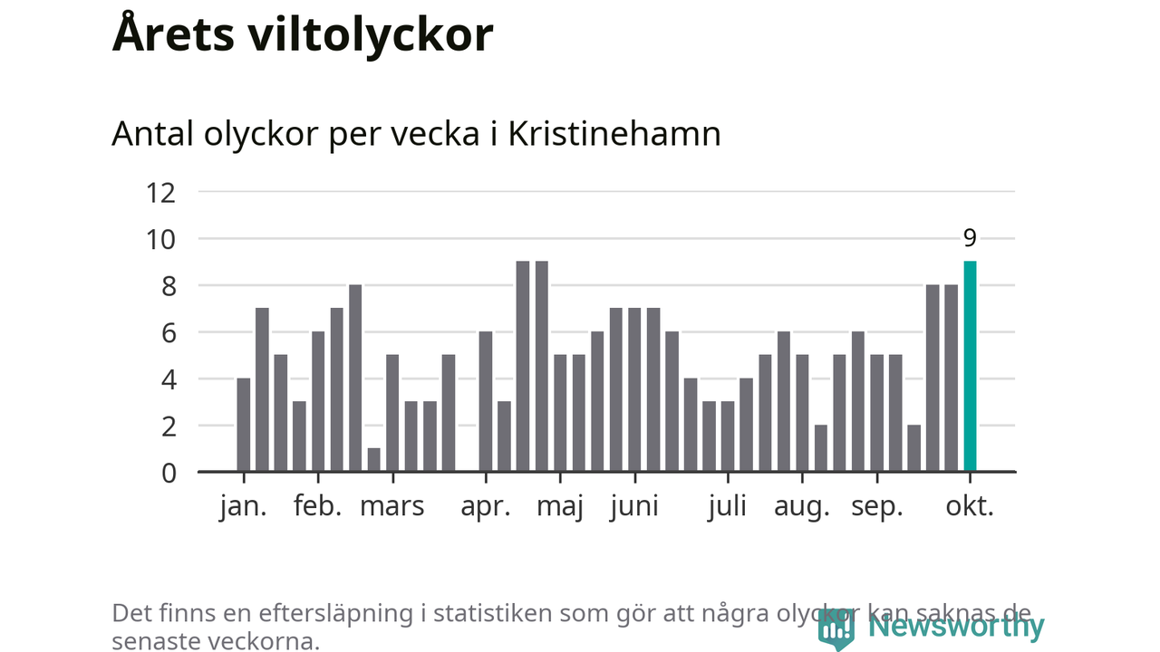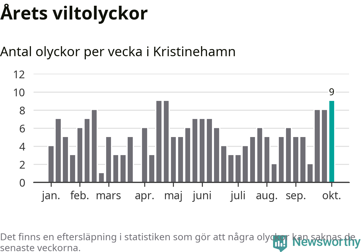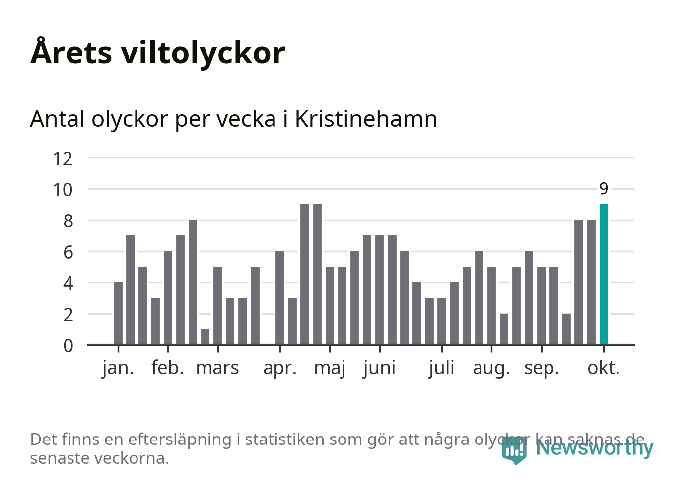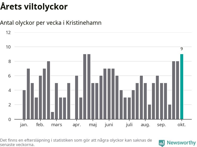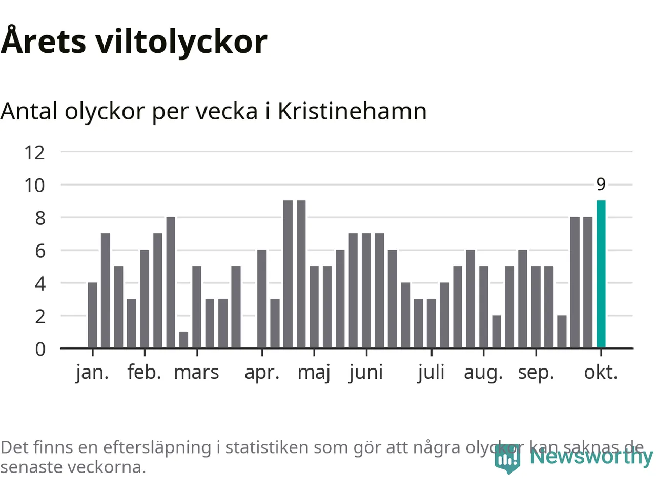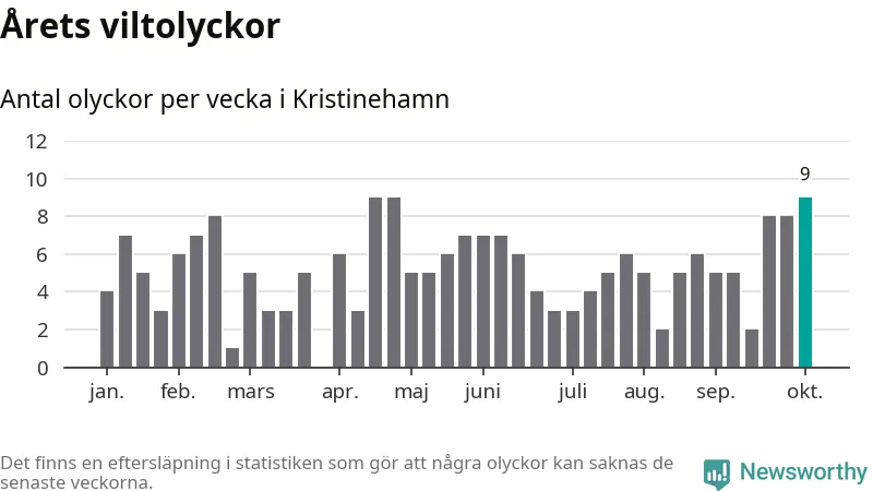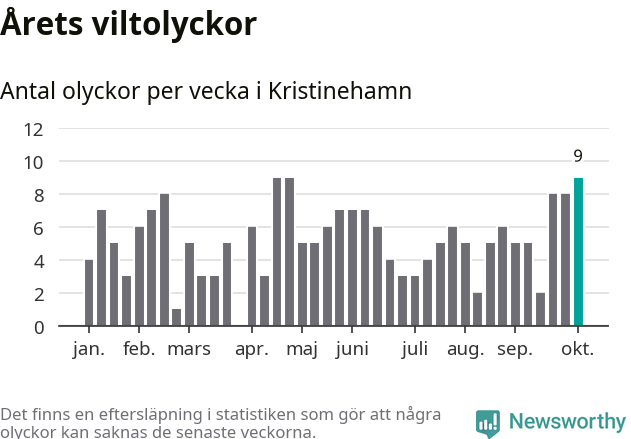 Nio olyckor på en enda vecka är också ovanligt många. Bara 25 gånger tidigare sedan 2015 har det skett