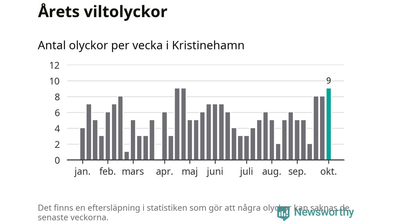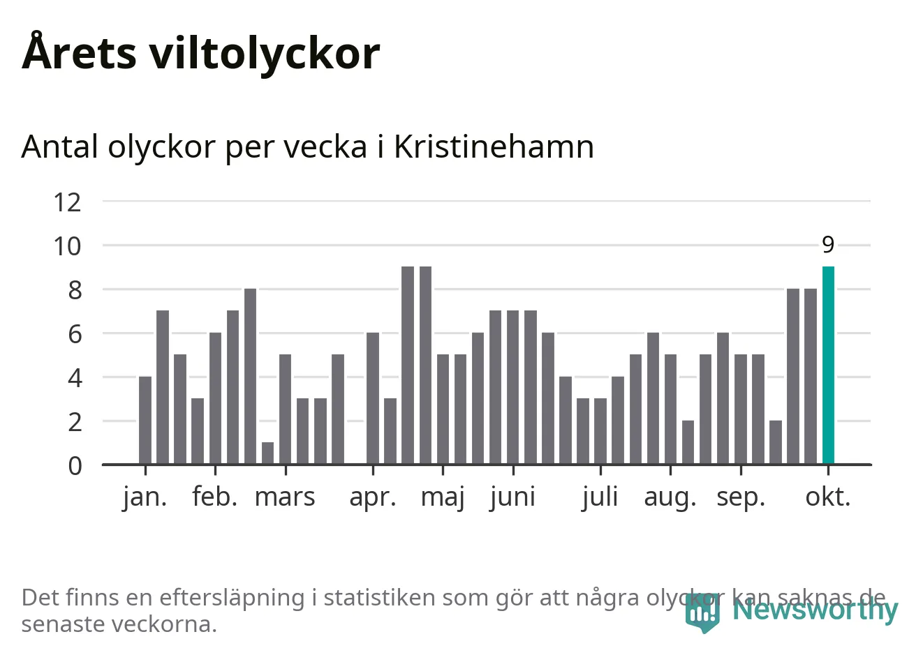 209 viltolyckor i kommunen. Det är mer än genomsnittet för motsvarande period (omkring 180) de senaste tio åren.