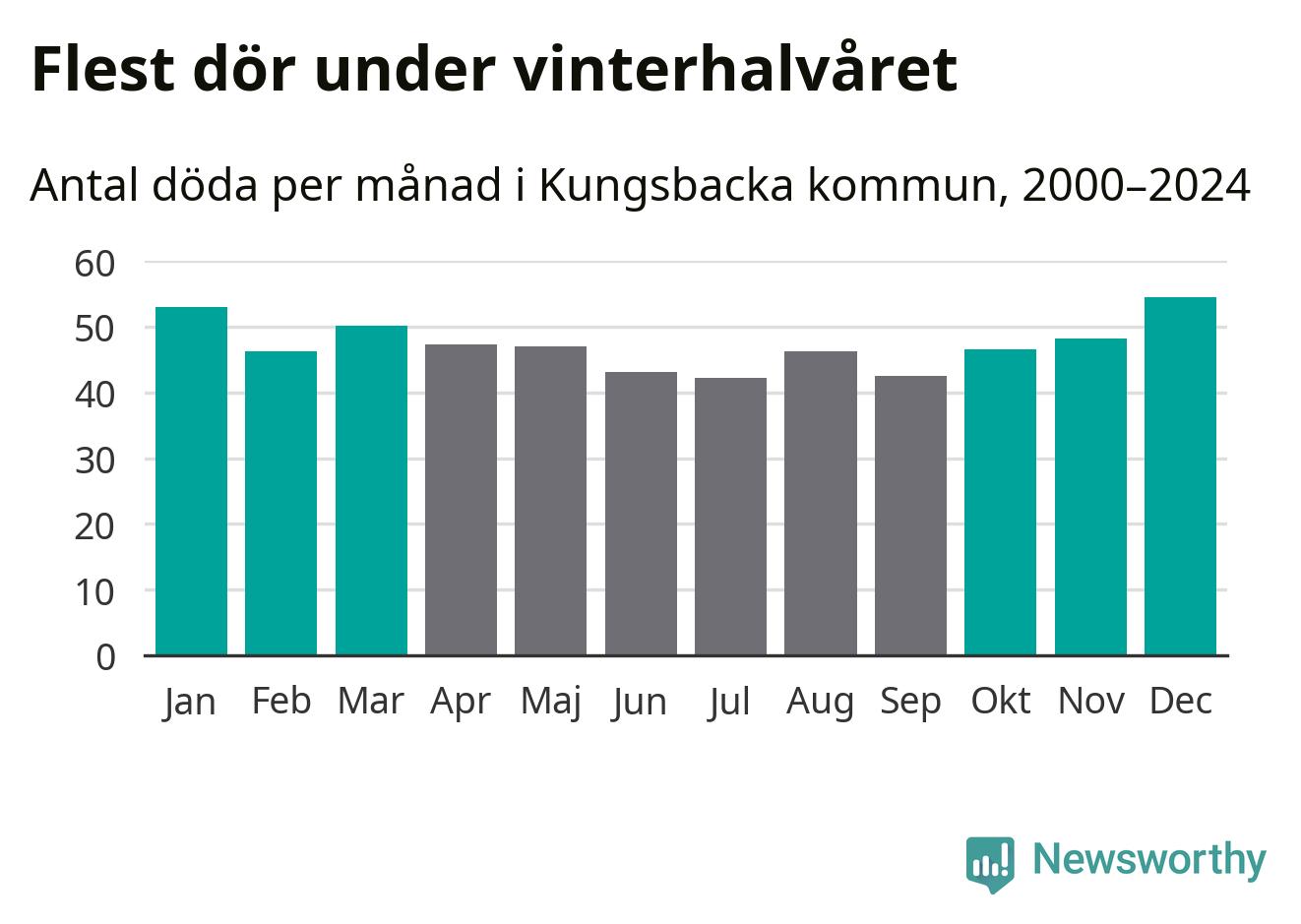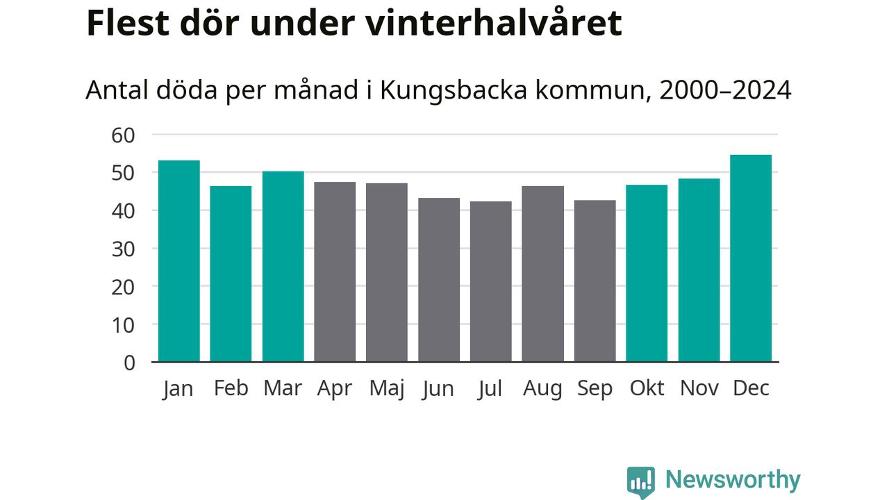 I landet som helhet är det veckorna kring årsskiftet som är de allra dödligaste. I Kungsbacka har flest istället dött vecka 51. Sammanlagt under de senaste 25 åren handlar det om 321 personer, vilket är 20 procent fler än snittet för resten av året.