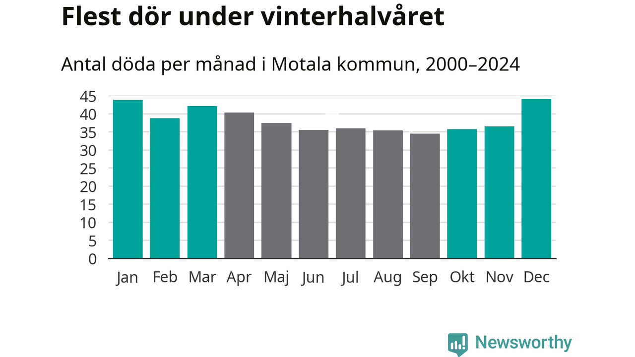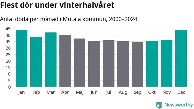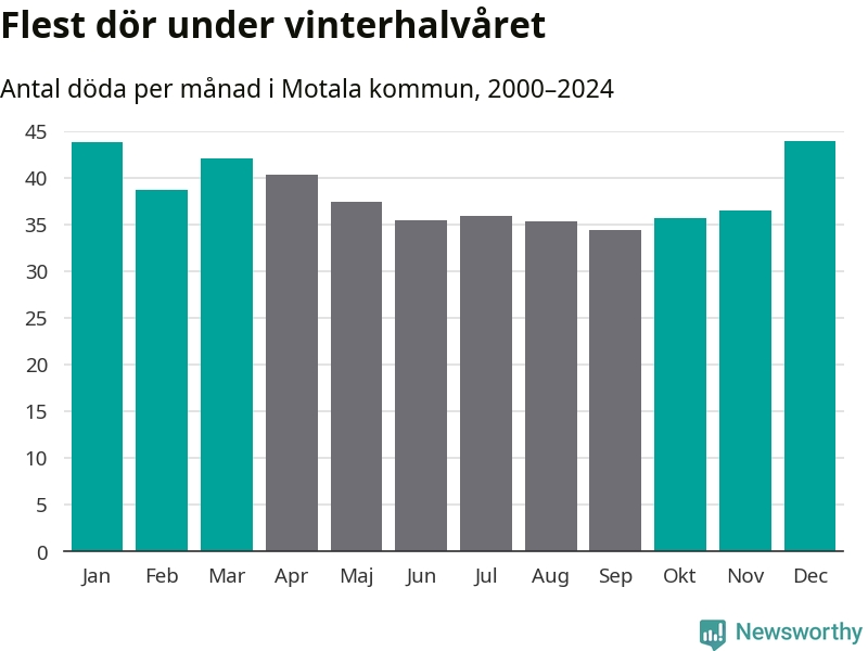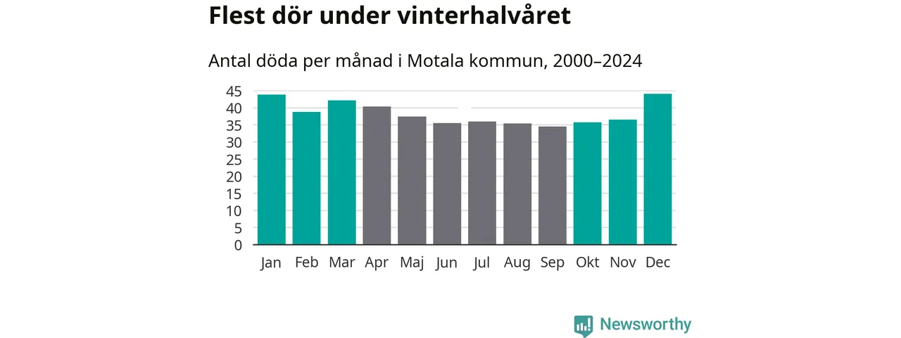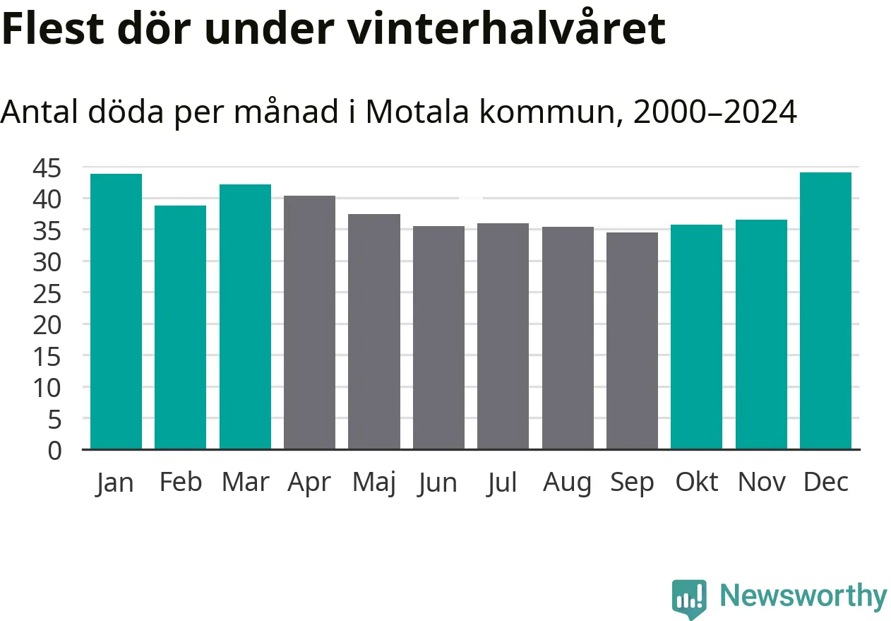 I landet som helhet är det veckorna kring årsskiftet som är de allra dödligaste. I Motala har flest istället dött vecka 51. Sammanlagt under de senaste 25 åren handlar det om 263 personer, vilket är 21 procent fler än snittet för resten av året.