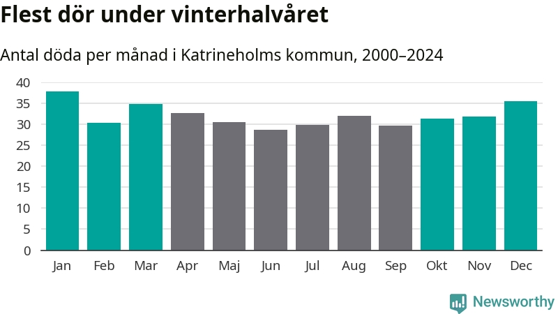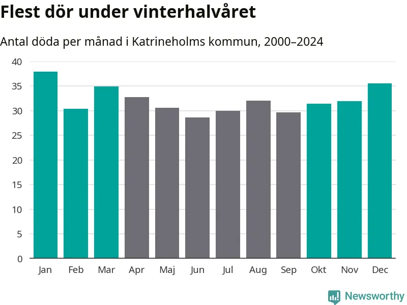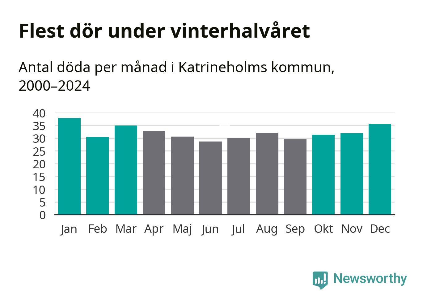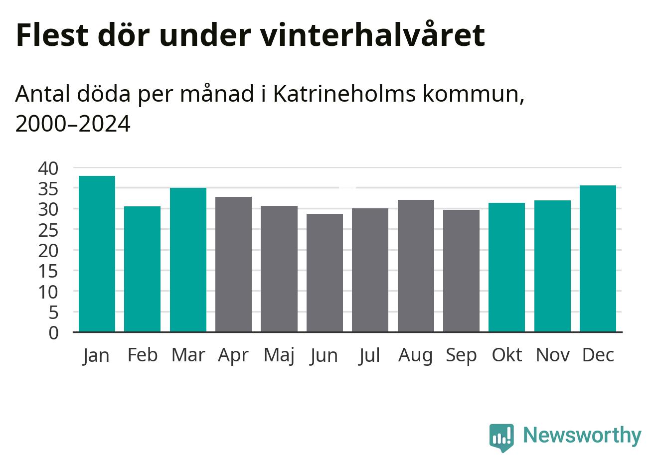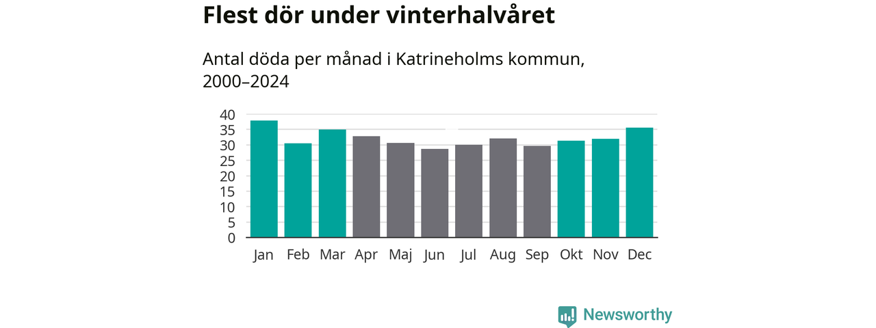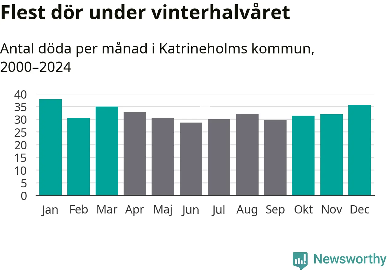 Så är det även i Katrineholm. Under de senaste 25 åren har 5 043 personer dött i kommunen under vinterhalvåret, jämfört med 4 514 personer under sommarhalvåret – alltså tolv procent fler.